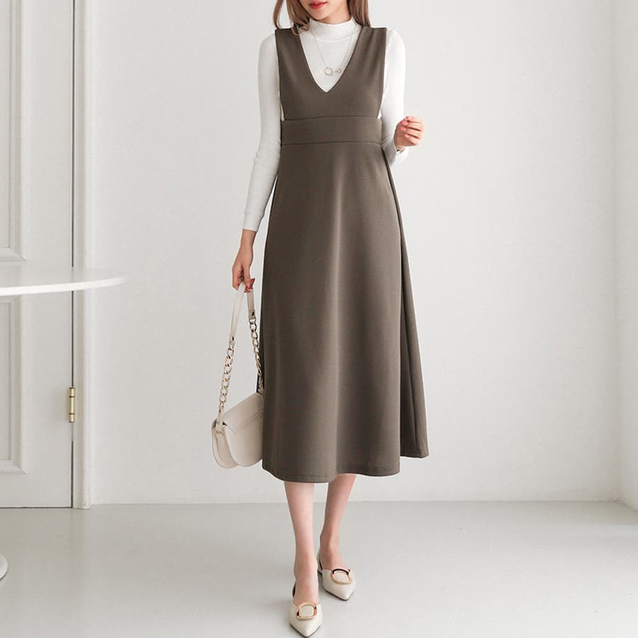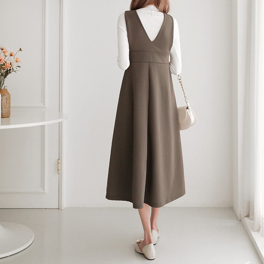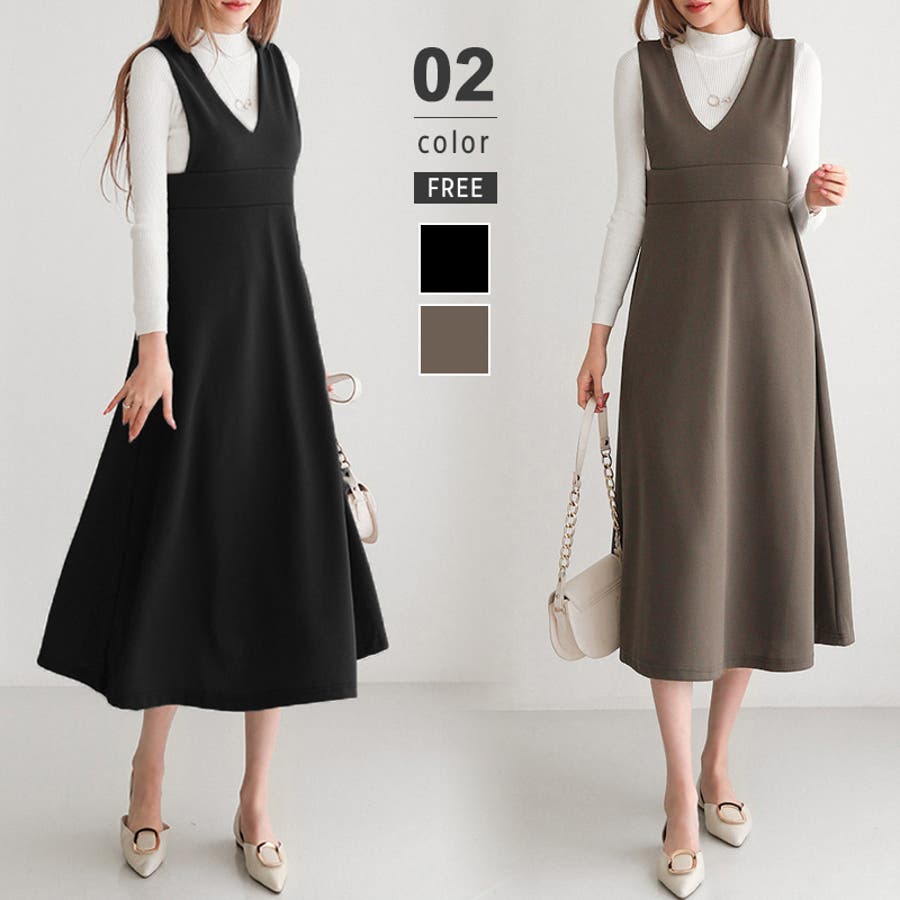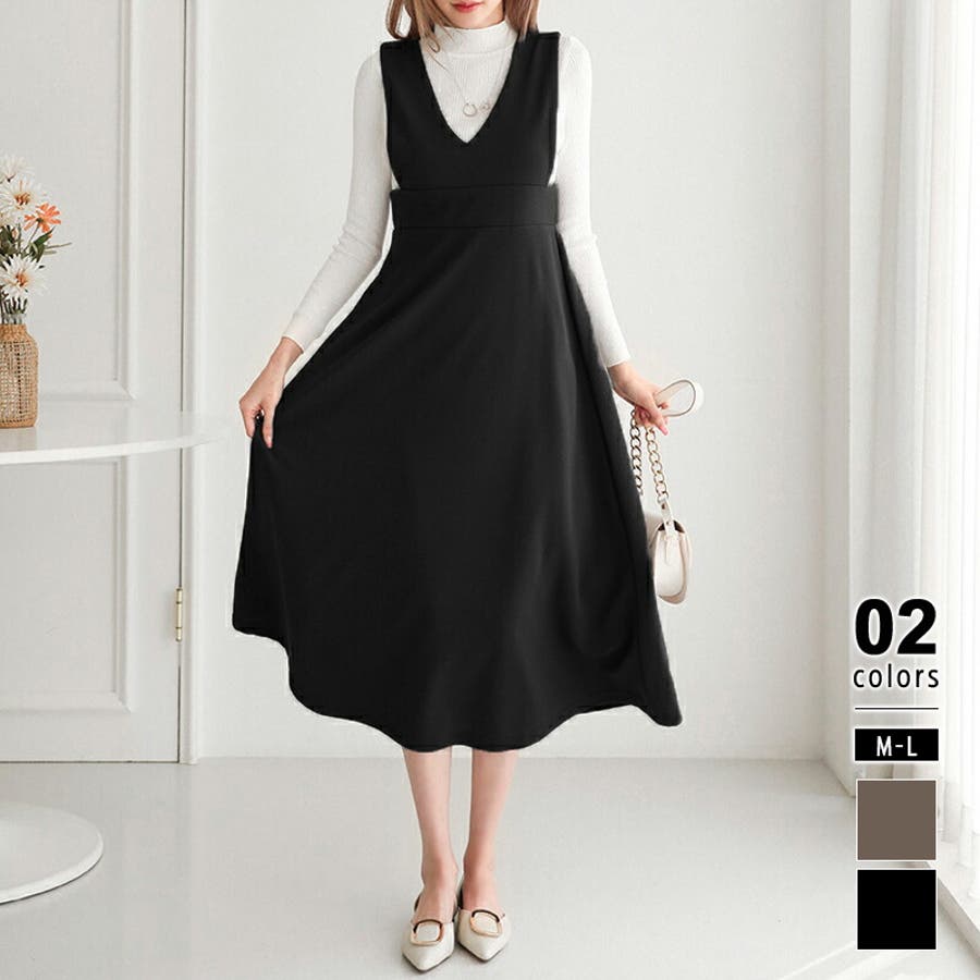 ジャンパースカート vネック ワンピース 春 夏 ノースリーブ ジャンスカ ワンピ レディース ゆったり 大きいサイズ 体型カバー 細見え お腹カバー aライン フレア フレアワンピース ハイウエスト シンプル 無地 ミモレ ミモレ丈 低身長 高身長 深v ふんわり プチプラ 高見え 着回し 重ね着 レイヤード ナチュラル フェミニン カジュアル 上品 きれいめ 大人 かわいい 大人可愛い おしゃれ ママ ママコーデ m I 茶色 茶 黒 春コーデ 春夏 秋 冬 春服 夏服 秋服 韓国 韓国ファッション 20代 30代 40代 50代 cocomomo ココモモ