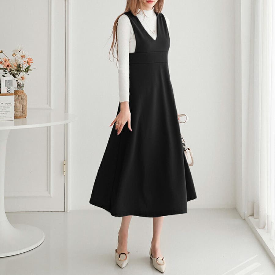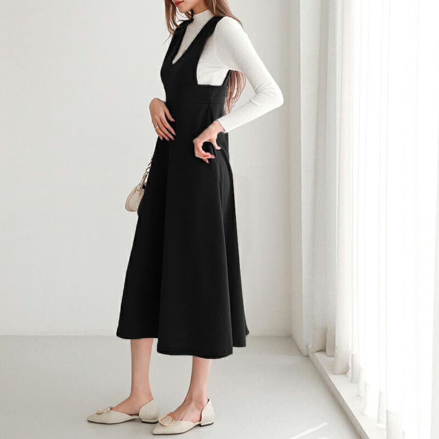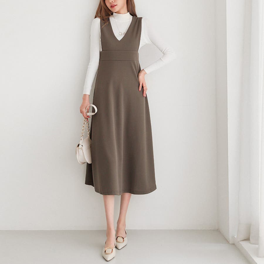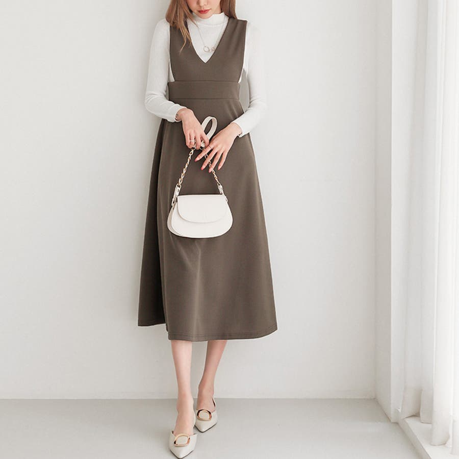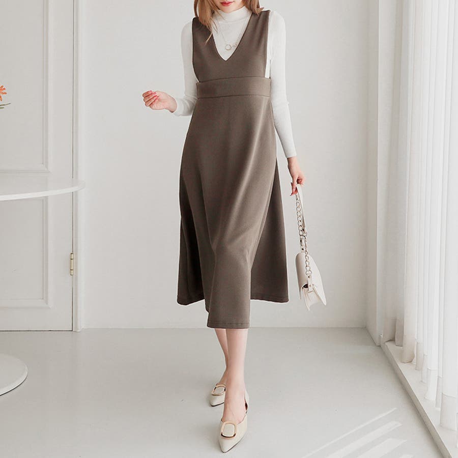 ジャンパースカート vネック ワンピース 春 夏 ノースリーブ ジャンスカ ワンピ レディース ゆったり 大きいサイズ 体型カバー 細見え お腹カバー aライン フレア フレアワンピース ハイウエスト シンプル 無地 ミモレ ミモレ丈 低身長 高身長 深v ふんわり プチプラ 高見え 着回し 重ね着 レイヤード ナチュラル フェミニン カジュアル 上品 きれいめ 大人 かわいい 大人可愛い おしゃれ ママ ママコーデ m I 茶色 茶 黒 春コーデ 春夏 秋 冬 春服 夏服 秋服 韓国 韓国ファッション 20代 30代 40代 50代 cocomomo ココモモ