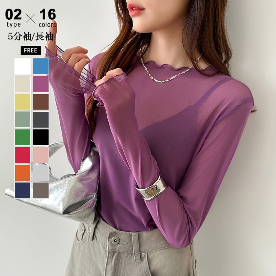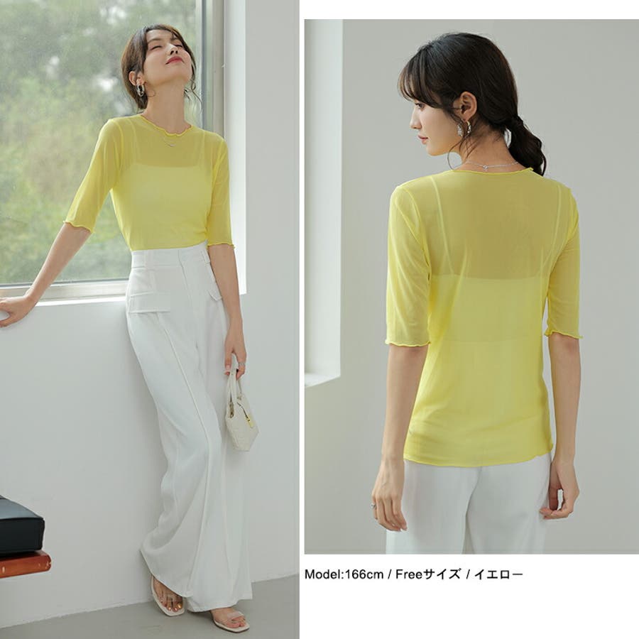 シアー トップス シアートップス シースルー シアーカットソー カットソー レディース 半袖 五分袖 インナー シフォン メッシュ チュール フリル シアー素材 メロー メロウ 透け 透け感 フリーサイズ シンプル 無地 薄手 重ね着 重ね レイヤード 肌見せ 露出控えめ 露出少なめ 入園 入学 卒園 卒業 卒業式 入学式 セクシー tシャツ ボートネック クルーネック ラウンドネック ネック フリルネック 着回し 上品 レース 骨格ストレート 骨格ウェーブ プルオーバー セレモニー お呼ばれ 女子会 発表会 演奏会 同窓会 パーティ 袖 サラサラ 涼しい フィット 伸縮性 ストレッチ 伸びる 紫外線対策 日焼け対策 uv対策 uvカット対策 オフィス オフィスカジュアル カジュアル フェミニン ガーリー ナチュラル エレガント 華やか 上品 きれいめ キレイめ オトナ女子 大人 かわいい 可愛い 大人可愛い おしゃれ ママ 母 ママコーデ 春夏新作 春夏 秋冬 春 夏 秋 冬 春服 夏服 秋服 冬服 韓国 韓国ファッション 20代 30代 40代 50代 cocomomo ココモモ ホワイト 白 ベージュ イエロー 黄色 グリーン 緑 ブラック 黒 ダークグレー ブラウン 茶色 オレンジ ローズ赤 ピンク ブルー 青 ロイヤルブルー パープル 紫 ライトパープル ライトブルー ピンク ライトグレー 灰色 ライトブラウン