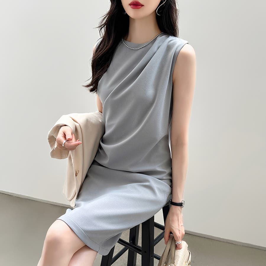 ワンピース ノースリーブ レディース タイトワンピース ドレープ スリット ワンピースタイト 背中ファスナー タイト 膝丈 ノースリーブワンピース 着痩せワンピース 袖なし 大きいサイズレディース 丈 ひざ丈 細見え お腹カバー 体型 カバー 隠し 体型カバー ギャザー 大きめ 大きいサイズ 細見え 着痩せ 伸縮性 ストレッチ 裏地付き 裏地あり 裏地 ワンピ ペンシルスカート タイトスカート バックスリット ラウンドネック クルーネック オフィス オフィスカジュアル オフィスカジュアル春夏 OL 通勤 通学 パーティー 入学式 卒業式 入園式 卒園式 入学 卒業 入園 卒園 式 式典 学校行事 行事 授業参観 七五三 お宮参り 同窓会 食事会 顔合わせ セレモニー フォーマル シンプル 無地 楽ちん エレガント セクシー 上品 大人 きれいめ きれい め 綺麗 美人 かわいい 可愛い 大人かわいい 大人可愛い おしゃれ オシャレ ママ 母 プチプラ 高見え 高級感 レンド ヒット 商品 おすすめ 服 ファッション コーデ ワンピースきれい目 ワンピース春 ワンピース春レディース ワンピース夏 ワンピース夏レディース ワンピースレディース サマー ワンピースキレイ ワンピース春夏 大人可愛いワンピース ブルーグレー 灰色 ブラウン 茶色 ネイビー 紺 紺色 ブラック 黒 M L サイズ mサイズ lサイズ 春夏 春 夏 春服 夏服 春物 夏物 韓国 韓国ファッション 20代 30代 40代 50代 cocomomo ココモモ