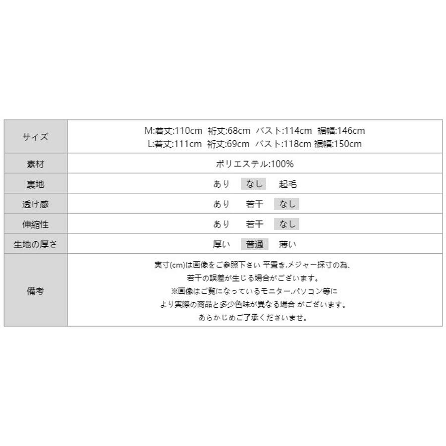 | サイズ | [M] 着丈 110cm 裄丈 68cm バスト 114cm 裾幅 146cm [L] 着丈 111cm 裄丈 69cm バスト 118cm 裾幅 150cm |