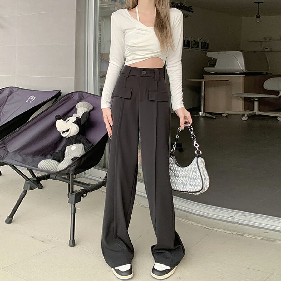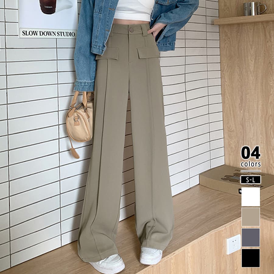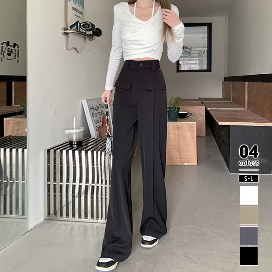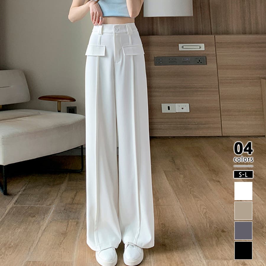 ワイドパンツ センタープレススラックスパンツ ハイウエストパンツ ハイウエスト ボトムス レディース パンツ ズボン スラックス センタープレス ストレート ストレートパンツ ロング ロング丈 ロングパンツ フレア とろみ さらさら ゆったり 大きいサイズ 大きい 体型カバー ワイドレッグ セミワイド タック入り カラーパンツ ウエストゴム 楽ちん 美脚 脚長 ダンス 衣装 シンプル 無地 薄手 リラックス ストリート カジュアル きれいめ 大人 かわいい おしゃれ 白 茶 灰 黒 s m l 春夏 春 夏 秋 春服 夏服 秋服 韓国 韓国ファッション 10代 20代 30代 40代 50代 cocomomo ココモモ