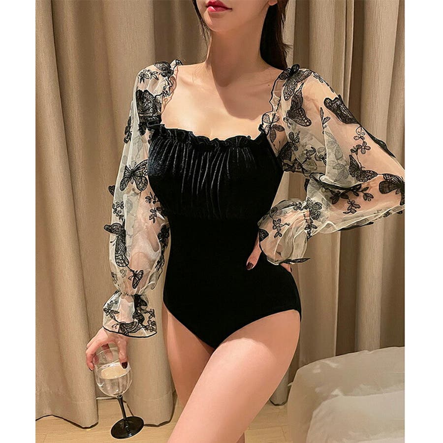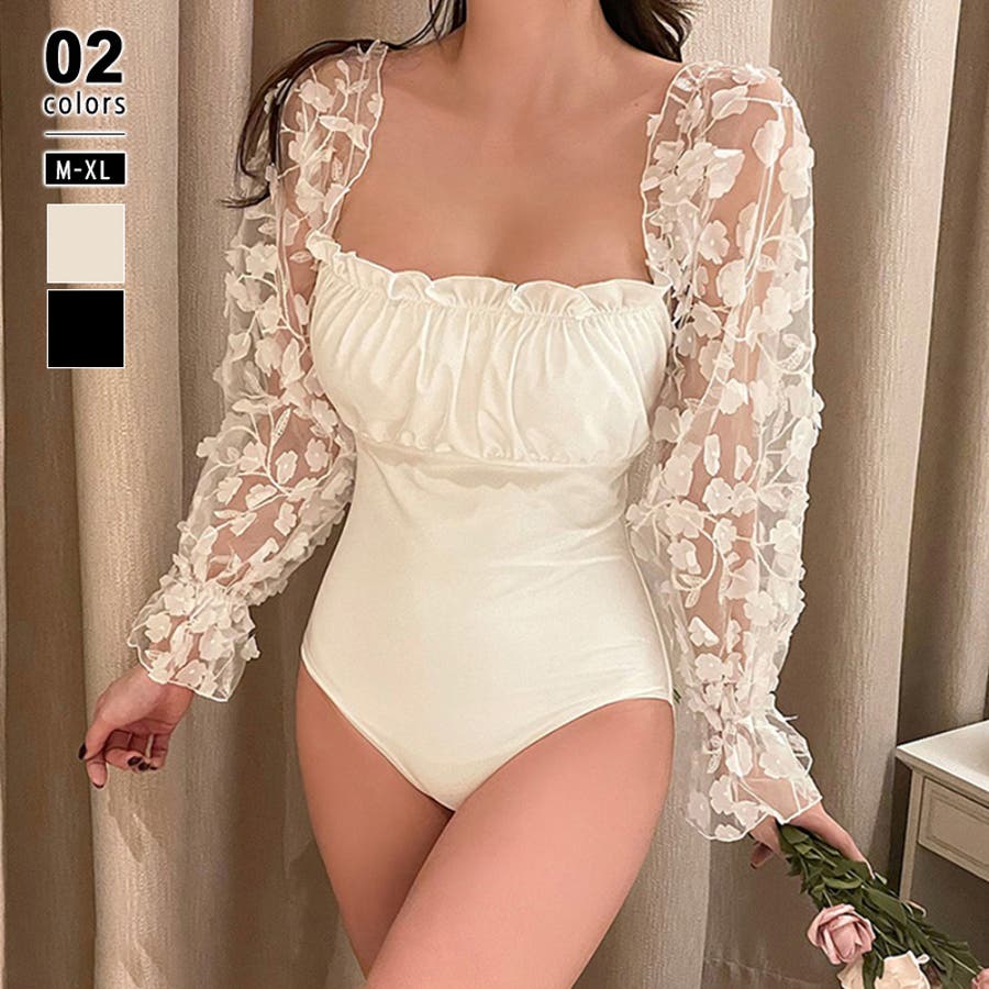 水着 ワンピース水着 レースアップビキニ レディース ビキニ ビキニ水着 シースルー 袖 付き シアー 袖あり 長袖 トップス 体型カバー 水着体型カバー セクシー 胸元 ワンピース 一体型 大きいサイズ ハイウエスト 韓国風 バックリボン リボン フリル レース レースアップ 蝶 花 フラワー 刺繍 ギャザー ぽわん ぽわん袖 ボリュームスリーブ ボリューム袖 キャンディースリーブ 盛れる モノキニ 女性 パッド パット パッド付き パッド入り 取り外し オールインワン 大人女子 露出控えめ スイムウェア リゾート 海 プール ビーチ エレガント フェミニン ガーリー 大人 可愛い かわいい おしゃれ ママ ママ水着 m l xl ll 春夏 春 夏 韓国 韓国ファッション 10代 20代 30代 40代 cocomomo ココモモ