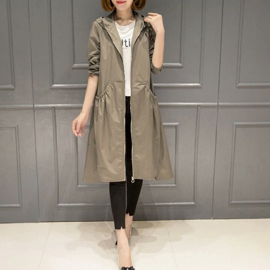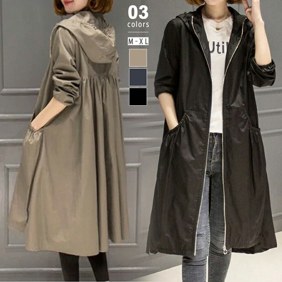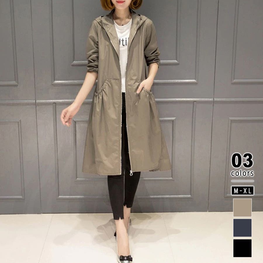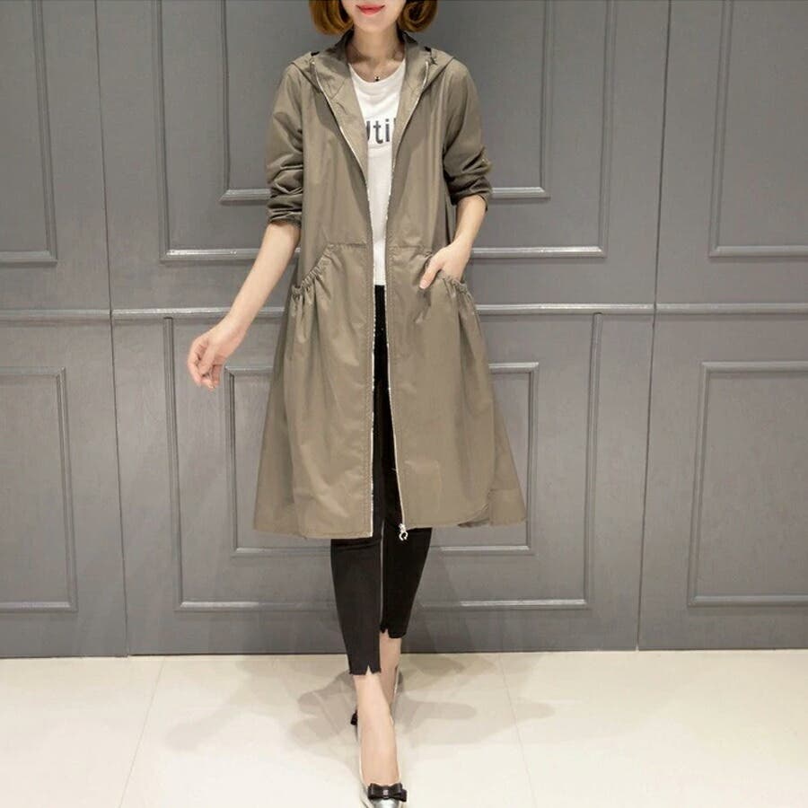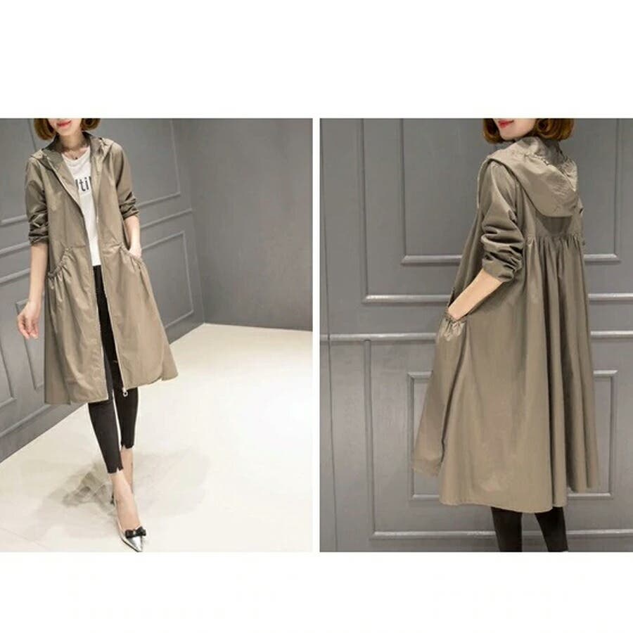 トレンチコート レディース スプリングコート 春 ジャケット コート ロングコート アウター ライトアウター ロング ロング丈 レディースファッション コート・ジャケット トレンチ スプリング レイン モッズ マウンテン ノーカラー 襟なし 長袖 フード 付き フード付 ゆったり 大きい 大きいサイズ 体型カバー プリーツ ギャザー ジャンパー 羽織 羽織もの 膝丈 膝下 シンプル 無地 軽い 薄手 aライン 低身長 ナチュラル カジュアル きれいめ 上品 大人 かわいい 大人可愛い おしゃれ 高見え プチプラ 通勤 通学 母 ママ ママコーデ 薄茶 紺 黒 m l xl 春物 春コート 春秋 春夏 夏 秋 春服 夏服 秋服 韓国 韓国ファッション 20代 30代 40代 50代 cocomomo ココモモ