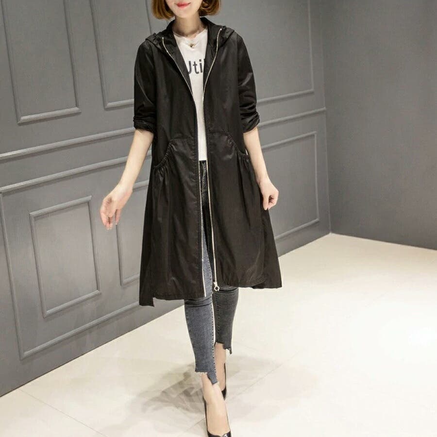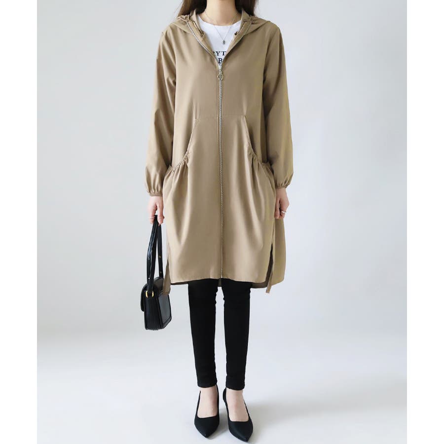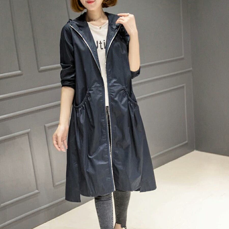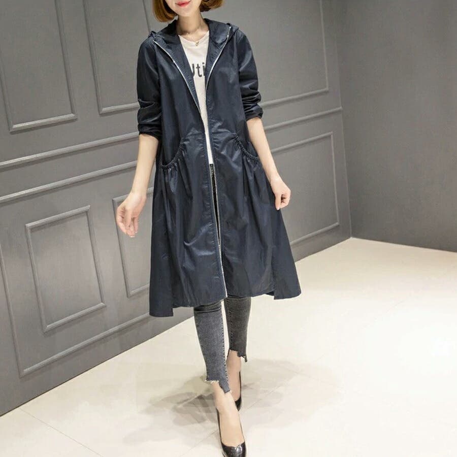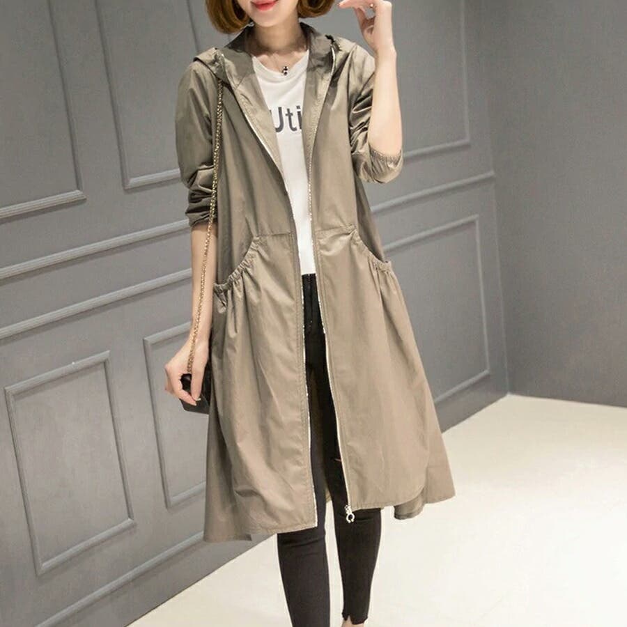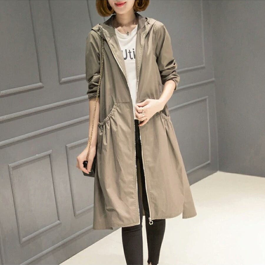 トレンチコート レディース スプリングコート 春 ジャケット コート ロングコート アウター ライトアウター ロング ロング丈 レディースファッション コート・ジャケット トレンチ スプリング レイン モッズ マウンテン ノーカラー 襟なし 長袖 フード 付き フード付 ゆったり 大きい 大きいサイズ 体型カバー プリーツ ギャザー ジャンパー 羽織 羽織もの 膝丈 膝下 シンプル 無地 軽い 薄手 aライン 低身長 ナチュラル カジュアル きれいめ 上品 大人 かわいい 大人可愛い おしゃれ 高見え プチプラ 通勤 通学 母 ママ ママコーデ 薄茶 紺 黒 m l xl 春物 春コート 春秋 春夏 夏 秋 春服 夏服 秋服 韓国 韓国ファッション 20代 30代 40代 50代 cocomomo ココモモ