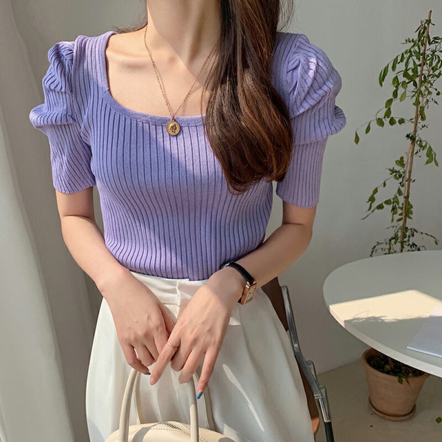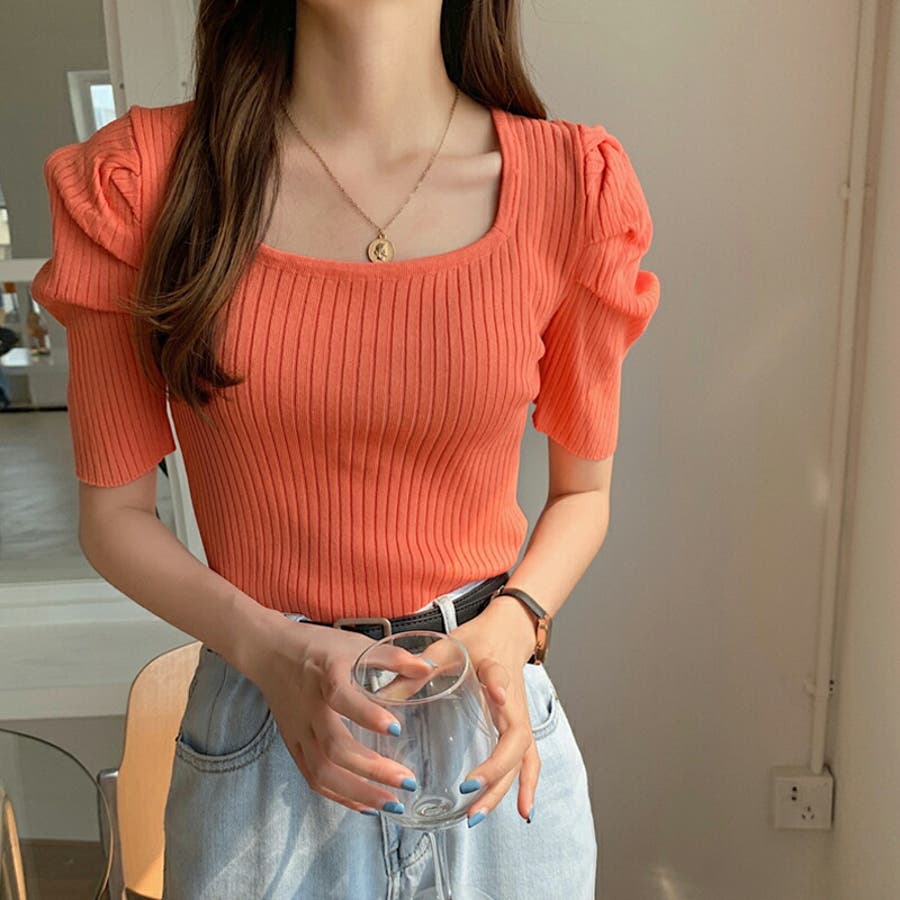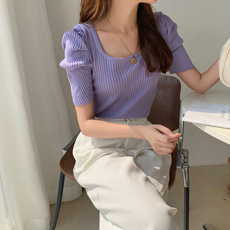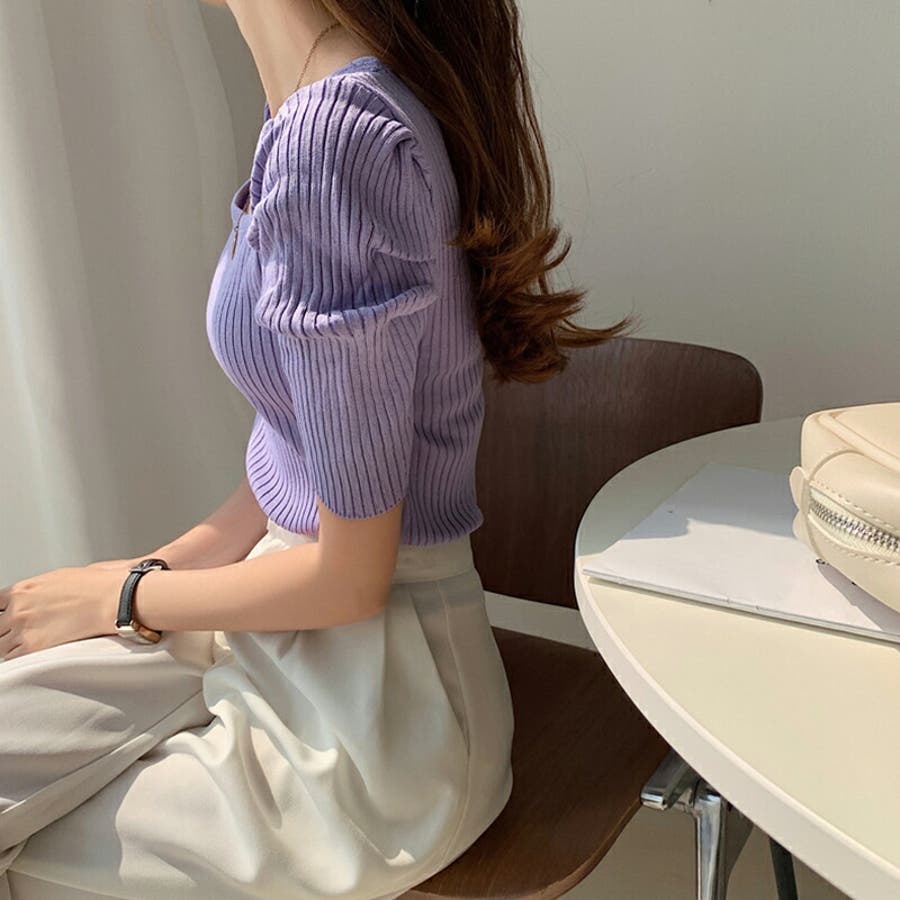 パワショル サマーニット トップス ニット レディース パワショルニット パワーショルダー ニットセーター ラウンドネック 半袖 五分袖 細見え ギャザー パフスリーブ タイト フィット ボリューム袖 ボリュームスリーブ ボリューム 肩 体型カバー tops ぽわん袖 ぽわん ポワン袖 プルオーバー リブ リブニット シンプル 無地 セクシー ヤク風 ヤク風ニット ふんわり やわらか やわらかい ソフトな肌触り チクチクしない ストレッチ 伸縮性 オフィス オフィスカジュアル カジュアル エレガント フェミニン 女性 上品 きれいめ 大人 かわいい 大人可愛い おしゃれ 通勤 通学 仕事 OL ビジネス プチプラ 高見え 白 黄 橙 紫 黒 春夏新作 春夏 春 夏 春服 夏服 韓国 韓国ファッション 20代 30代 40代 50代 cocomomo ココモモ