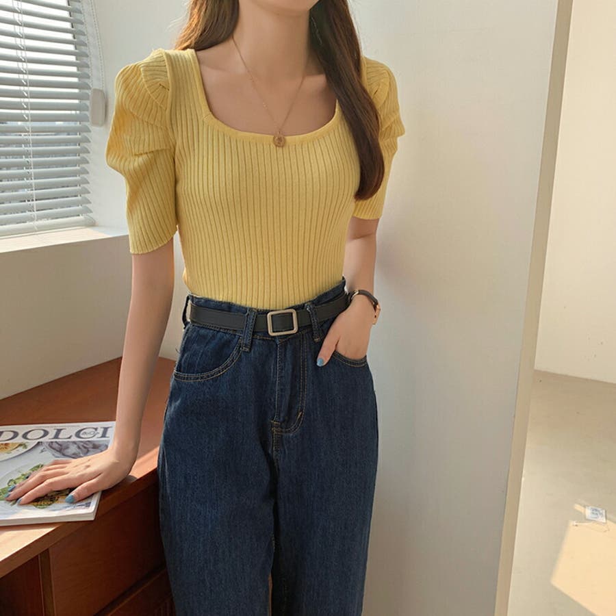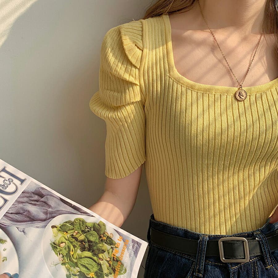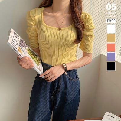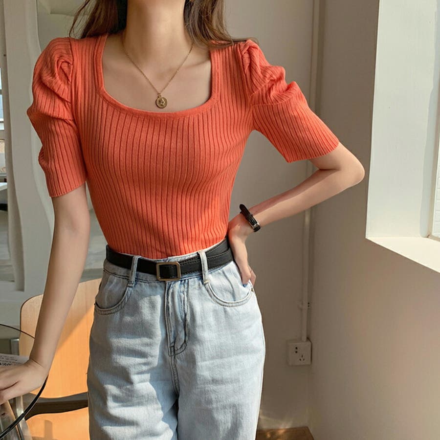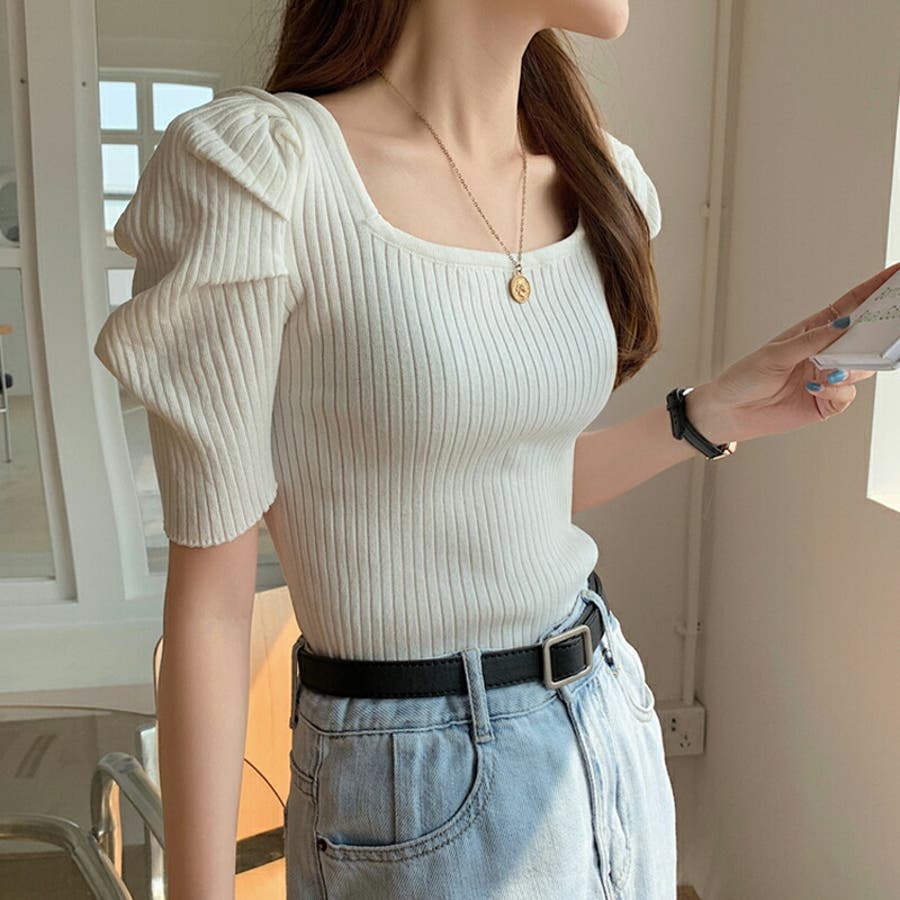 パワショル サマーニット トップス ニット レディース パワショルニット パワーショルダー ニットセーター ラウンドネック 半袖 五分袖 細見え ギャザー パフスリーブ タイト フィット ボリューム袖 ボリュームスリーブ ボリューム 肩 体型カバー tops ぽわん袖 ぽわん ポワン袖 プルオーバー リブ リブニット シンプル 無地 セクシー ヤク風 ヤク風ニット ふんわり やわらか やわらかい ソフトな肌触り チクチクしない ストレッチ 伸縮性 オフィス オフィスカジュアル カジュアル エレガント フェミニン 女性 上品 きれいめ 大人 かわいい 大人可愛い おしゃれ 通勤 通学 仕事 OL ビジネス プチプラ 高見え 白 黄 橙 紫 黒 春夏新作 春夏 春 夏 春服 夏服 韓国 韓国ファッション 20代 30代 40代 50代 cocomomo ココモモ