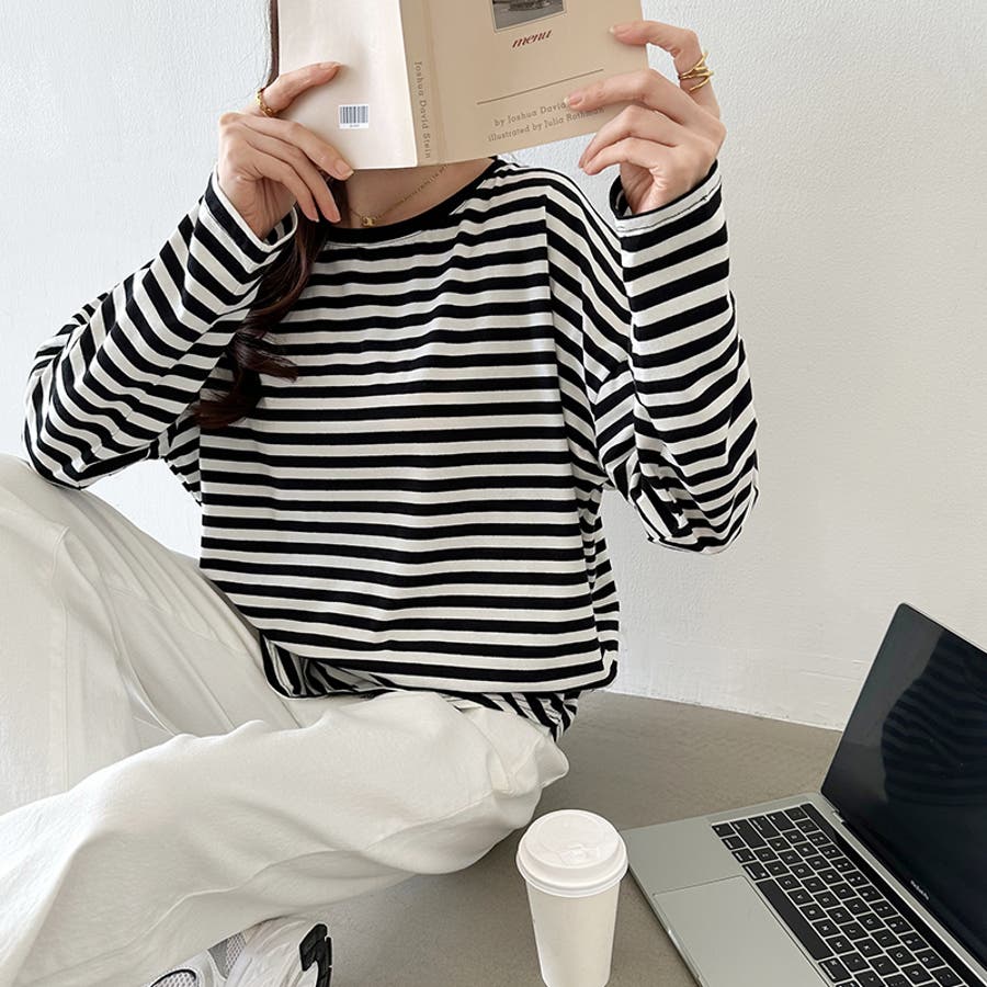ボーダー カットソー ボートネック ロンt レディース 長袖 トップス ボーダーtシャツ 長袖tシャツ ロングtシャツ ドロップショルダー 肩 ゆったり 大きい 大きめ 大きいサイズ 体型カバー オーバーサイズ ビッグサイズ ラウンドヘム ラウンドヘムtシャツ パイピング 配色 バイカラー ろんt ロンティー ロング ロング丈 tシャツ プルオーバー 細見え tops ぽわん ぽわん袖 ポワン袖 ふんわり ボリューム 柄 1枚で決まる シワになりにくい ラグランスリーブ サラサラ 通気性 しましま 綿 コットン 長袖カットソー ワイド ヘビーウェイト 通気性 伸縮性 ストレッチ カジュアル きれいめ 大人 かわいい 大人可愛い おしゃれ 黒 赤 黄 s m l 春コーデ 夏コーデ 春服トップス 夏服トップス 春夏新作 23年 春夏 春 夏 春服 夏服 韓国 韓国ファッション 10代 20代 30代 40代 50代 cocomomo ココモモ