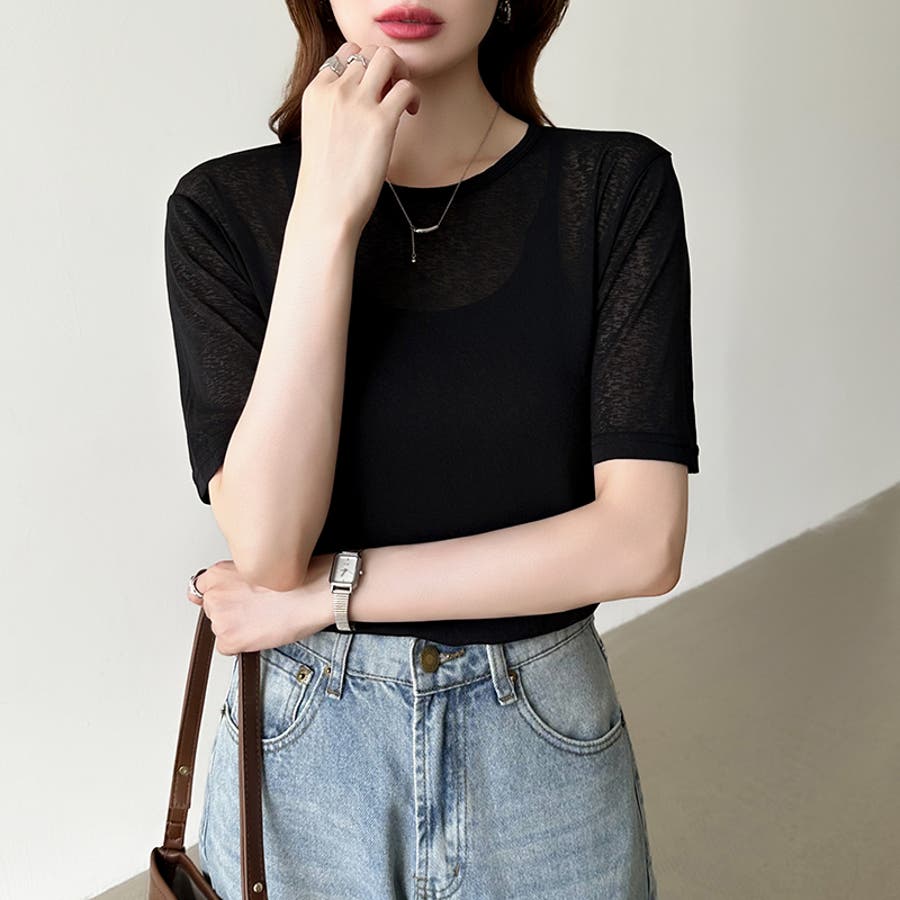 投稿日:2025.05.21ブラックなので透け感は余り感じず、ほどよい感じで着やすい。個人的にはもう少しゆったりした感じだったら良かったです。