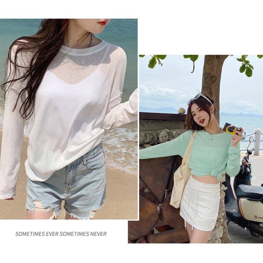 カットソー uvカット シアー トップス ロンt レディース 長袖 シースルー シアートップス ロングtシャツ ロング tシャツ 長袖tシャツ ゆったり 大きいサイズ 体型カバー 大きめ 袖 長め 重ね 重ね着 レイヤード ろんt ロンティー 無地 シンプル 薄い 薄手 透け 透け感 サラサラ 涼しい ドロップショルダー プルオーバー ドルマンスリーブ クルーネック 丸襟 uv カット uvcut UV UVカット UV対策 日焼け 日焼け防止 日焼け対策 紫外線対策 紫外線 対策 防止 手の甲 太陽光 セクシー カジュアル フェミニン ナチュラル きれいめ 大人 かわいい 可愛い 大人可愛い おしゃれ 肌見せ 女性 ママ ママコーデ 母 m l 白 桃色 緑 水色 紫 黒 春夏 春夏新作 23年 2023ss 春 夏 春服 夏服 韓国 韓国ファッション 10 20 30 40 50 60 70 代 10代 20代 30代 40代 50代 cocomomo ココモモ