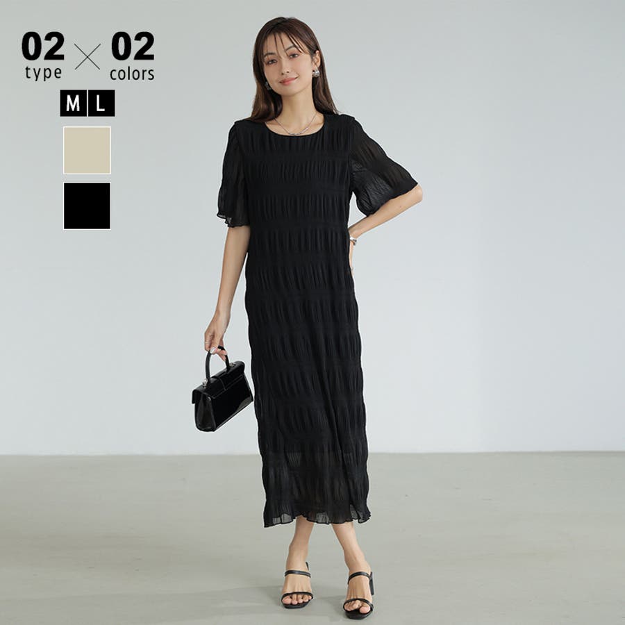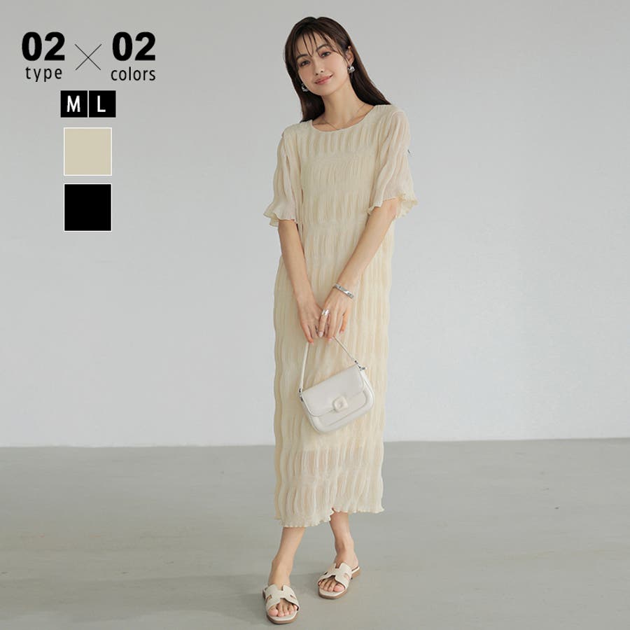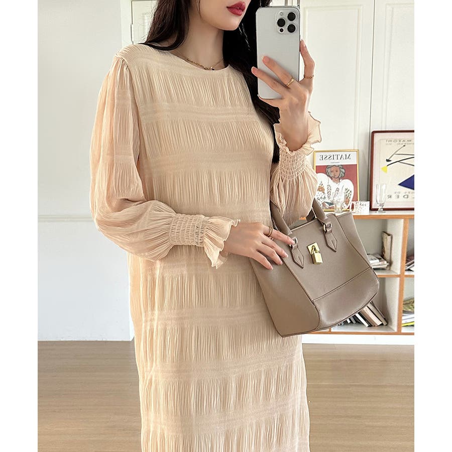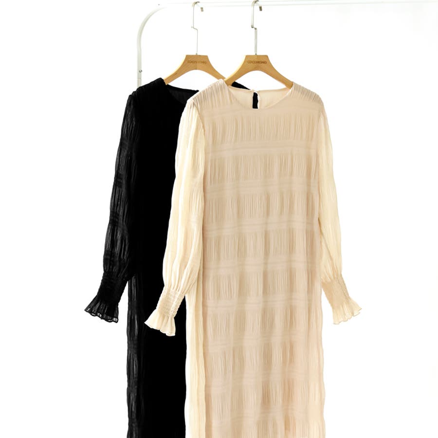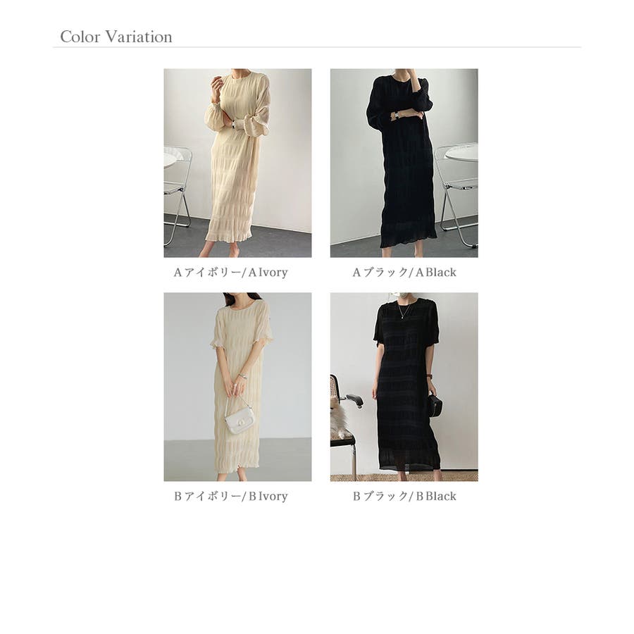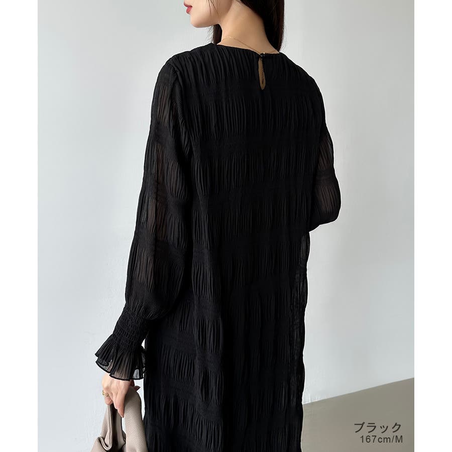 シャーリング ワンピース シフォンワンピース ロングワンピース レディース ロング ロング丈 長袖 半袖 五分袖 シフォン シャーリングワンピース ボリュームスリーブ ボリューム袖 くしゅくしゅ ギャザー マジョリカプリーツ プリーツ シアー シースルー 透け 透け感 薄手 裏地付き 袖あり 袖口ゴム ポリエステル ふんわり 涼しい 軽い 通気性 セクシー らくちん 楽ちん プルオーバー ラウンドネック クルーネック 丸襟 プチプラ 高見え オフィス オフィスカジュアル シンプル 無地 フォーマル ナチュラル クラシカル カジュアル きれいめ キレイめ 上品 大人 かわいい 大人可愛い おしゃれ ママ ママコーデ 母 m l 肌色 黒 春ワンピ 夏ワンピ 春ワンピース 夏ワンピース 春夏新作 23年 春夏 春 夏 春服 夏服 韓国 韓国ファッション 20代 30代 40代 50代 60代 cocomomo ココモモ