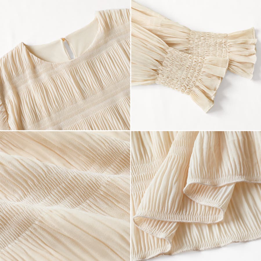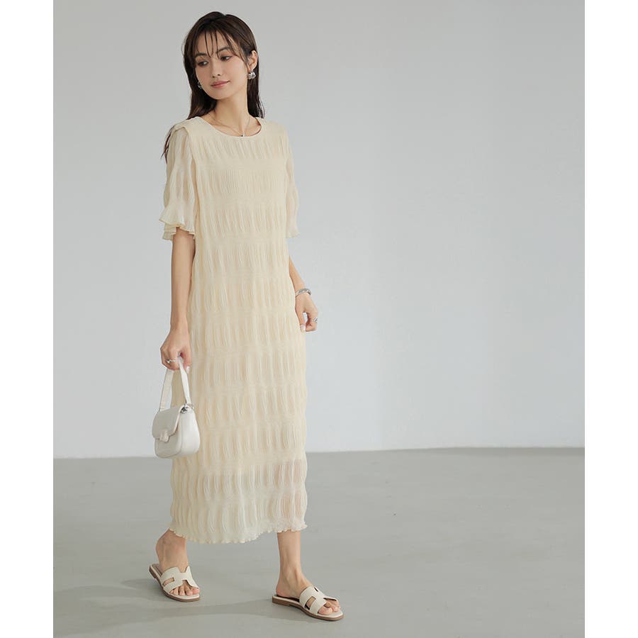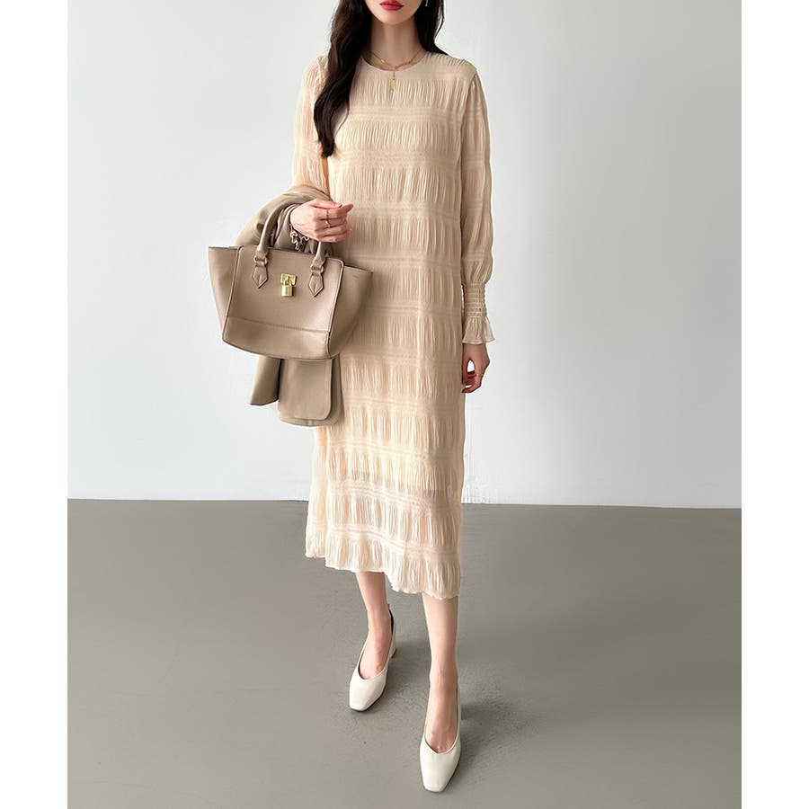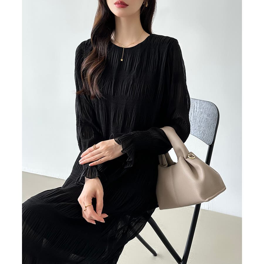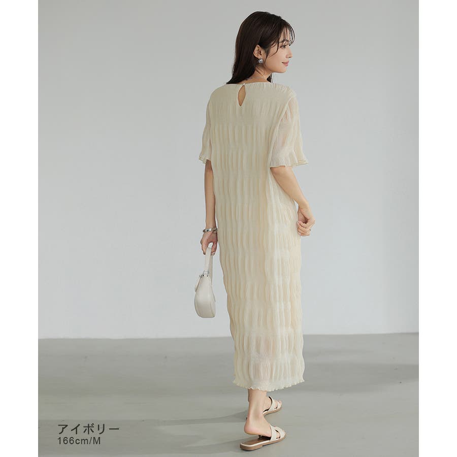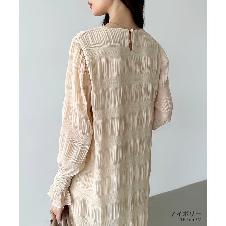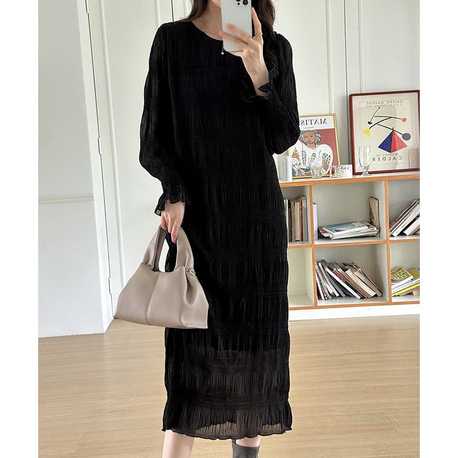 シャーリング ワンピース シフォンワンピース ロングワンピース レディース ロング ロング丈 長袖 半袖 五分袖 シフォン シャーリングワンピース ボリュームスリーブ ボリューム袖 くしゅくしゅ ギャザー マジョリカプリーツ プリーツ シアー シースルー 透け 透け感 薄手 裏地付き 袖あり 袖口ゴム ポリエステル ふんわり 涼しい 軽い 通気性 セクシー らくちん 楽ちん プルオーバー ラウンドネック クルーネック 丸襟 プチプラ 高見え オフィス オフィスカジュアル シンプル 無地 フォーマル ナチュラル クラシカル カジュアル きれいめ キレイめ 上品 大人 かわいい 大人可愛い おしゃれ ママ ママコーデ 母 m l 肌色 黒 春ワンピ 夏ワンピ 春ワンピース 夏ワンピース 春夏新作 23年 春夏 春 夏 春服 夏服 韓国 韓国ファッション 20代 30代 40代 50代 60代 cocomomo ココモモ