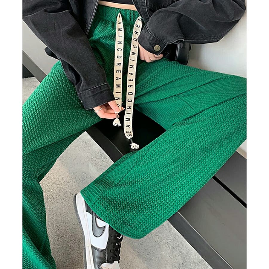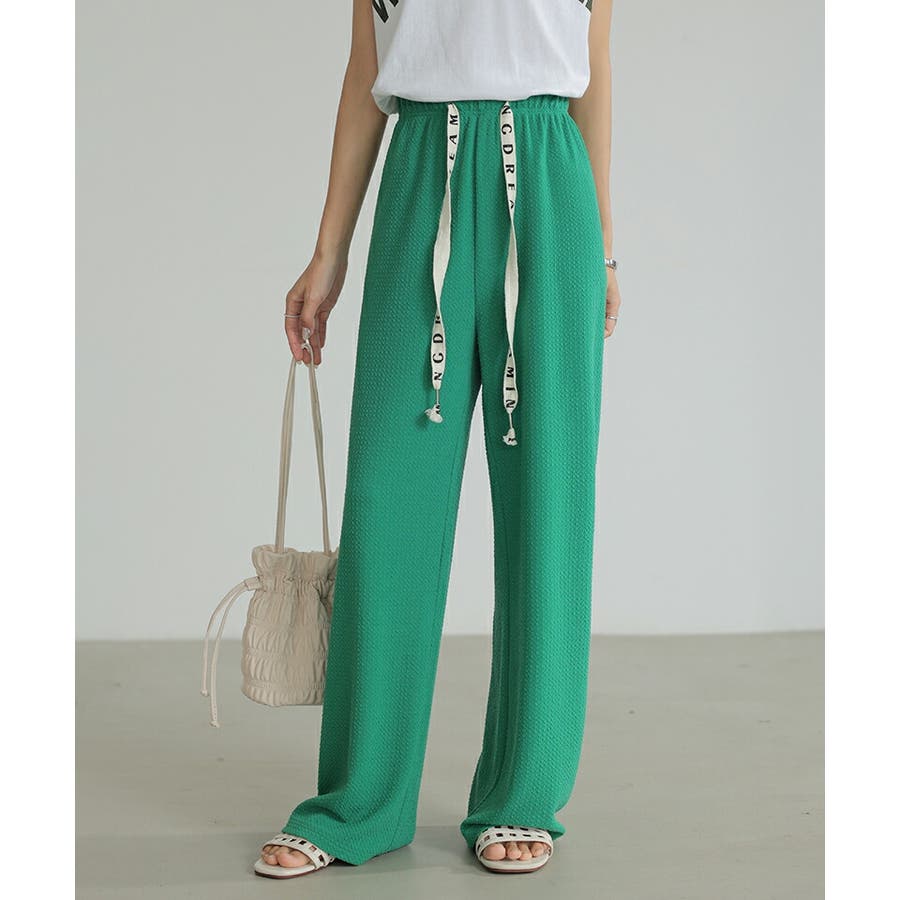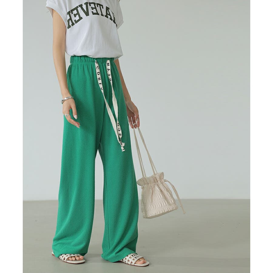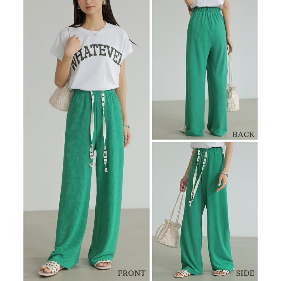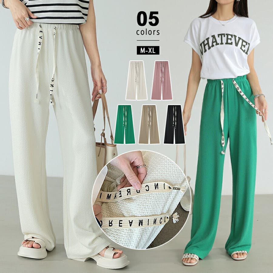 ワイドパンツ レディース パンツ エンボス加工 ストレートパンツ 凹凸 ロゴ紐 楽ちん ウエストゴム 春夏 夏パンツ ジャガード さらさら さらてろ 涼しい ゆったり 大きめ 大きい 大きいサイズ 体型カバー ボトムス ワイド イージーパンツ らくちん ワイドレッグ 部屋着 ワンマイルウェア ハイウエスト ストレート セミワイドパンツ ストレッチ 伸縮性 エンボス 凹凸パンツ ロゴ 紐 ポリエステル 脚長 美脚 細見え 美ライン 太もも 着痩せ ロング ロングパンツ ズボン 長ズボン シンプル ダンス ヒップホップ リラックス カジュアル 大人 かわいい 大人可愛い かっこいい おしゃれ カラー 桃色 肌色 白 黒 緑 s m l 春コーデ 夏コーデ 秋コーデ 春夏 春 夏 秋 春服 夏服 秋服 韓国 韓国ファッション 10代 20代 30代 40代 50代 10 20 30 40 50 代 cocomomo ココモモ
