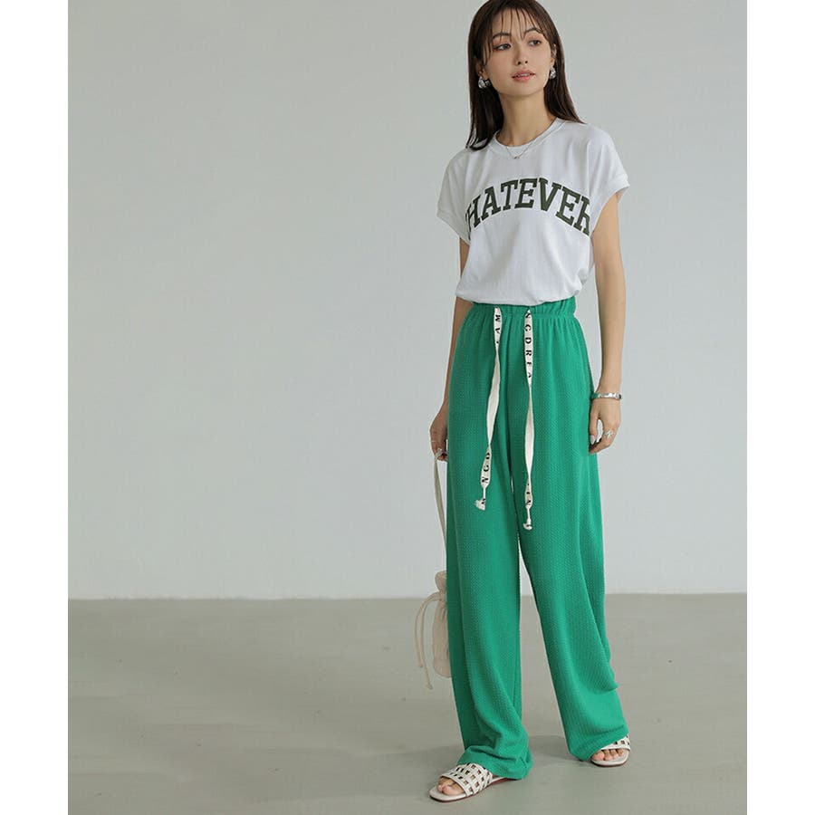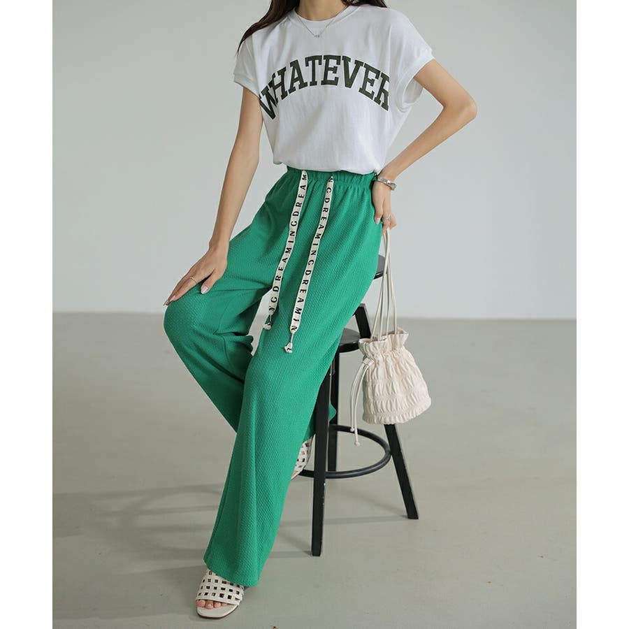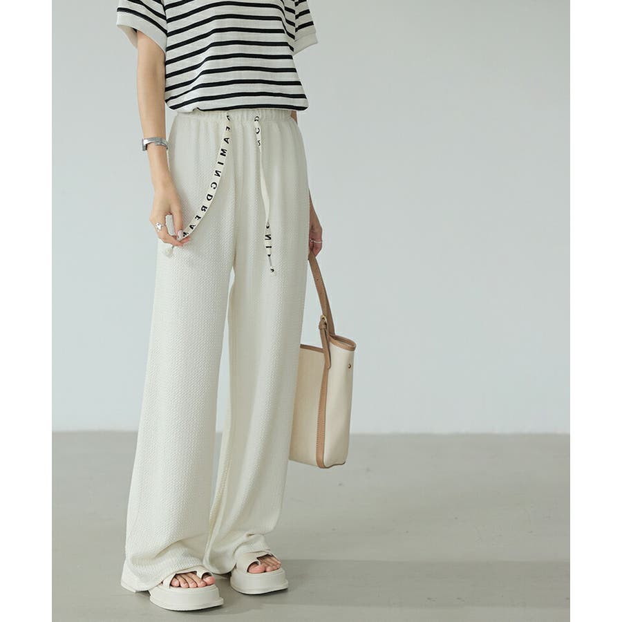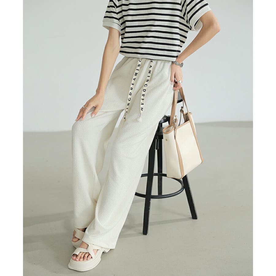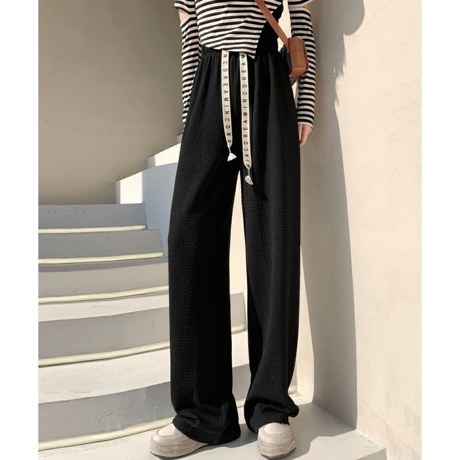 ワイドパンツ レディース パンツ エンボス加工 ストレートパンツ 凹凸 ロゴ紐 楽ちん ウエストゴム 春夏 夏パンツ ジャガード さらさら さらてろ 涼しい ゆったり 大きめ 大きい 大きいサイズ 体型カバー ボトムス ワイド イージーパンツ らくちん ワイドレッグ 部屋着 ワンマイルウェア ハイウエスト ストレート セミワイドパンツ ストレッチ 伸縮性 エンボス 凹凸パンツ ロゴ 紐 ポリエステル 脚長 美脚 細見え 美ライン 太もも 着痩せ ロング ロングパンツ ズボン 長ズボン シンプル ダンス ヒップホップ リラックス カジュアル 大人 かわいい 大人可愛い かっこいい おしゃれ カラー 桃色 肌色 白 黒 緑 s m l 春コーデ 夏コーデ 秋コーデ 春夏 春 夏 秋 春服 夏服 秋服 韓国 韓国ファッション 10代 20代 30代 40代 50代 10 20 30 40 50 代 cocomomo ココモモ