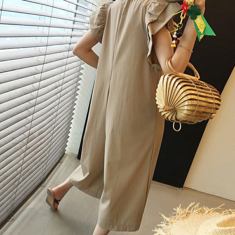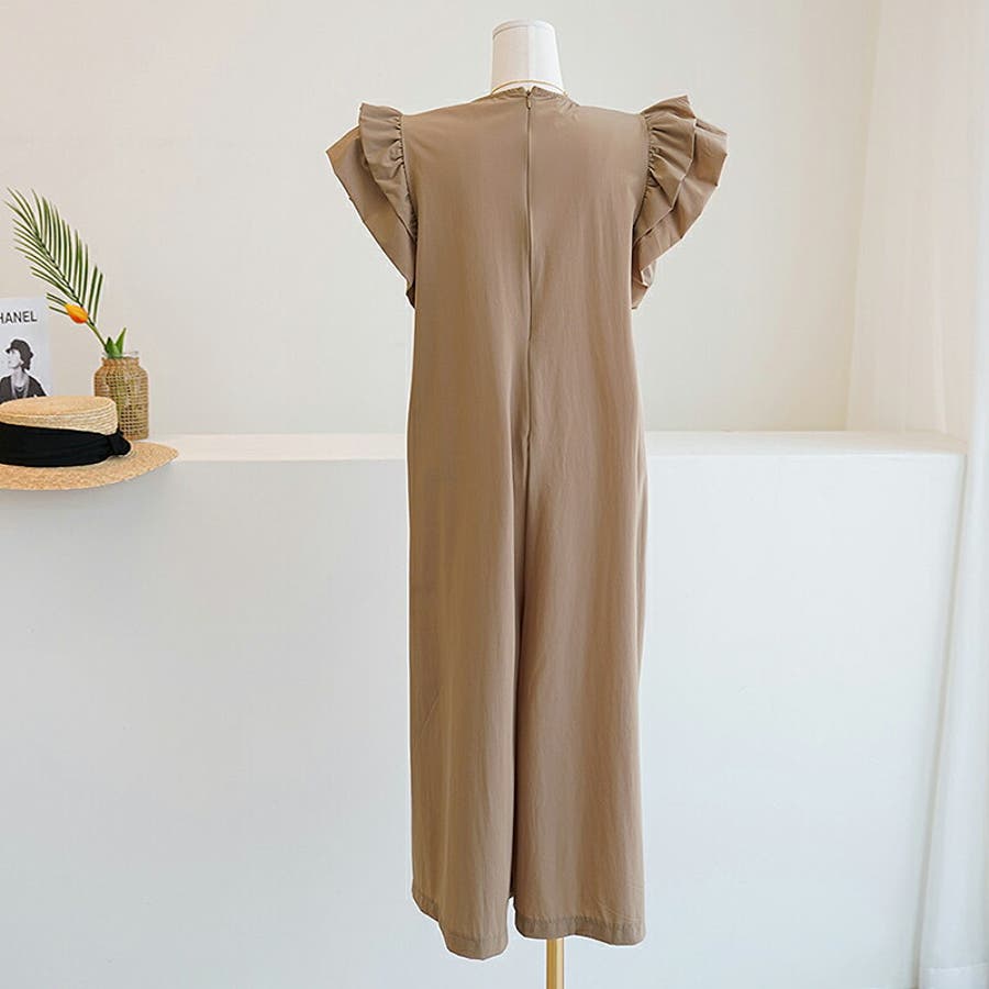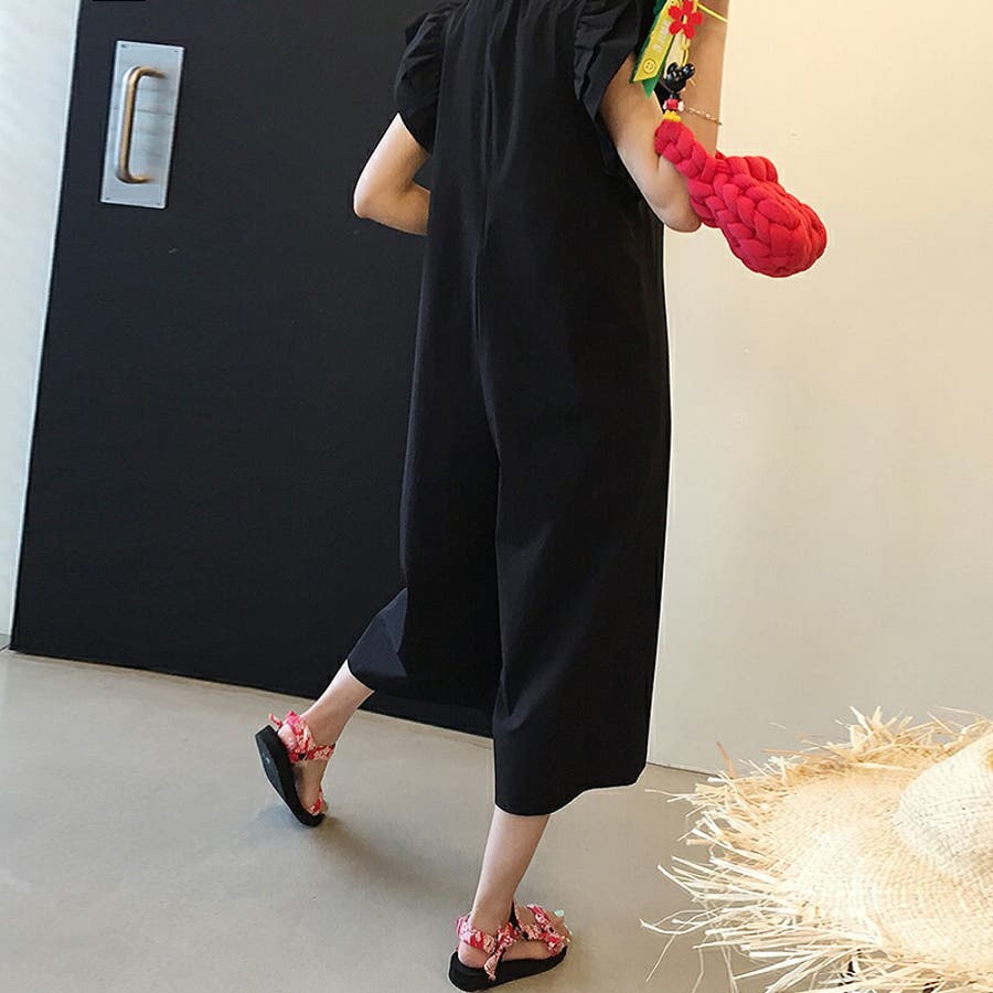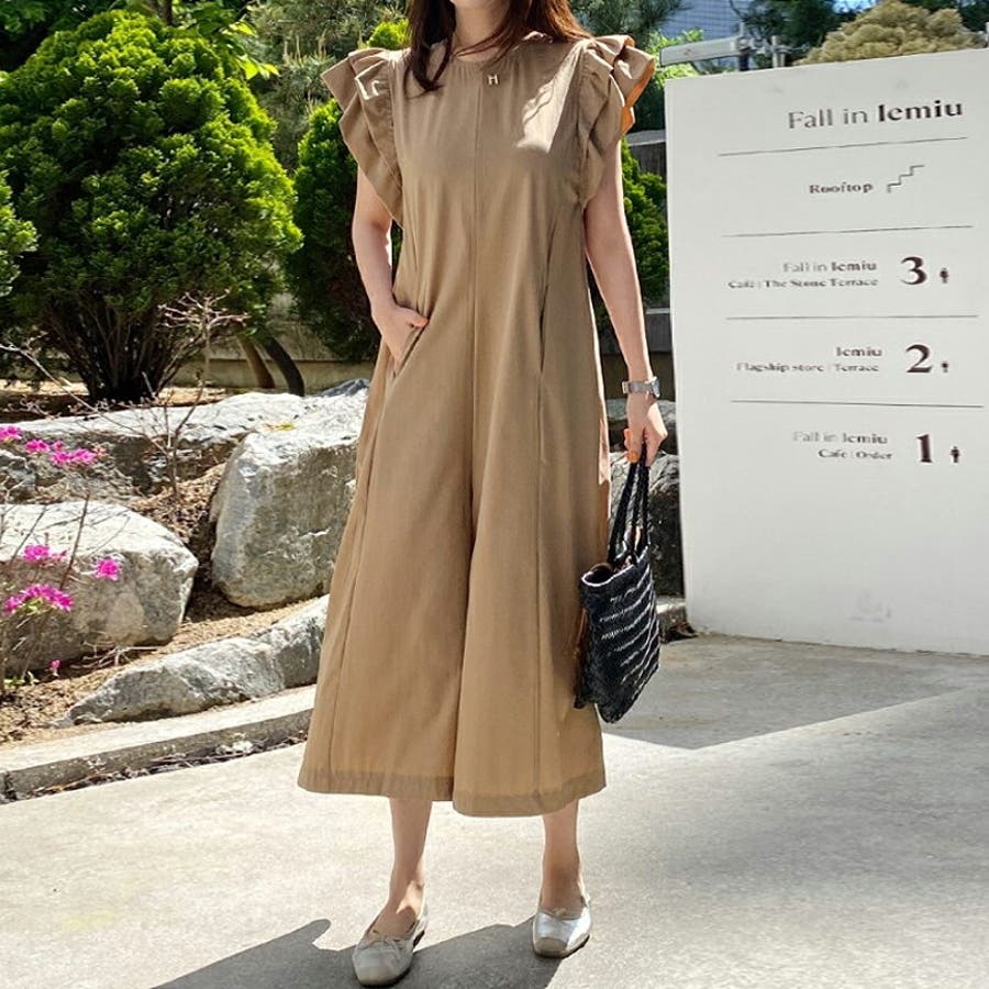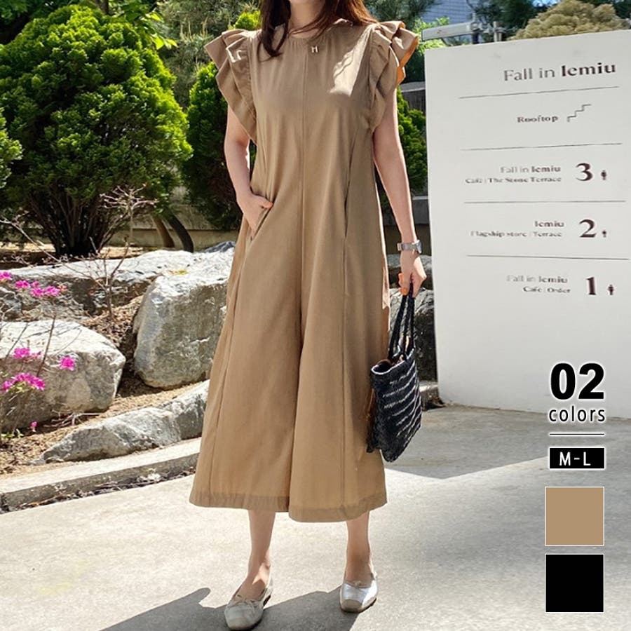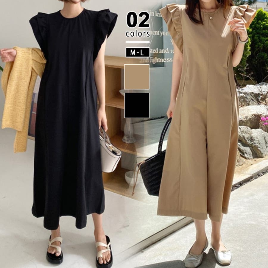 オールインワン フリル フレンチスリーブ サロペット レディース 服 パンツ 袖 フリル袖 フリルスリーブ ポケット ファスナー リゾート ラッフル ラッフルフリル 肩 コンシャス ノースリーブ クロップドパンツ クロップド丈 クロップド 涼しい ワイドパンツ サラサラ 膝下 ゆったり 大きめ 体型カバー フレア aライン ショルダーフリル オーバーオール 1枚で決まる 丸襟 クルーネック 楽ちん らくちん プチプラ 高見え ナチュラル フェミニン エレガント カジュアル 上品 きれいめ 大人 かわいい 大人可愛い おしゃれ ママ ママコーデ 母 茶色 茶 黒 春夏新作 23年 春夏 春 夏 春服 夏服 韓国 韓国ファッション 20代 30代 40代 50代 cocomomo ココモモ