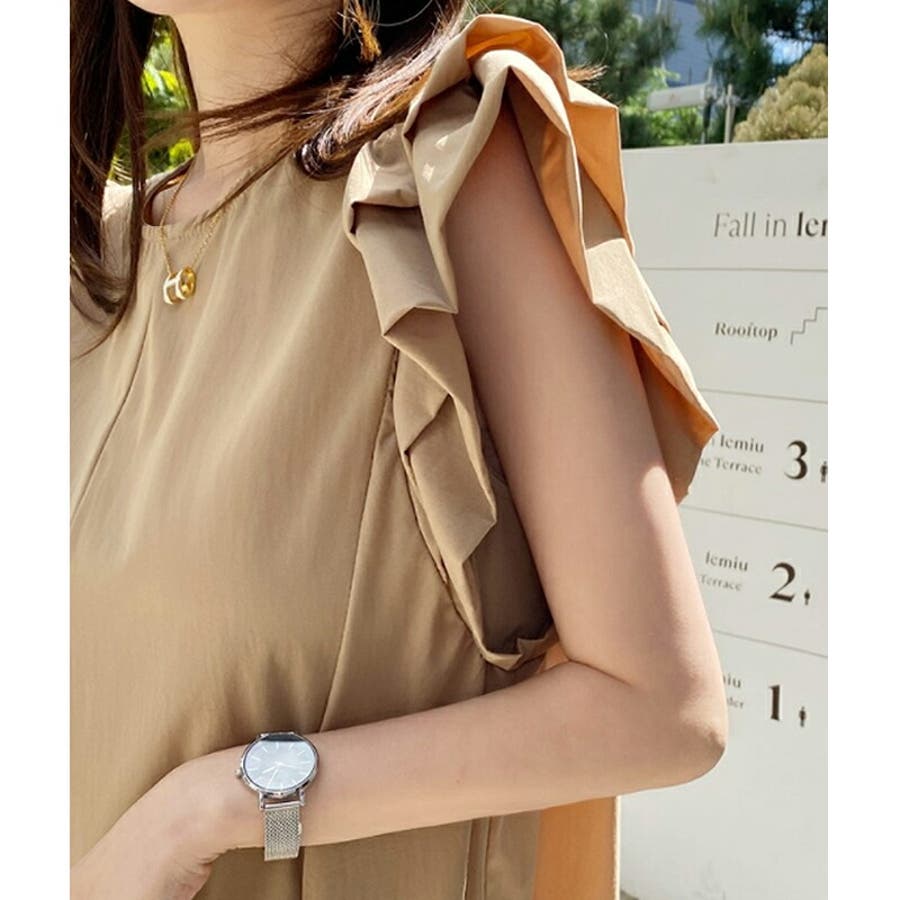 肩のフリルがフェミニン感をプラス。
