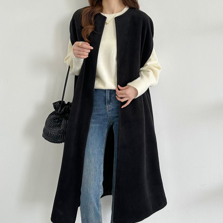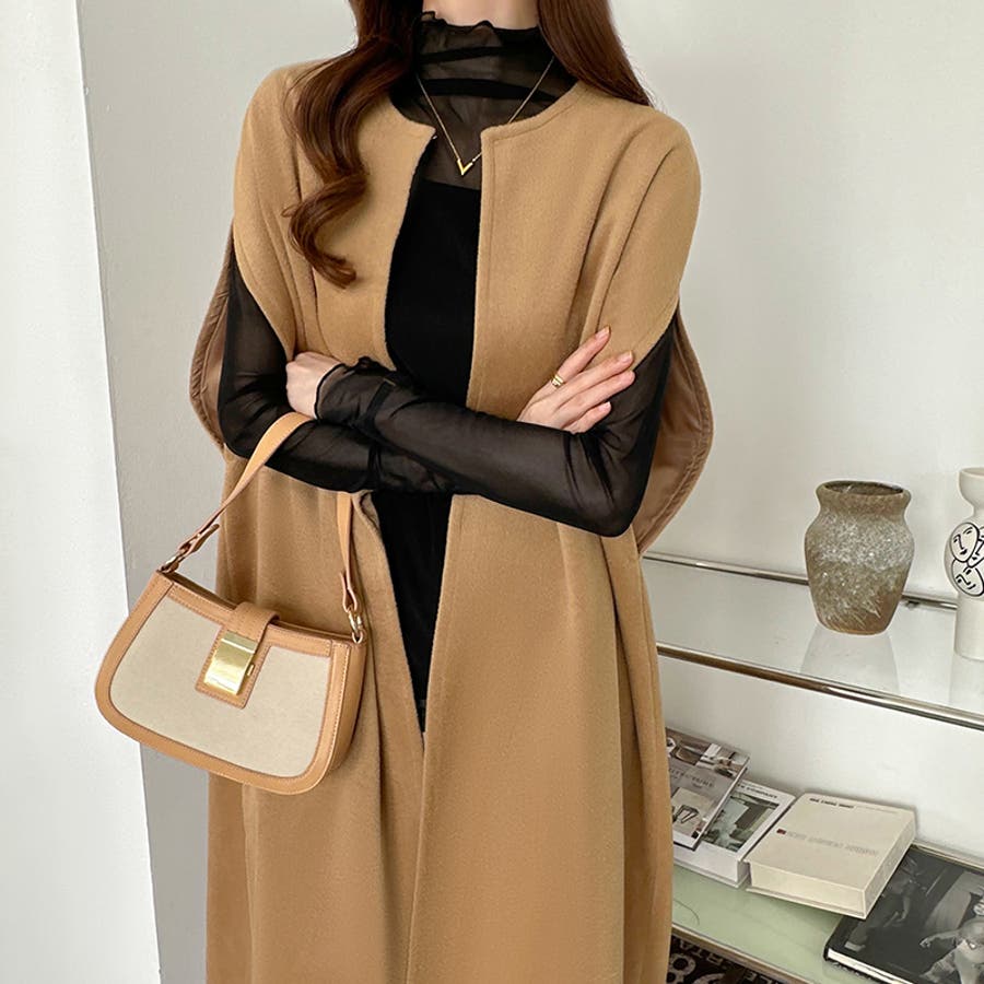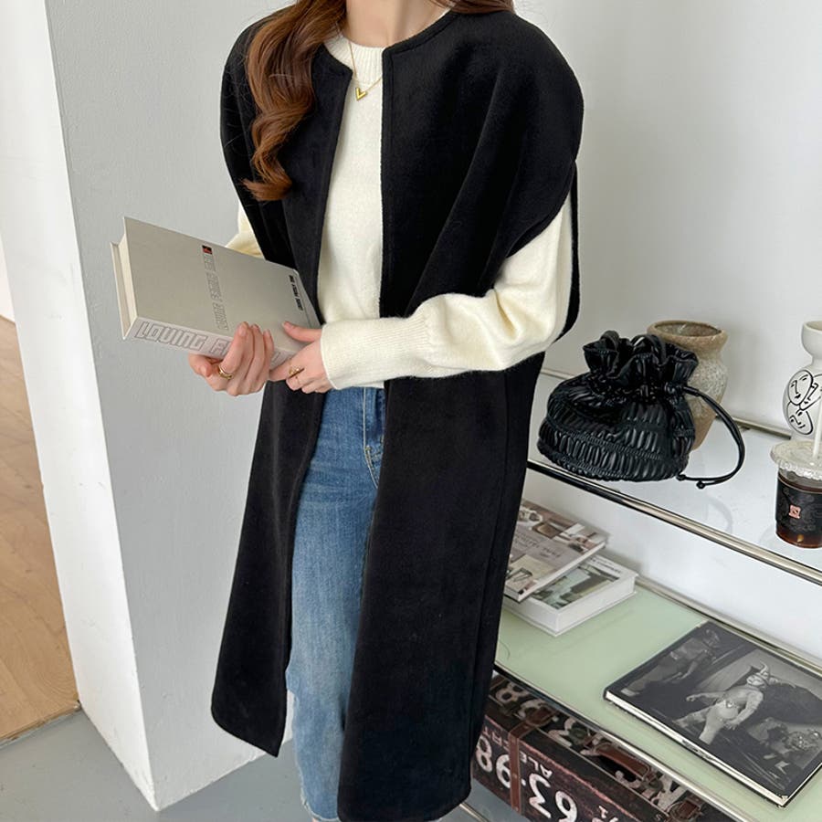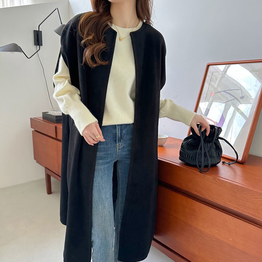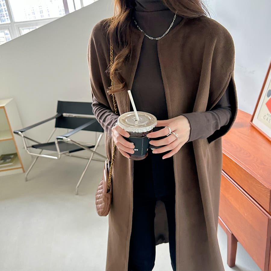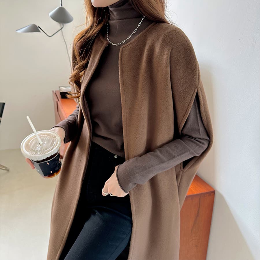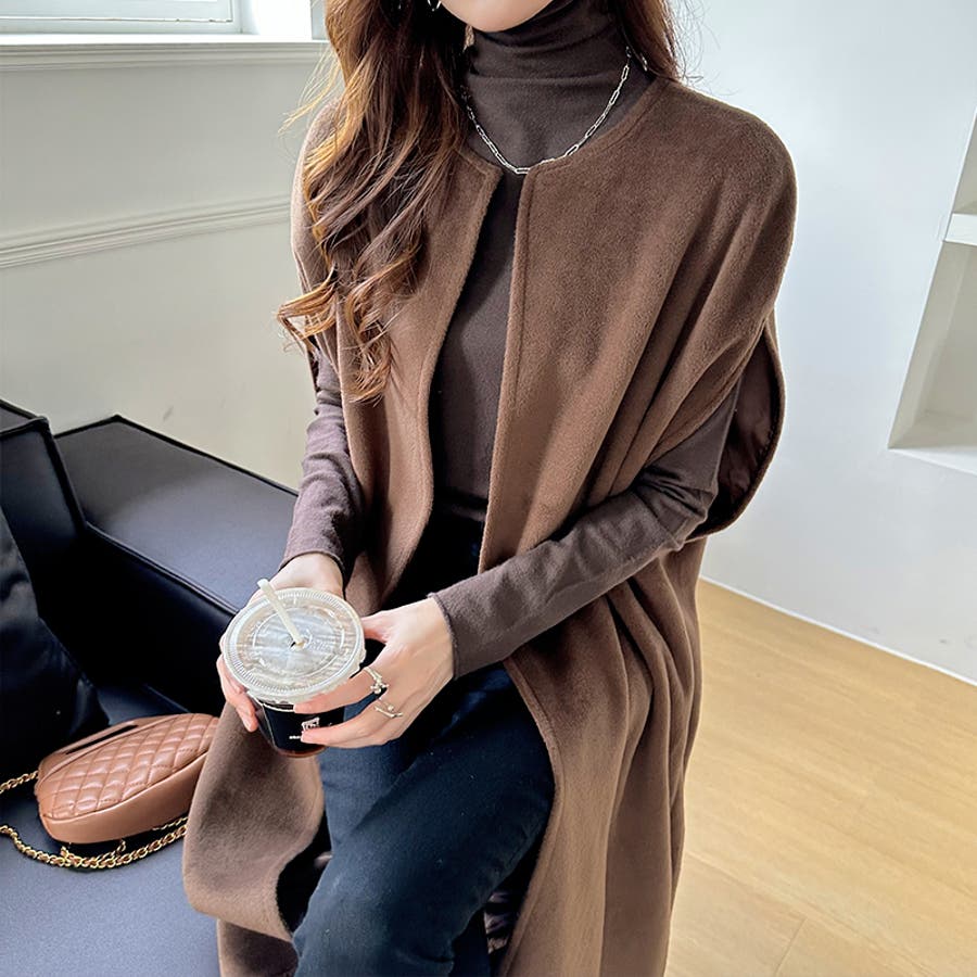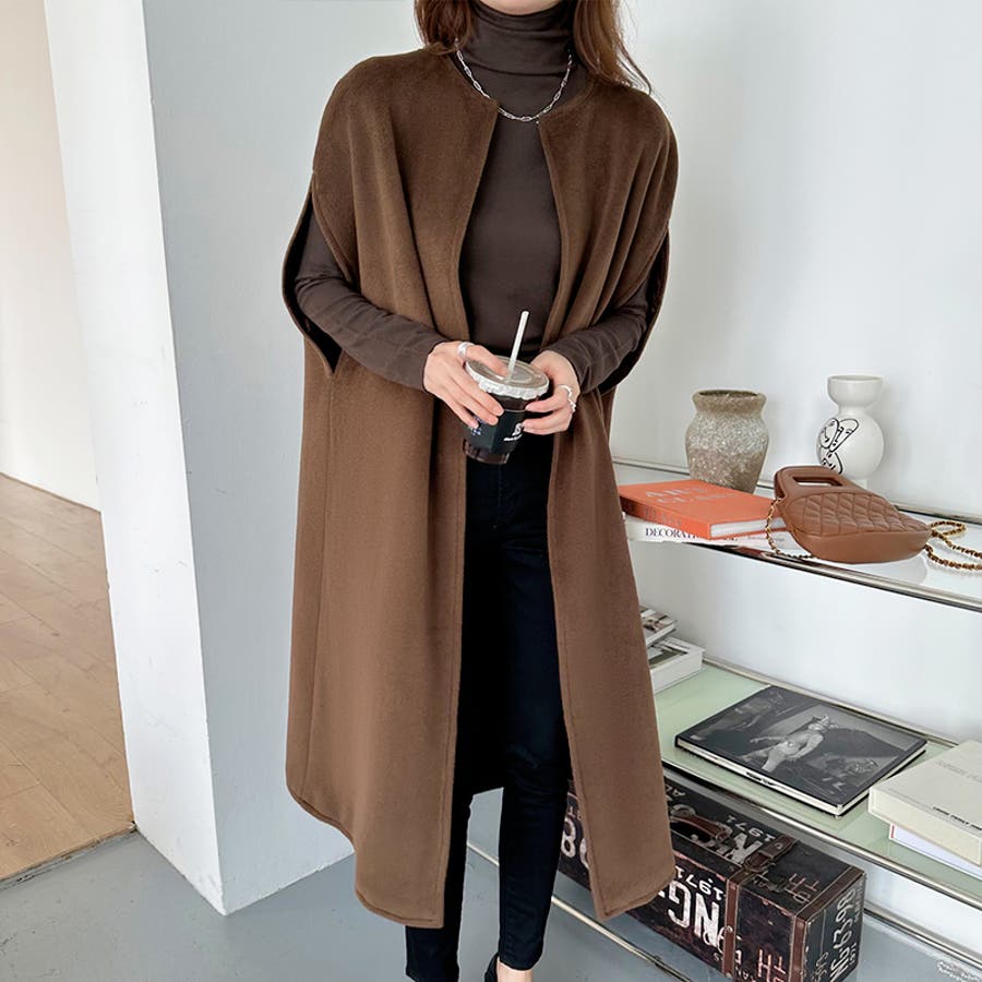 コート レディース ジレ ベスト ロングコート ロング ロング丈 ロングジレ ロングベスト ジレベスト ジャケット アウター ノーカラー ノーカラーコート ノーカラージャケット ノースリーブ 襟なし 袖なし メルトン風 ケープ ポンチョ ゆったり 大きめ 大きいサイズ 体型カバー 羽織 羽織り 羽織もの 上着 あたたかい あったか 暖かい 厚手 厚い 長い コートケープ フォーマル セレモニー シンプル 無地 重ね 重ね着 レイヤード オフィス オフィスカジュアル カジュアル 上品 大人 オトナ かわいい 可愛い 大人可愛い オトナ女子 オシャレ おしゃれ 高見え プチプラ 通勤 通学 母 ママ ママコーデ 女性 フリーサイズ ブラック 黒 ダークブラウン ブラウン 茶色 ライトブラウン ベージュ 新作 2023aw 2023 秋冬新作 秋冬 秋 冬 秋服 冬服 韓国 韓国ファッション 10代 20代 30代 40代 50代 cocomomo ココモモ