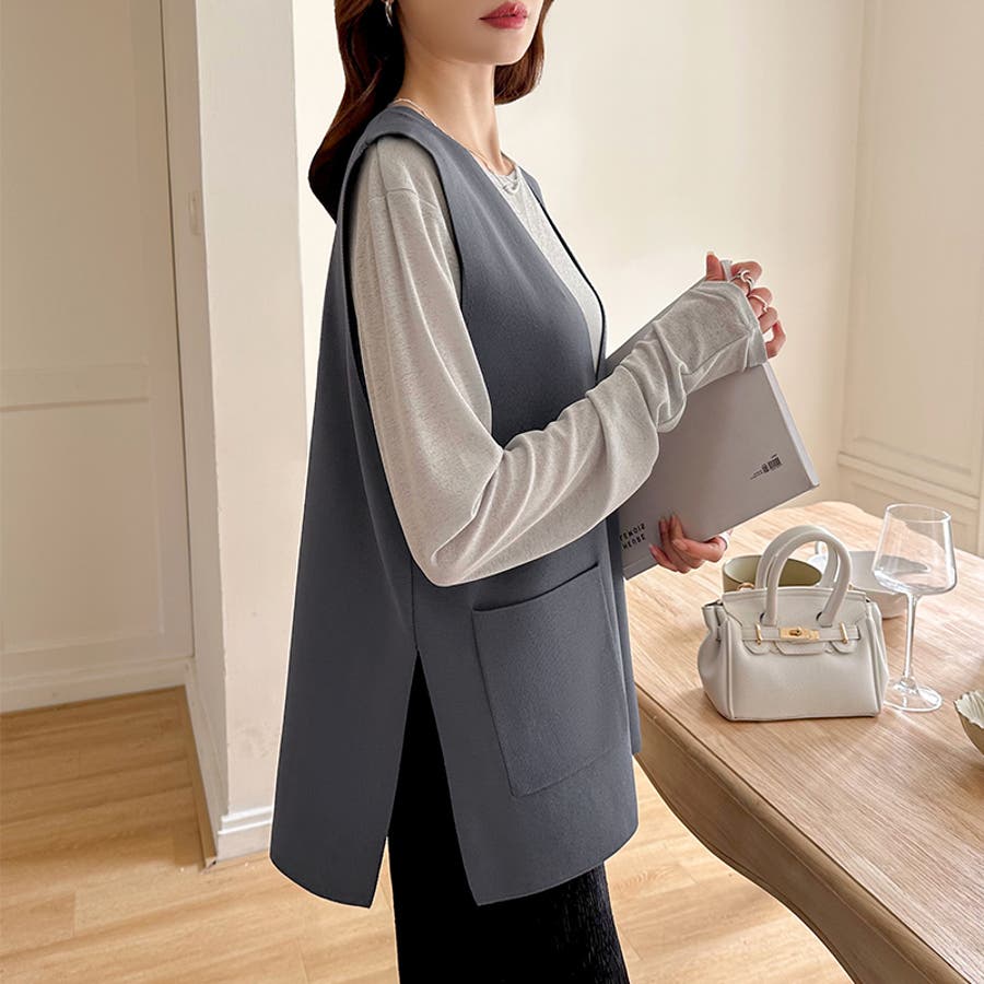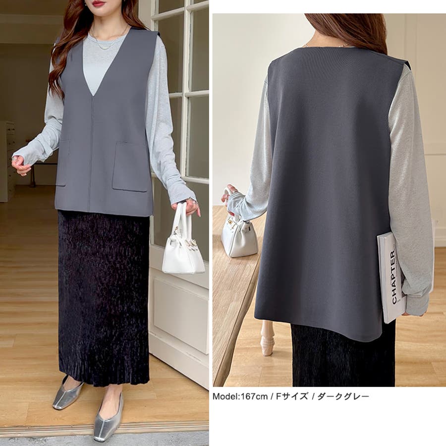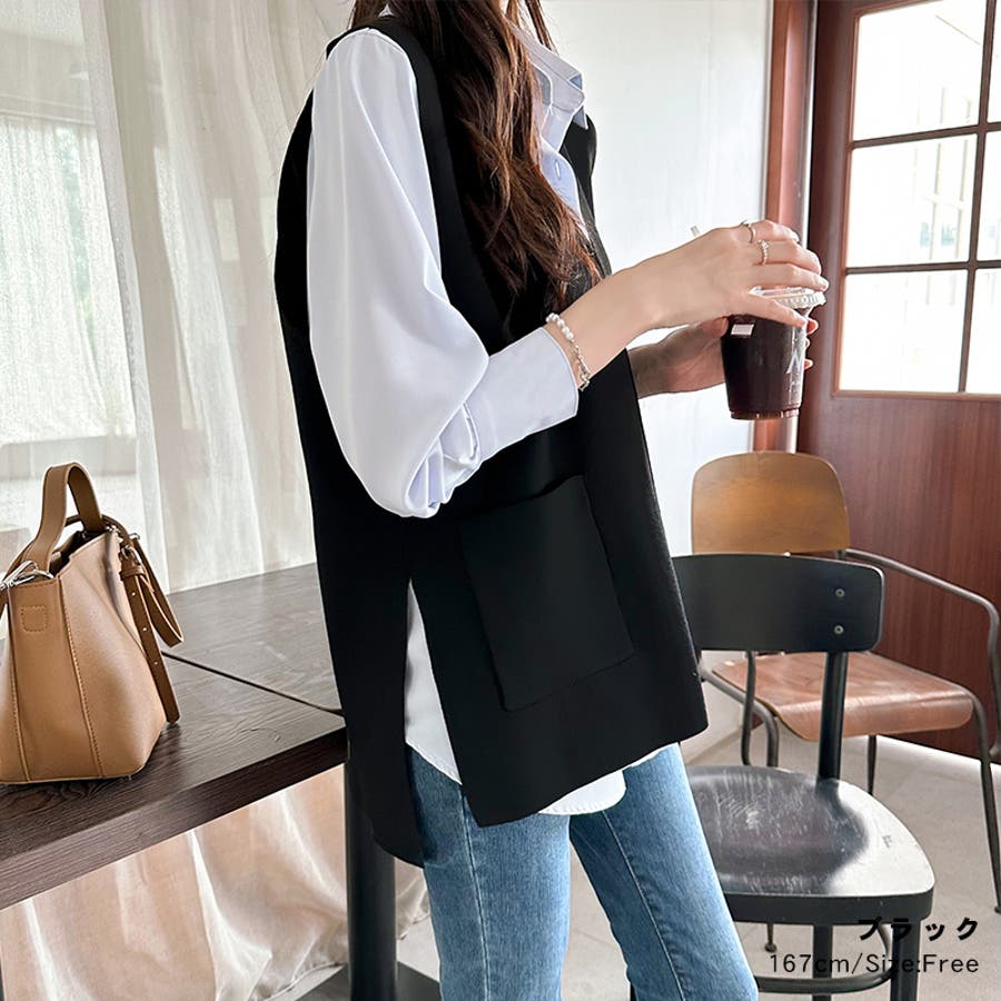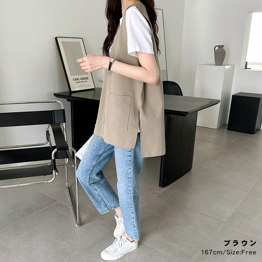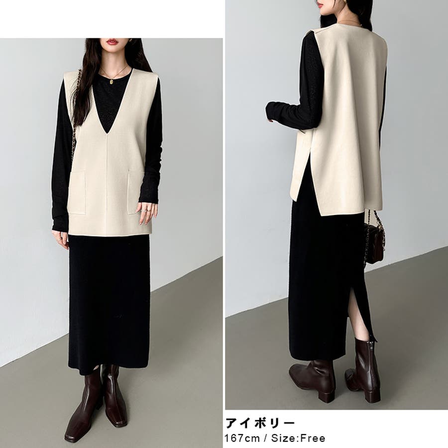 ベスト レディース Vネック ジレ ニットベスト ニットジレ ロングジレ ロング ロング丈 ニット ポケット ポケット付き v 深vネック 深v シンプル 無地 ゆったり 大きめ 体型カバー ノースリーブ トップス スリット 深め 深い 長め ベーシック 定番 着回し 重ね着 重ね レイヤード 着こなし プルオーバー ポリエステル ポリエステル100% さらさら お出かけ おでかけ 旅行 オフィス オフィスカジュアル オフィスカジュアル秋冬 仕事 事務 カジュアル きれいめ キレイめ きれい 大人 かわいい 可愛い 大人可愛い オトナ女子 おしゃれ オシャレ プチプラ ママ ママコーデ 母 女性 トレンド ヒット 商品 おすすめ 服 ファッション フリーサイズ ブラック 黒 アイボリー きなり 生成り ブラウン 茶色 ネイビー 紺 ニットベスト秋冬 新作 2023ss 2023aw 春夏 秋冬 春 夏 秋 冬 春服 夏服 秋服 冬服 韓国 韓国ファッション 10代 20代 30代 40代 50代 60代 cocomomo ココモモ ダークグレー 灰色 ライトグレー