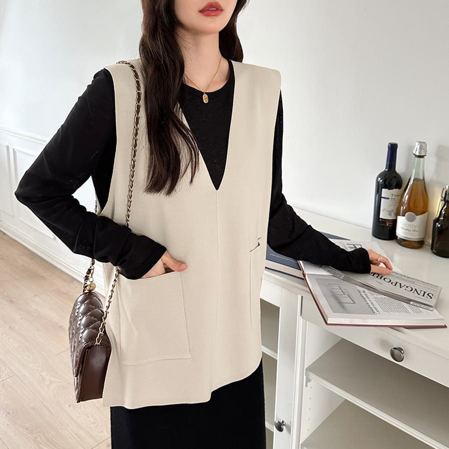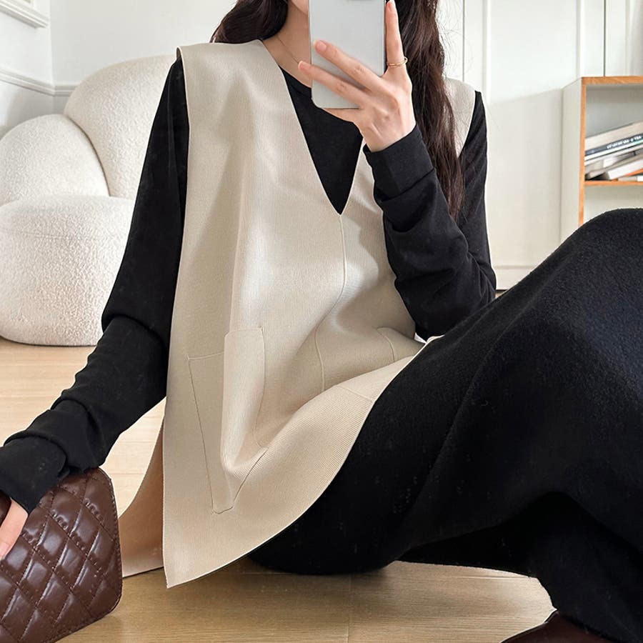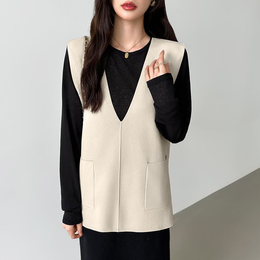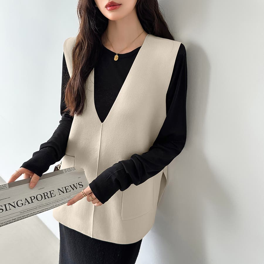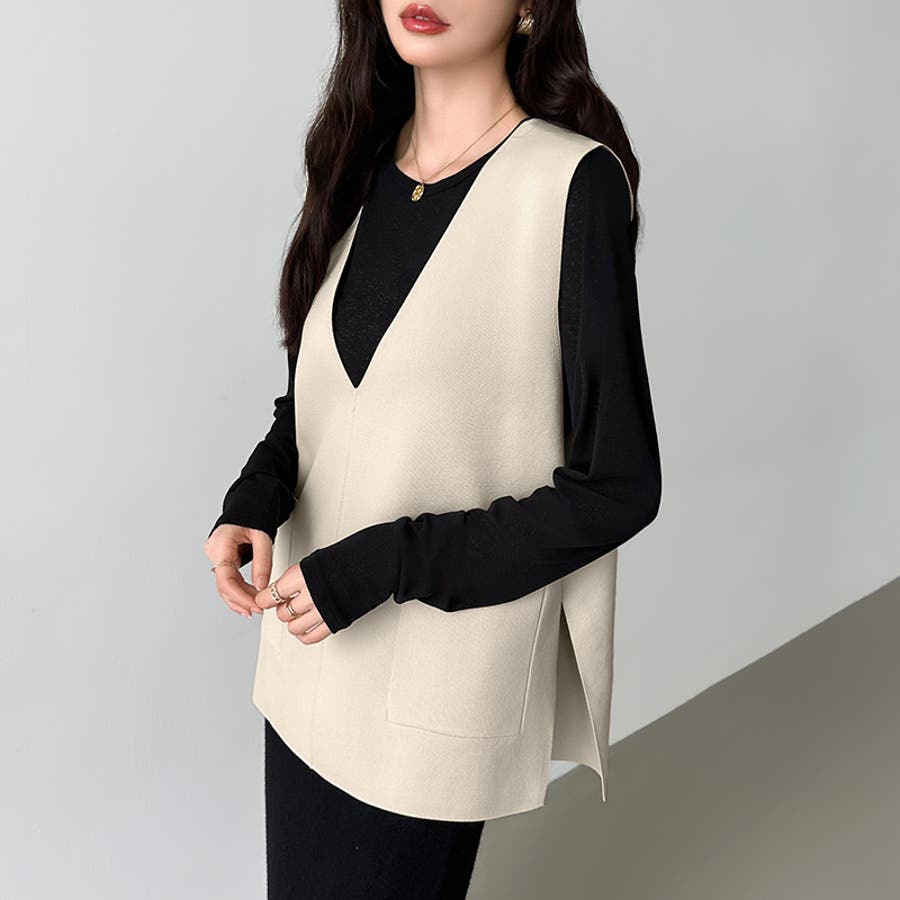 ベスト レディース Vネック ジレ ニットベスト ニットジレ ロングジレ ロング ロング丈 ニット ポケット ポケット付き v 深vネック 深v シンプル 無地 ゆったり 大きめ 体型カバー ノースリーブ トップス スリット 深め 深い 長め ベーシック 定番 着回し 重ね着 重ね レイヤード 着こなし プルオーバー ポリエステル ポリエステル100% さらさら お出かけ おでかけ 旅行 オフィス オフィスカジュアル オフィスカジュアル秋冬 仕事 事務 カジュアル きれいめ キレイめ きれい 大人 かわいい 可愛い 大人可愛い オトナ女子 おしゃれ オシャレ プチプラ ママ ママコーデ 母 女性 トレンド ヒット 商品 おすすめ 服 ファッション フリーサイズ ブラック 黒 アイボリー きなり 生成り ブラウン 茶色 ネイビー 紺 ニットベスト秋冬 新作 2023ss 2023aw 春夏 秋冬 春 夏 秋 冬 春服 夏服 秋服 冬服 韓国 韓国ファッション 10代 20代 30代 40代 50代 60代 cocomomo ココモモ ダークグレー 灰色 ライトグレー