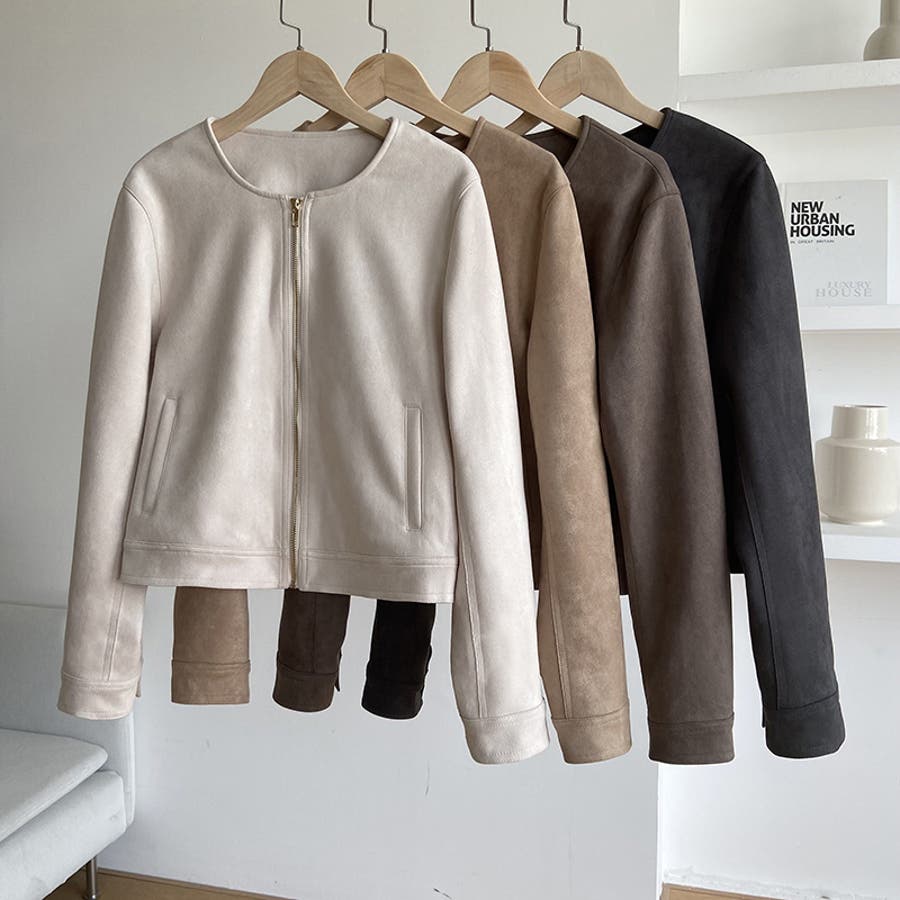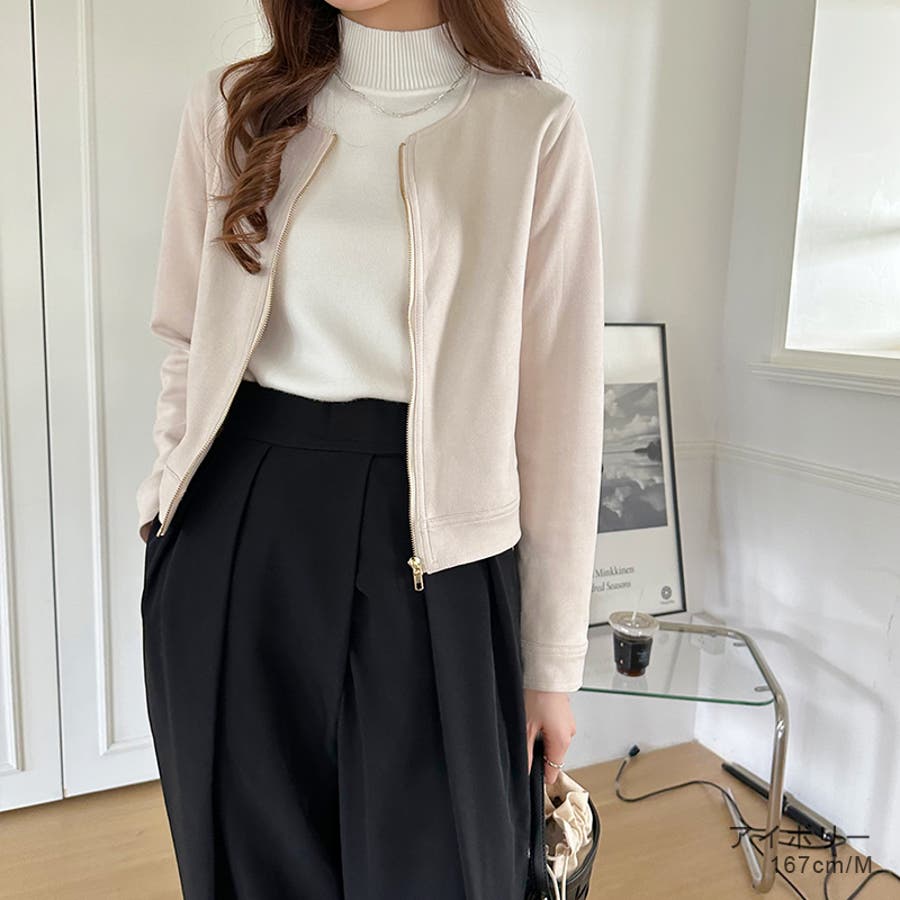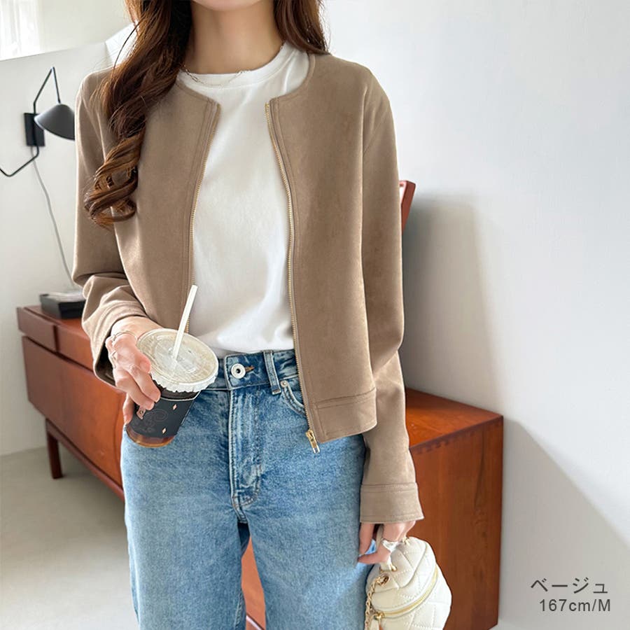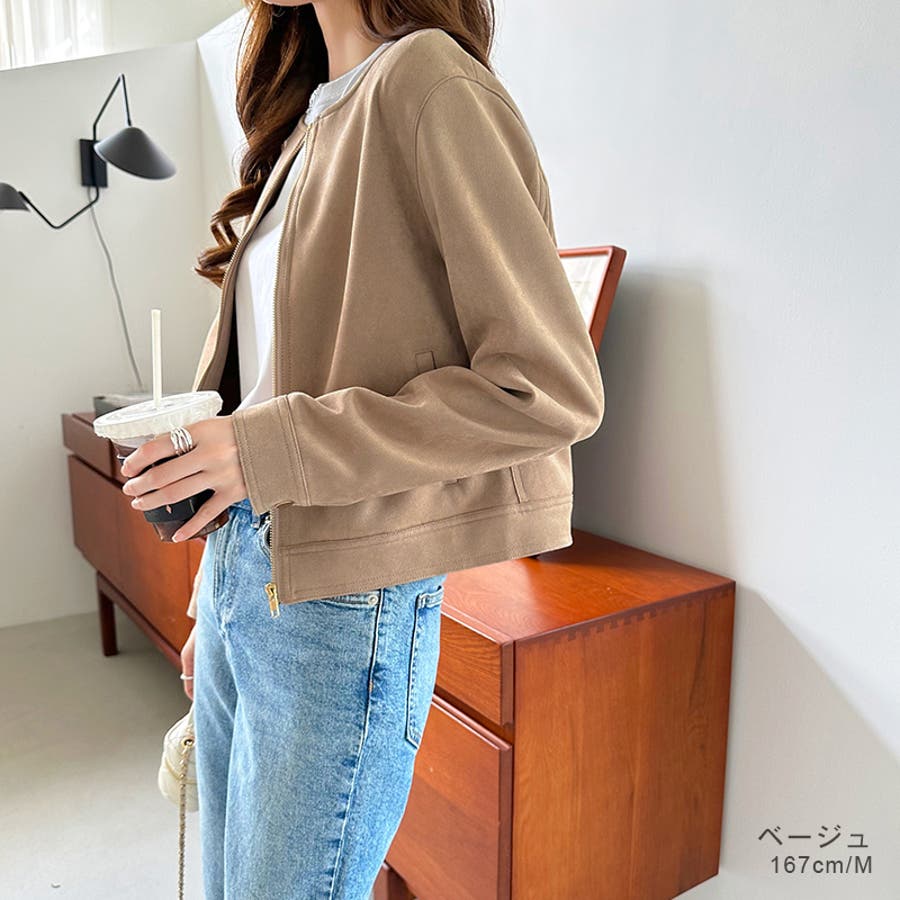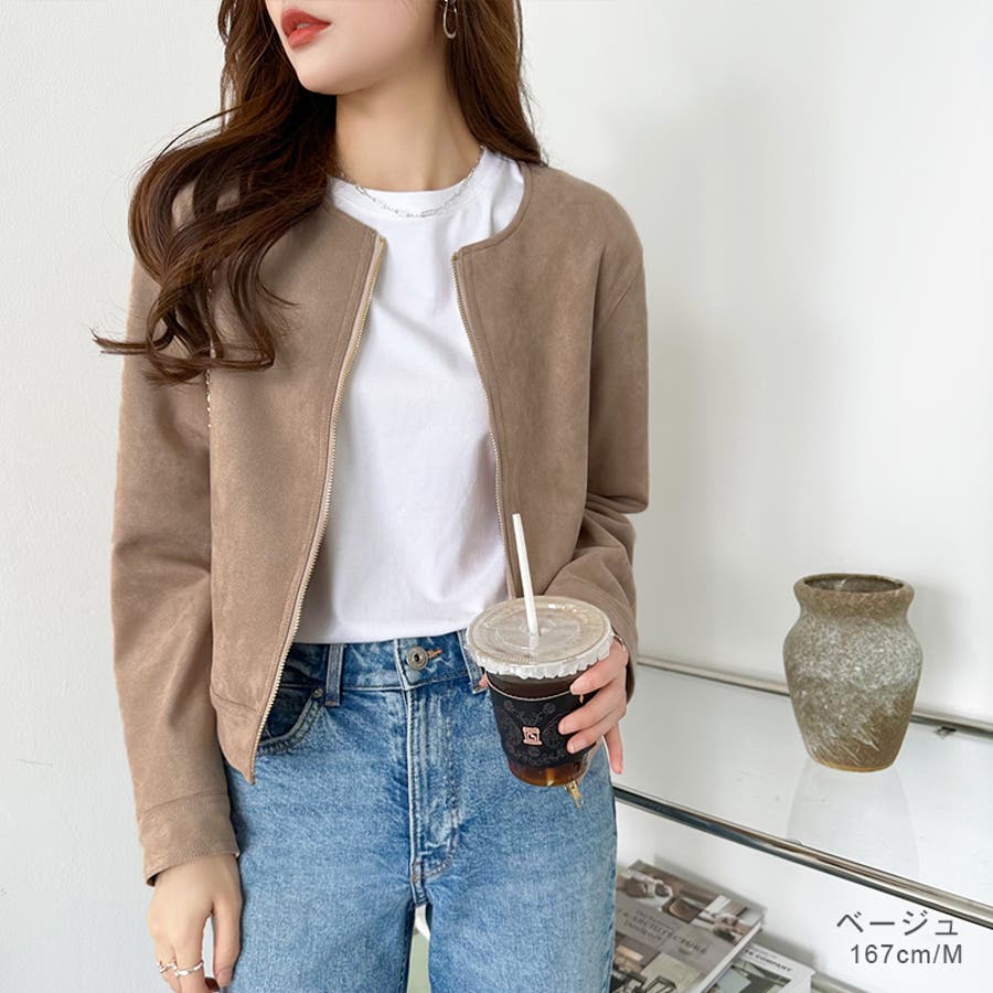 ジャケット レディース ノーカラージャケット ノーカラー ブルゾン ノーカラーブルゾン 襟なし アウター ライダース ライダースジャケット スエード風 スウェード風 フェイクスエード ポリエステル 長袖 羽織 羽織り 羽織もの 上着 ショート ショート丈 ゆったり コンパクト コンパクトジャケット シンプル 無地 ポケット付き ポケット ジップアップ 防寒 防風 あたたかい あったか 暖かい 前開き オフィス オフィスカジュアル 上品 カジュアル 大人 オトナ オトナ女子 かわいい 可愛い 大人可愛い おしゃれ オシャレ 高見え プチプラ m l サイズ mサイズ lサイズ 白 生成り色 きなり色 ベージュ ブラウン 茶色 グレー 灰色 くすみ カラー くすみカラー 通勤 通学 2023 2023aw 2023新作 新作 秋冬 春 秋 冬 春服 秋服 冬服 韓国 韓国ファッション 10代 20代 30代 40代 50代 cocomomo ココモモ
