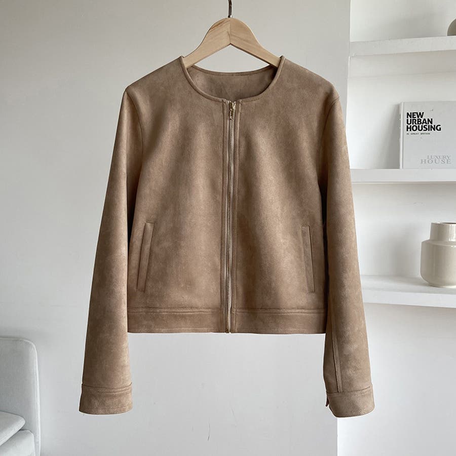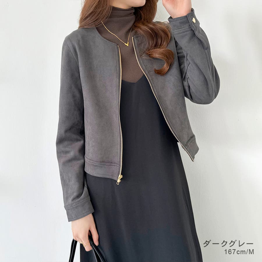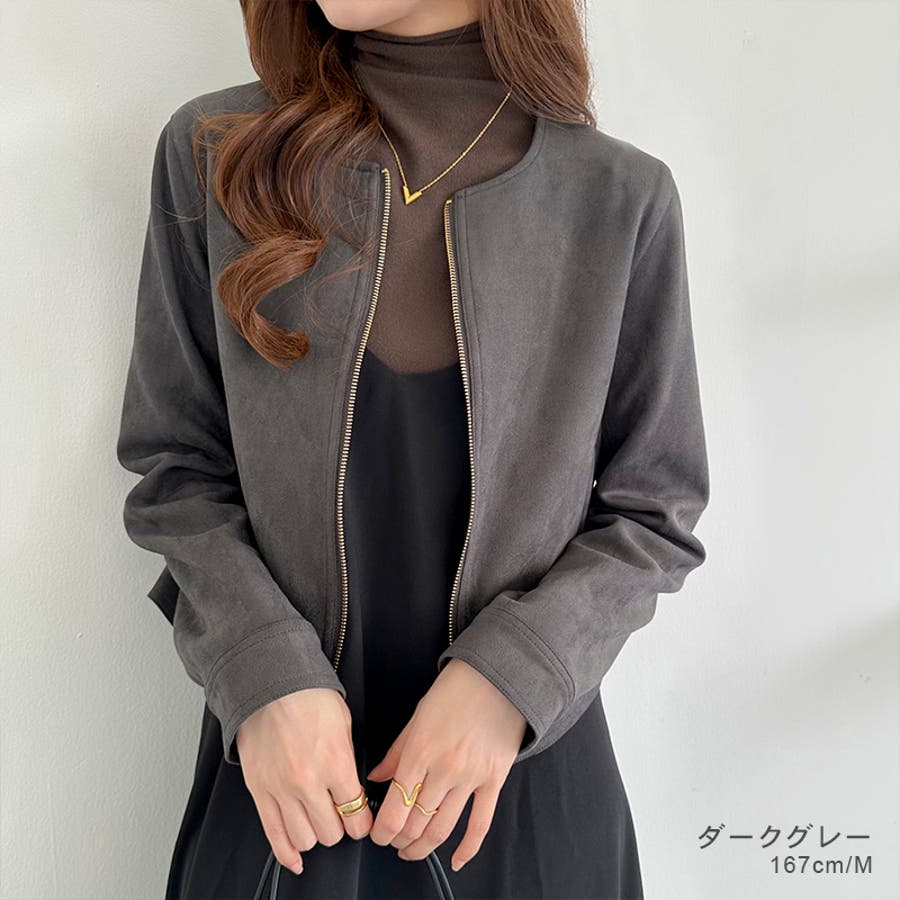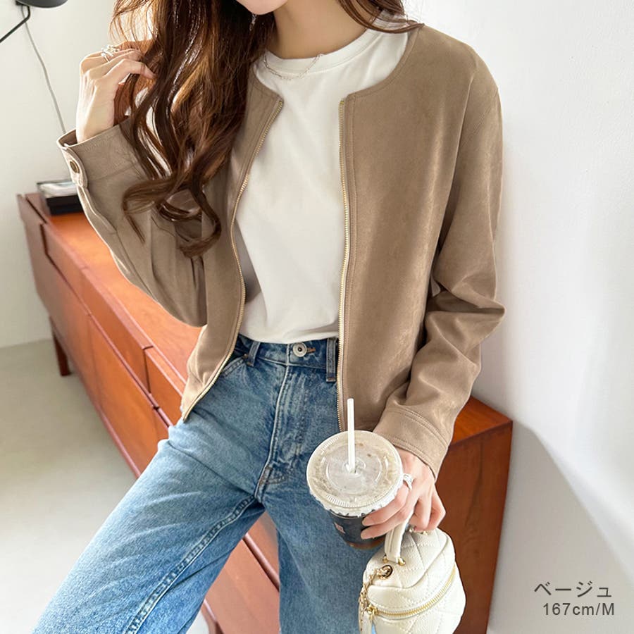 フェイクスエードノーカラーブルゾン ジャケット アウター