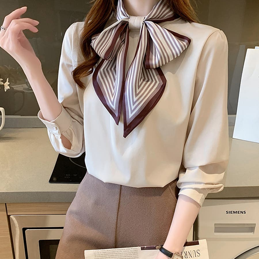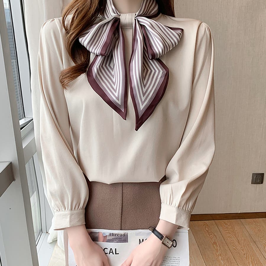 ボウタイ ブラウス リボン レディース 長袖 ボウタイブラウス 立ち襟 シフォン シャツブラウス トップス 襟 さらさら とろみ 柔らか 綿 コットン 綿混 柄 華やか リボンタイ 首元 スタンドカラー スタンド フォーマル 卒園式 卒業式 入学式 演奏会 セレモニー 通勤 通学 ol ゆったり オフィス オフィスカジュアル プチプラ フェミニン レトロ エレガント 上品 大人 かわいい 可愛い 大人可愛い きれい きれいめ キレイめ おしゃれ オシャレ 女 ママ ママコーデ 母 m i サイズ 白 ホワイト ベージュ 23年 2023 2023春夏 秋冬 春 秋 冬 春服 秋服 冬服 韓国 韓国ファッション 10代 20代 30代 40代 50代 cocomomo ココモモ