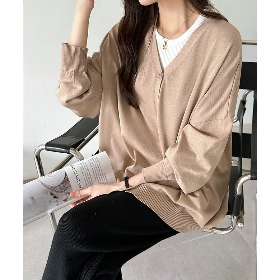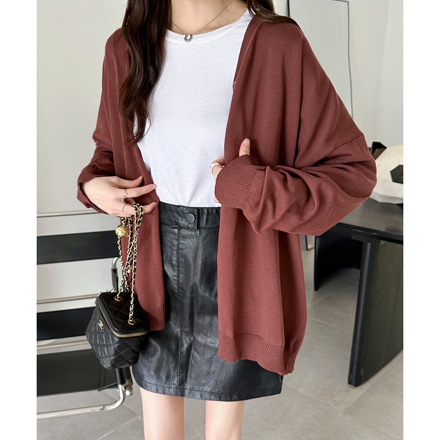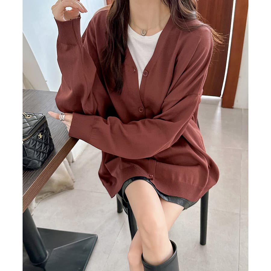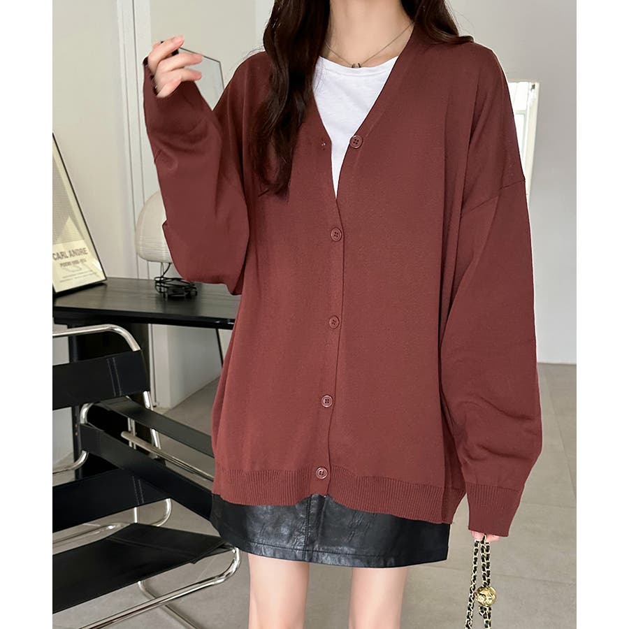 【ダークブラウン】カーディガン オーバーサイズカーディガン ドロップショルダー