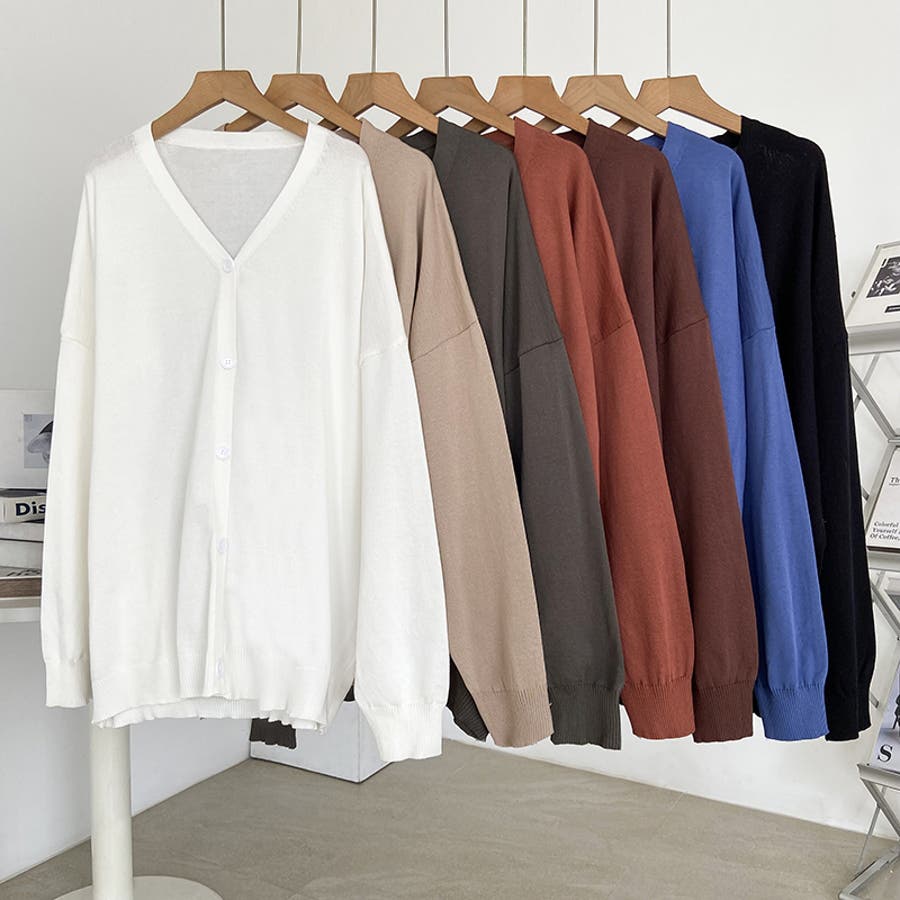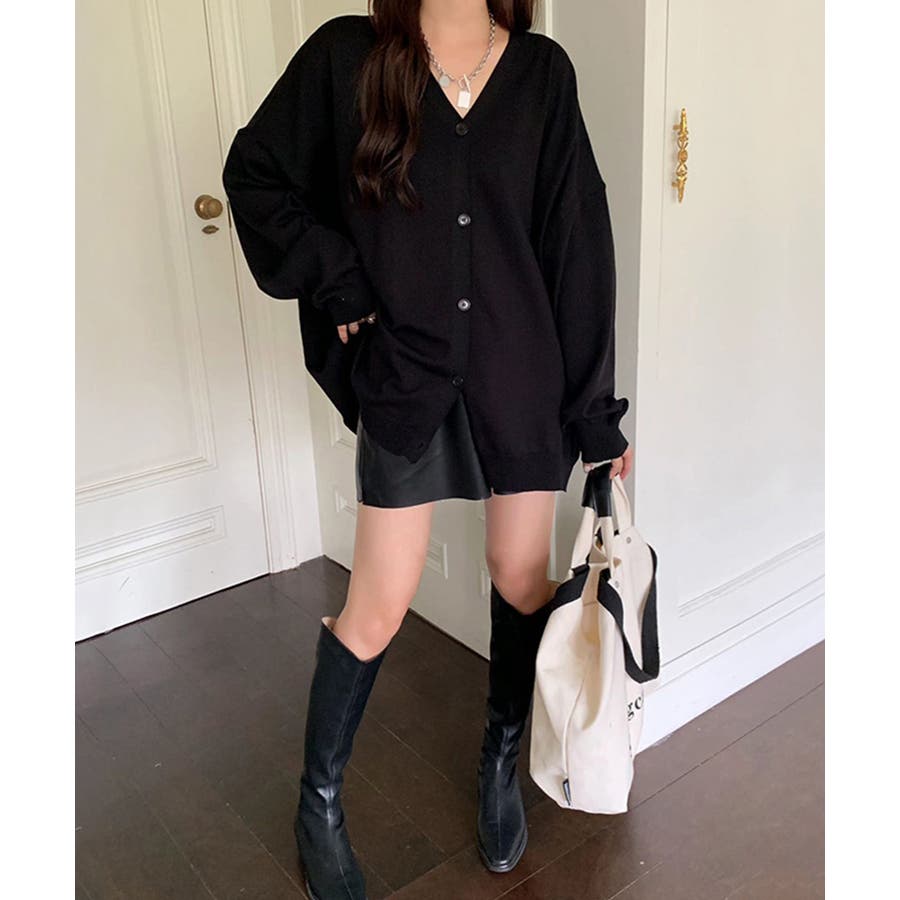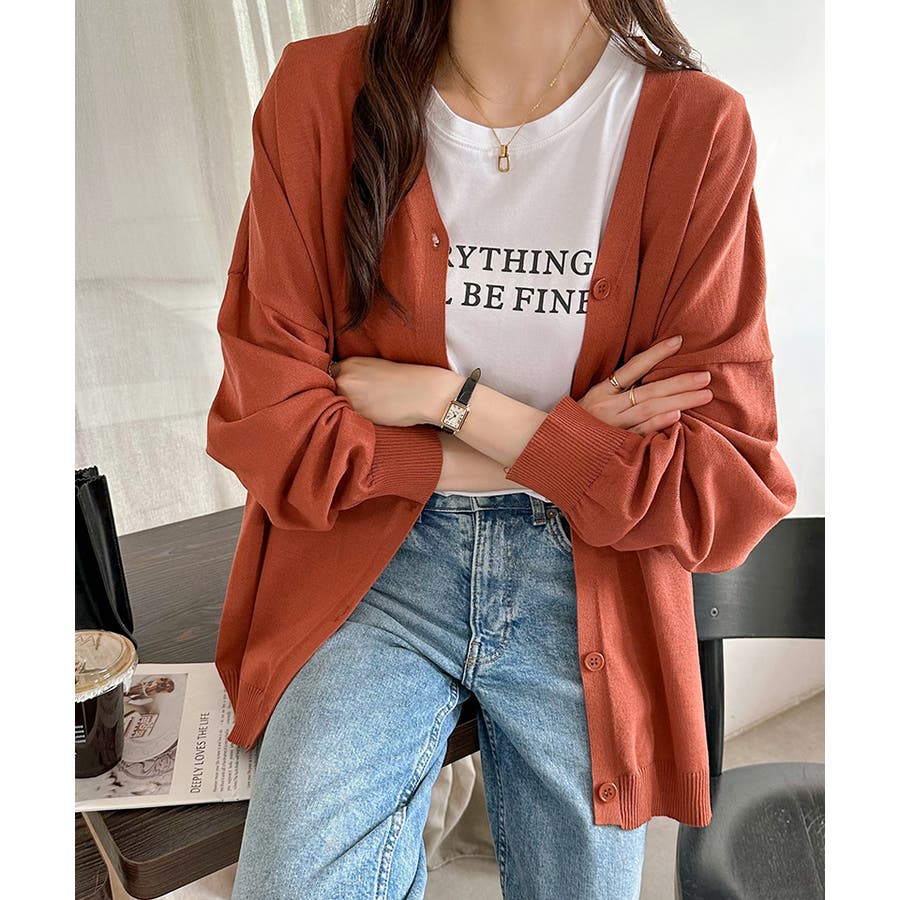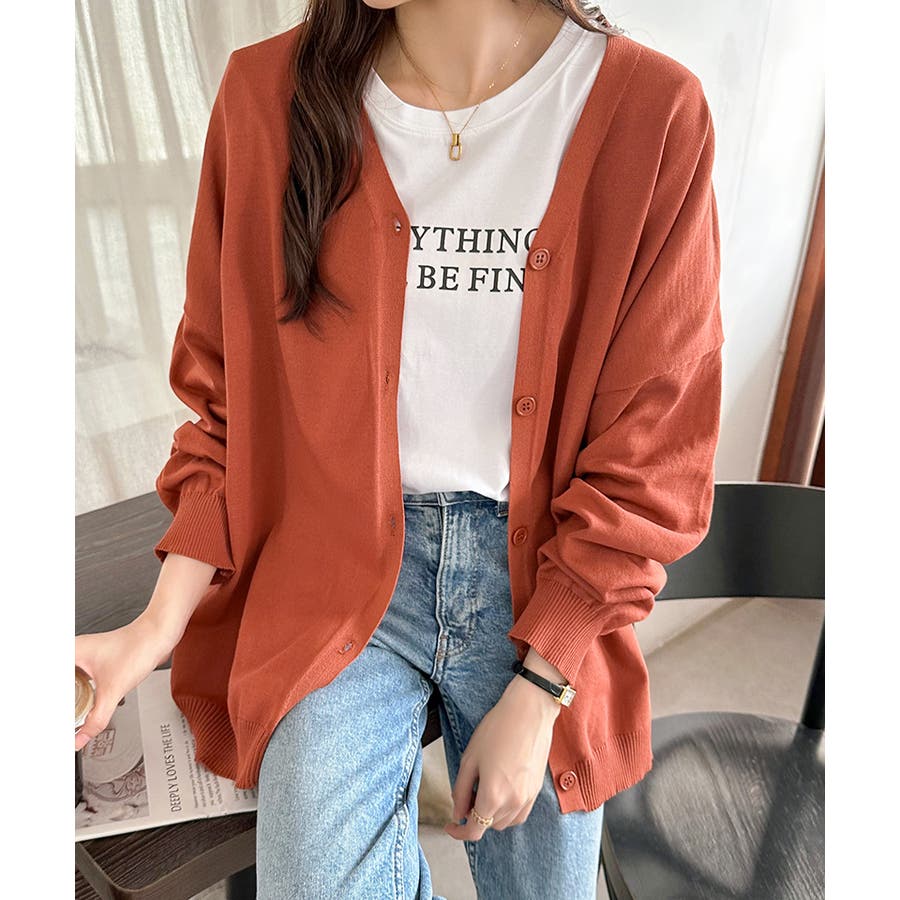 【ダークブラウン】カーディガン オーバーサイズカーディガン ドロップショルダー