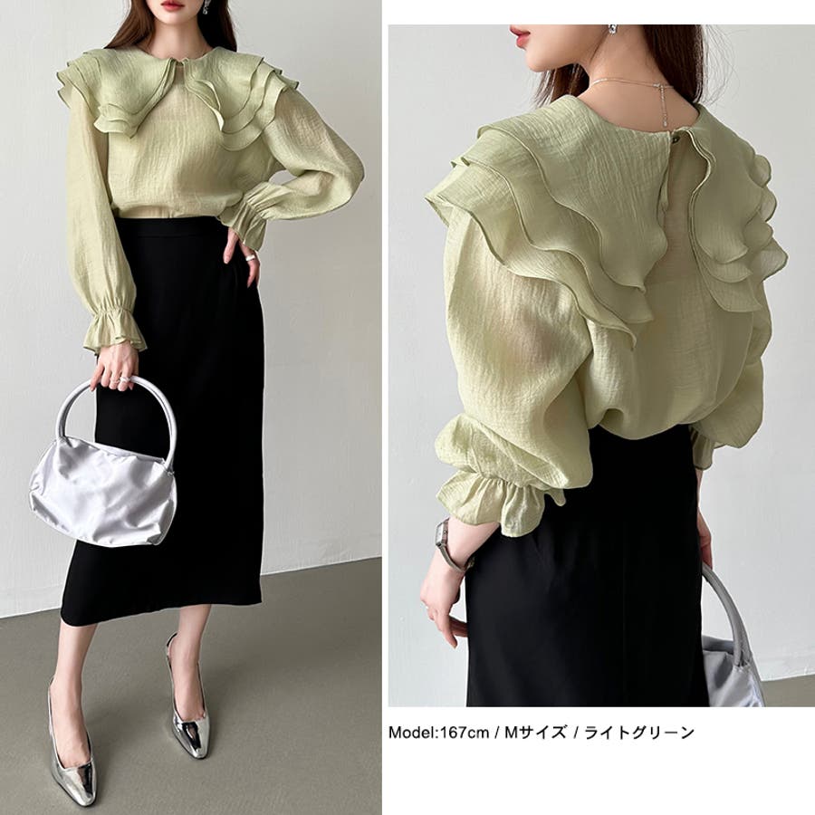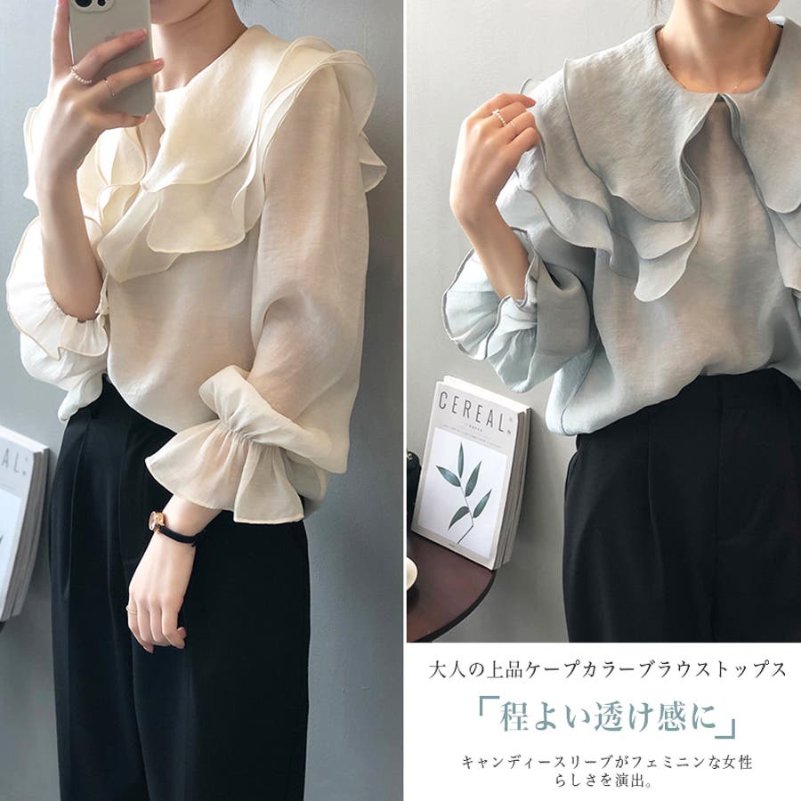 フォーマル春 ブラウス レディース トップス ケープカラー セーラーカラー ラッフル シアー トップス シアートップス シアーシャツ スリーブ ケープ ケープ襟 セーラー ラッフルカラー フリル パフスリーブ フリルカラー シフォン ビッグカラー シアーシャツ シアーブラウス シフォンブラウス 華やか 長袖 シフォンシャツ シャツ シャツブラウス シースルー 透け 透け感 薄手 ゆったり 大きいサイズ 体型カバー 二の腕カバー 二の腕 カバー 隠し フリル袖 ビッグ 襟 襟付き さらさら キャンディースリーブ バルーン バルーン袖 バルーンスリーブ シルクタッチ なめらか 柔らか とろみ ふんわり ふんわり袖 ボリューム ボリューム袖 ボリュームスリーブ ぽわん ポワン ぽわん袖 丸襟 首元 ポリエステル ポリエステル100% 無地 服 tops レイヤード 重ね 細見え フォーマル セレモニー 入学式 入園式 卒業式 卒園式 入学 入園 卒業 卒園 卒 入 式 代 入学式ママ 入学式ママフォーマル 入学式ママ韓国風 卒業式ママ 謝恩会 お宮参り 同窓会 ビジネス オケージョン 顔合わせ お呼ばれ 結婚式 二次会 発表会 演奏会 仕事 冠婚葬祭 仕事 学校行事 参観日 誕生日 バースデー パーティー 服装 レディース春 通勤 通学 オフィス オフィスカジュアル カジュアル フェミニン ガーリー レトロ 上品 大人 かわいい 可愛い 大人可愛い 女性 きれい め きれいめ キレイめ おしゃれ オシャレ 女性 母 母親 女 ママ ママコーデ プチプラ 高見え トレンド ヒット 商品 おすすめ 服 ファッション コーデ m l サイズ M L Mサイズ Lサイズ ホワイト 白 ライトブルー 水色 ライトグリーン ピンク くすみ くすみカラー 新作 ss 春用 夏用 春物 夏物 春夏 春 夏 春服 夏服 秋服 韓国 韓国ファッション 10代 20代 30代 40代 50代 cocomomo ココモモ