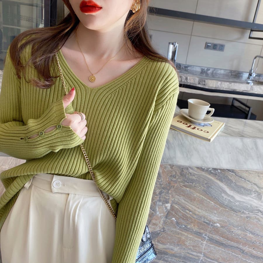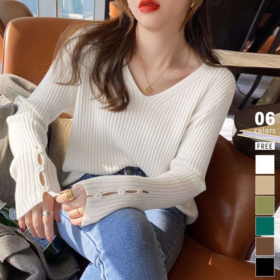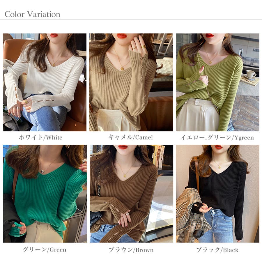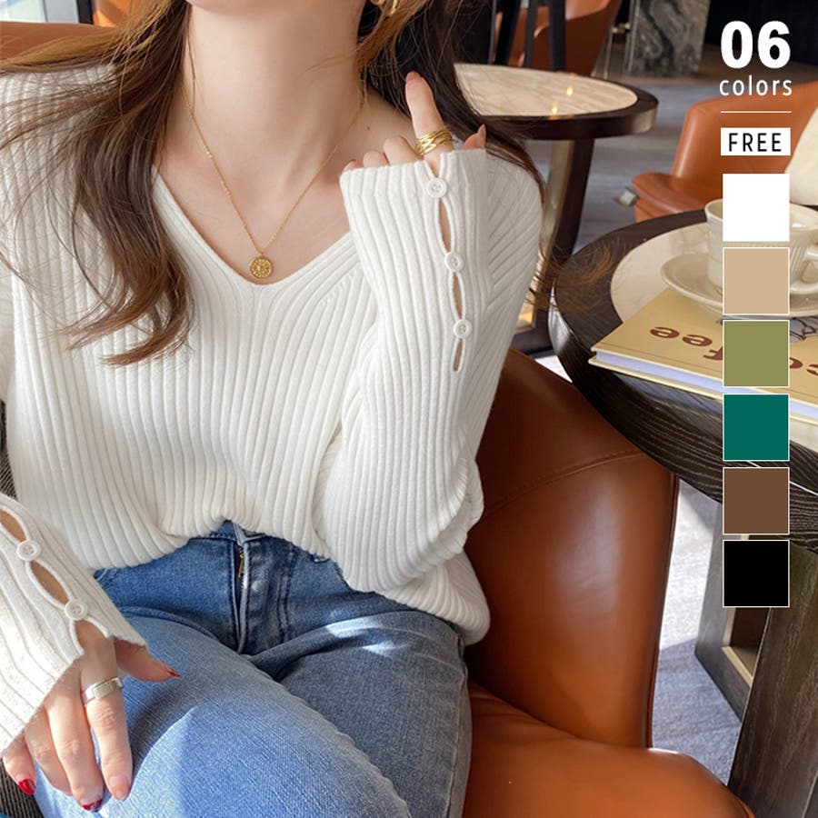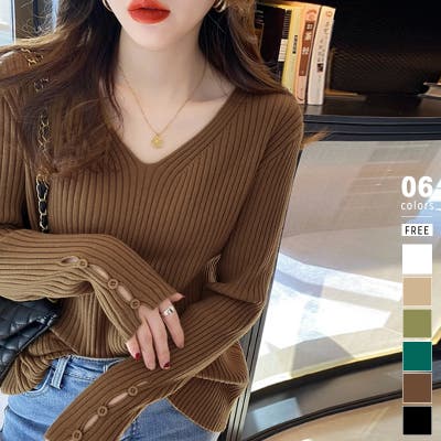 ニット セーター レディース 長袖 トップス ニットトップス ニットセーター ニットレディース リブ リブニット ゆったり プルオーバー シンプル 無地 ベーシック スタンダード 定番 tops vネック v ボタン 袖 細見え 華奢見え 着回し 伸縮性 ストレッチ フィット チクチクしない チクチクしにくい ちくちくしにくい やわらかい やわらか ソフトな肌触り ソフト 暖かい あたたかい あったか オフィス オフィスカジュアル オフィスコーデ オフィススタイル フェミニン カジュアル 上品 きれい きれいめ キレイめ 大人 オトナ かわいい 可愛い 大人可愛い オトナ女子 おしゃれ オシャレ 通勤 通学 会社 職場 仕事着 仕事 ビジネス 女性 母 ママ ママコーデ プチプラ 高見え フリーサイズ トレンド ヒット 商品 おすすめ 服 ファッション ホワイト 白 キャメル グリーン 緑 ブラウン 茶色 ブラック 黒 くすみ カラー くすみカラー 秋色 新作 2023aw 2023AW 23年 2023 秋冬新作 秋冬 春 秋 冬 春服 秋服 冬服 韓国 韓国ファッション 10代 20代 30代 40代 50代 60代 cocomomo ココモモ
