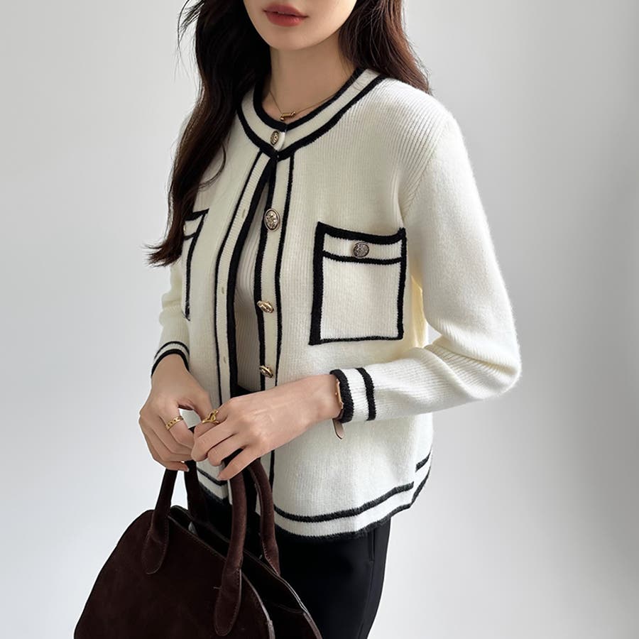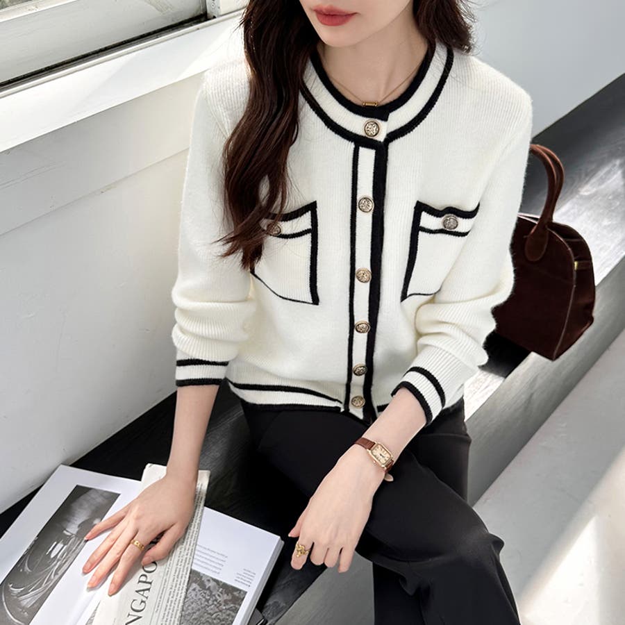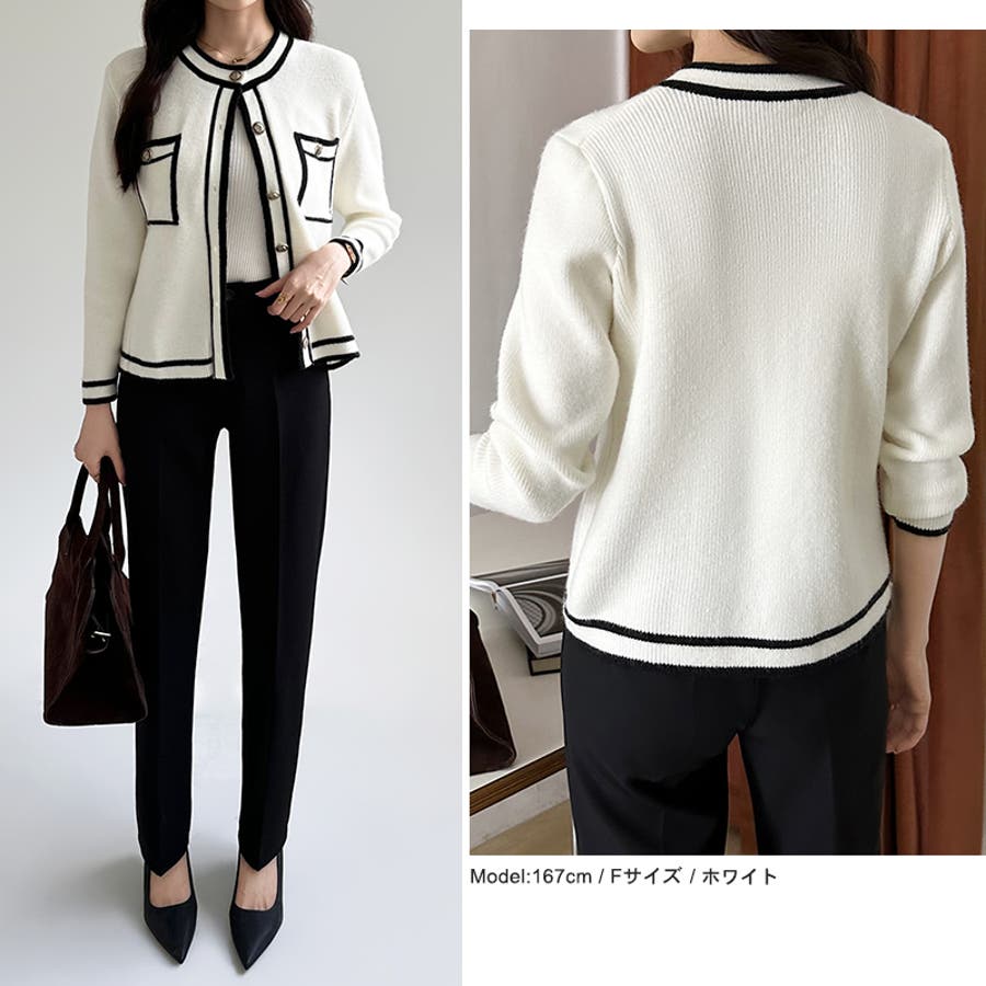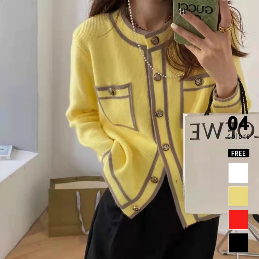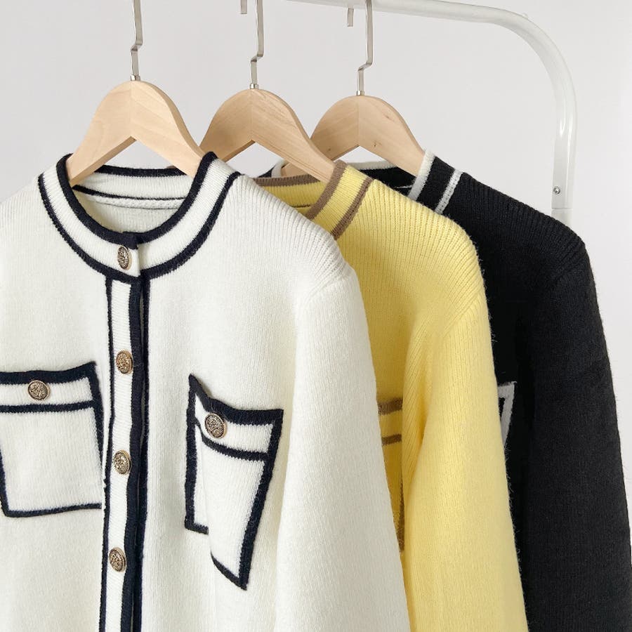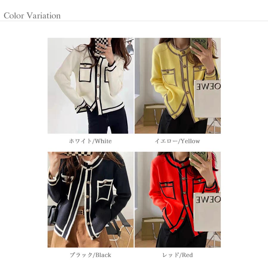 カーディガン レディース ニットカーディガン 配色 配色ニット バイカラー パイピング パイピングニット クロップド クロップド丈 ボタン カーデ 長袖 アウター 羽織り 羽織 羽織もの 上着 ニットカーデ ゆったり 伸縮性 ストレッチ 前開き ニットレディース ノーカラー クルーネック ラウンドネック アクリル 柔らかい やわらかい やわらか ヤク風 チクチクしない ちくちくしない チクチクしにくい ふんわり もちもち 伸縮性 ストレッチ 着回し 重ね着 重ね レイヤード お出かけ おでかけ 旅行 オフィス オフィスカジュアル オフィスカジュアル秋冬 シック レトロ カジュアル フェミニン ガーリー エレガント きれいめ キレイめ きれい 大人 かわいい 可愛い 大人可愛い オトナ女子 おしゃれ オシャレ プチプラ 高見え おすすめ トレンド ママ ママコーデ 母 フリーサイズ ホワイト 白 イエロー 黄色 黄 ブラック 黒 新作 2023aw 2023 2023新作 春物 秋物 春秋 秋冬 春 秋 冬 春服 秋服 冬服 韓国 韓国ファッション 10代 20代 30代 40代 50代 cocomomo ココモモ