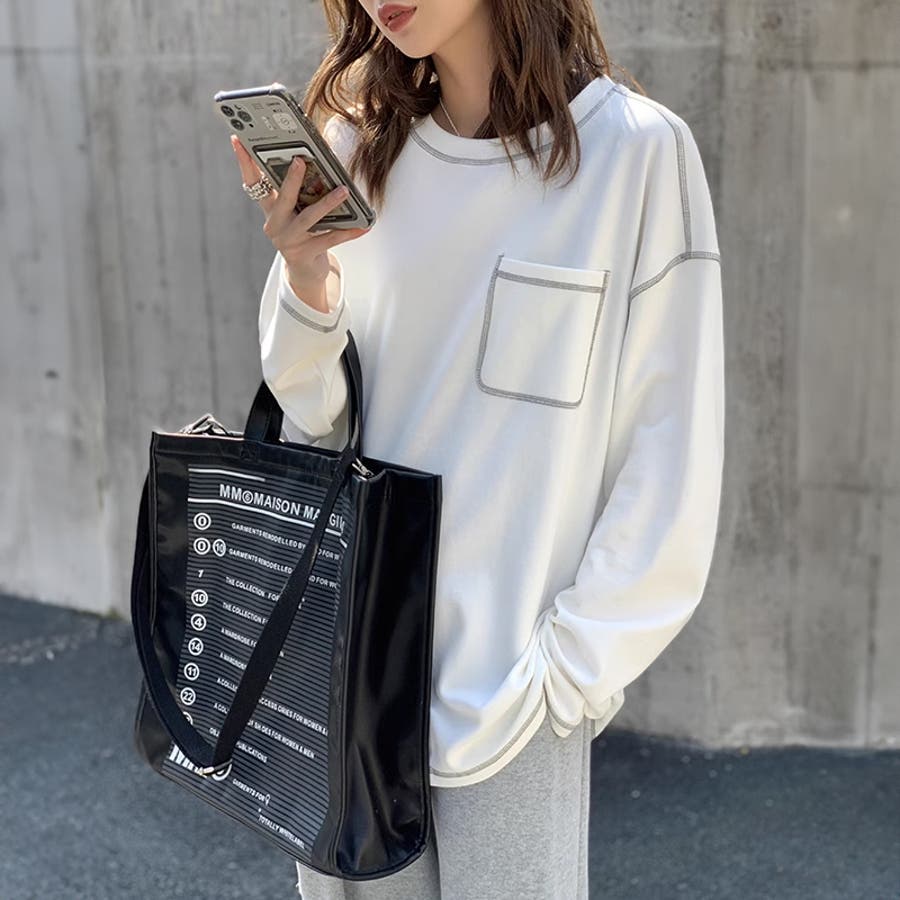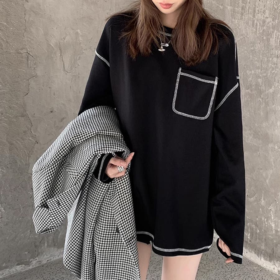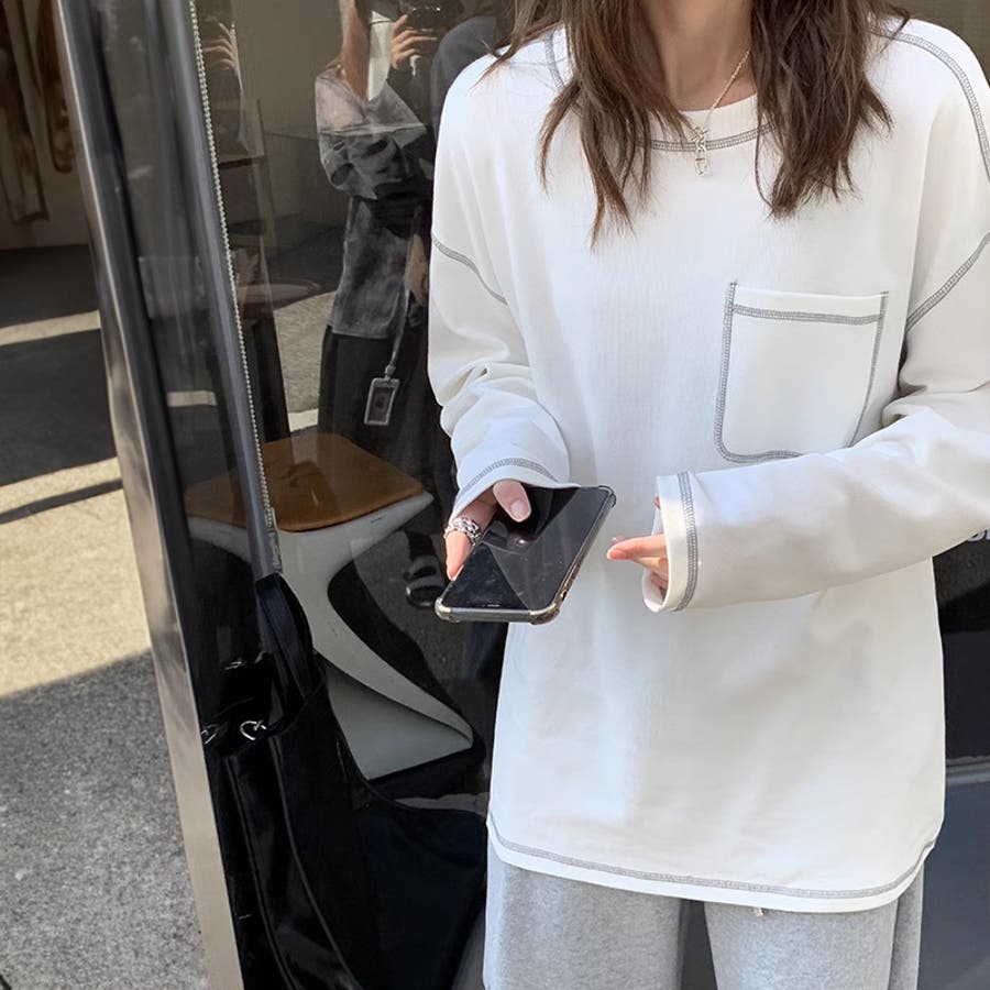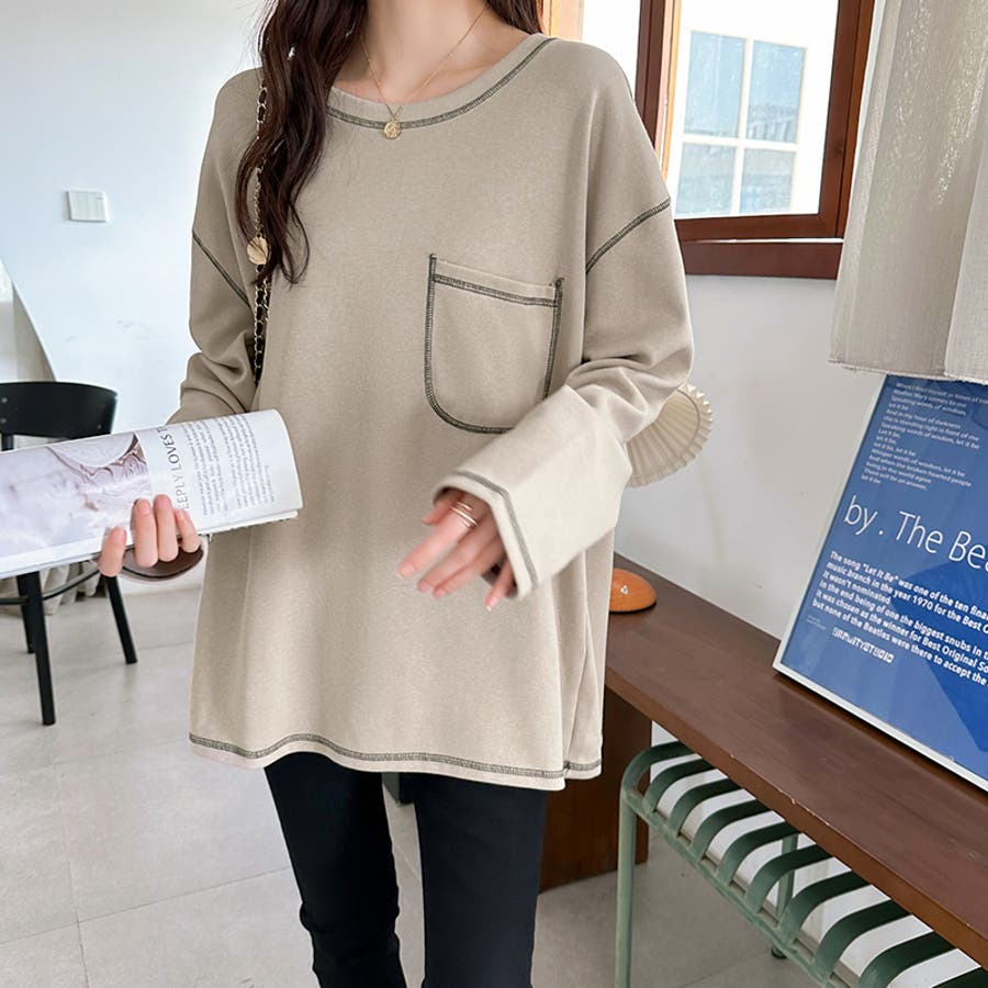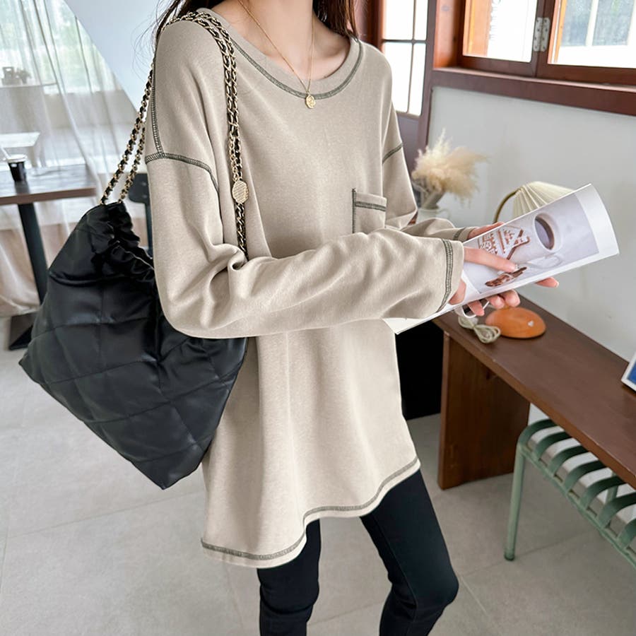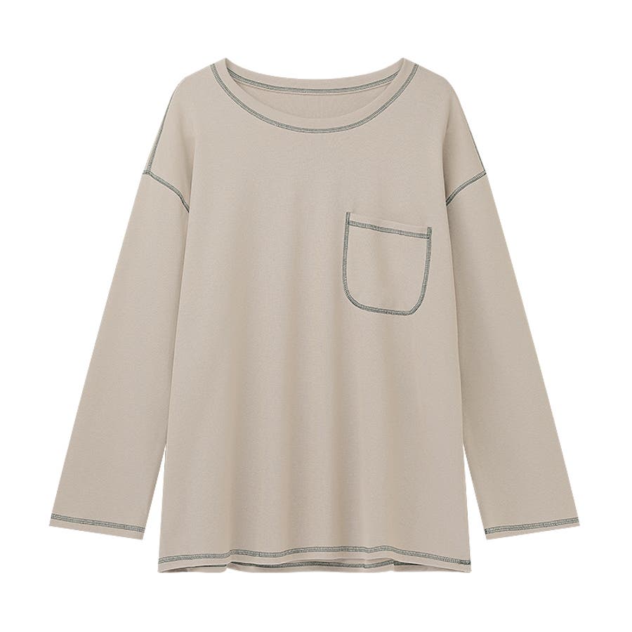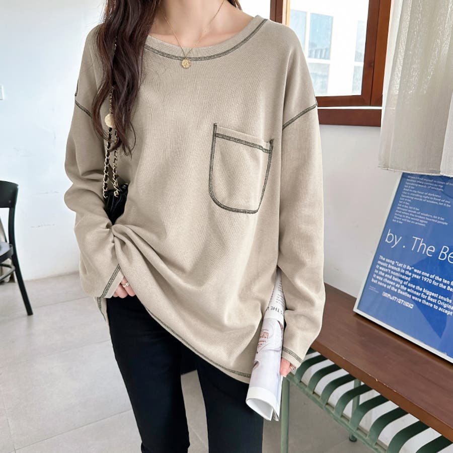 カットソー ロンt レディース 配色ステッチ 長袖 tシャツ 長袖tシャツ トップス 配色 ステッチ 切り替え ロンティー ろんt ロングtシャツ ロング ロング丈 ロングスリーブ ロンT ゆったり 大きめ 大きい 大きいサイズ 体型カバー オーバーサイズ クルーネック ラウンドネック 丸首 丸襟 1枚で決まる 綿 コットン ポリエステル 細見え ドロップショルダー ビッグシルエット ボリューム ボリューム袖 ボリュームスリーブ プルオーバー tops ラフ ゆる カジュアル 大人 かわいい 可愛い 大人可愛い おしゃれ オシャレ プチプラ トレンド ヒット 商品 おすすめ 服 ファッション フリーサイズ ホワイト 白 ライトブラウン ダークブラウン 茶色 ブラック 黒 新作 2023AW 2023 2023新作 春物 秋物 冬物 秋冬 春 秋 冬 春服 秋服 冬服 韓国 韓国ファッション 10代 20代 30代 40代 50代 cocomomo ココモモ