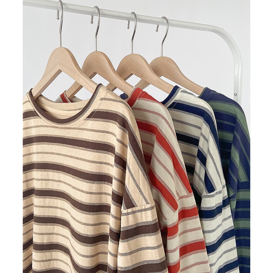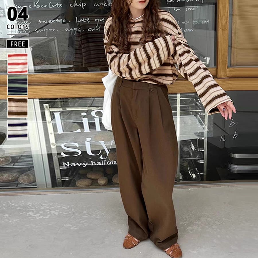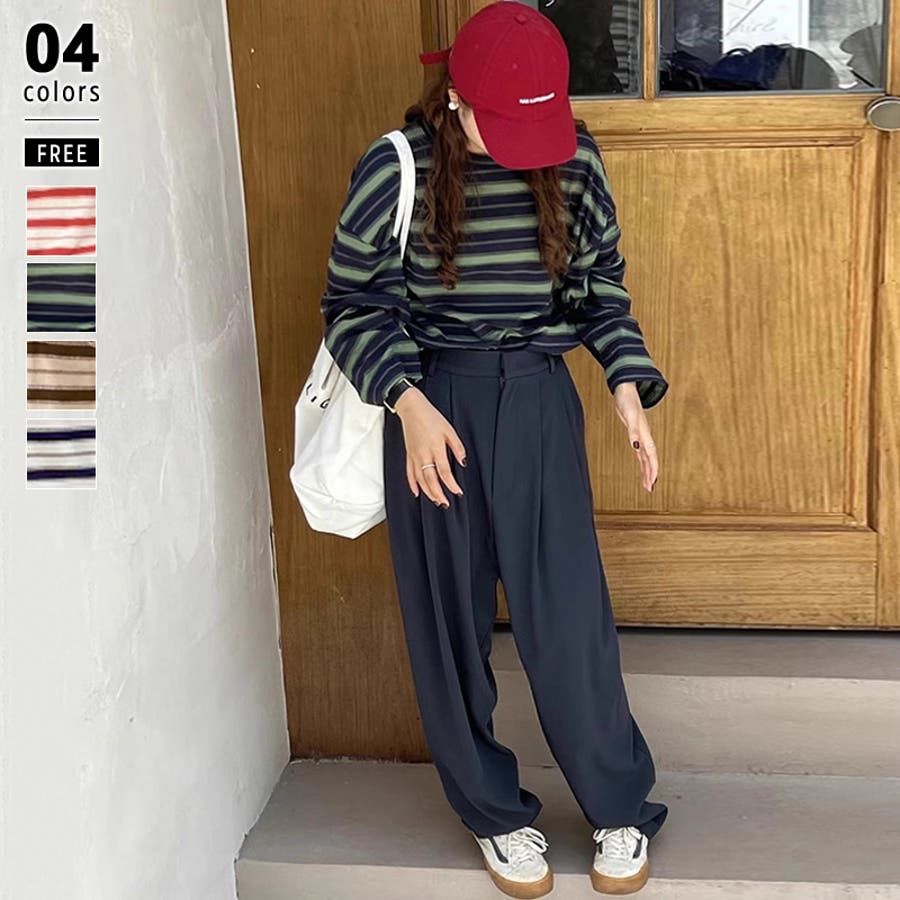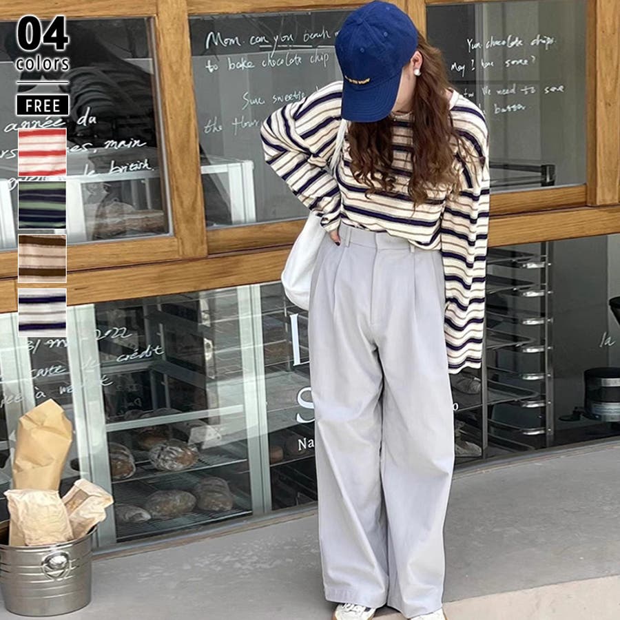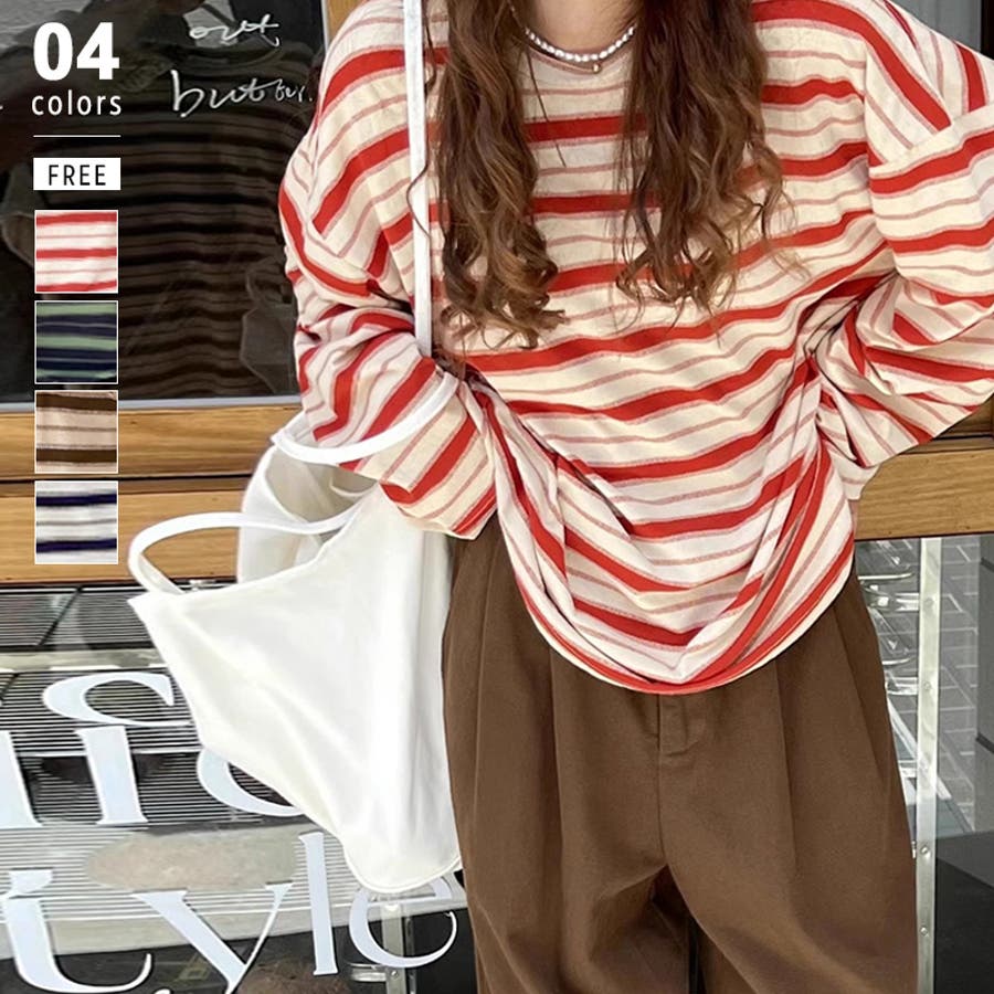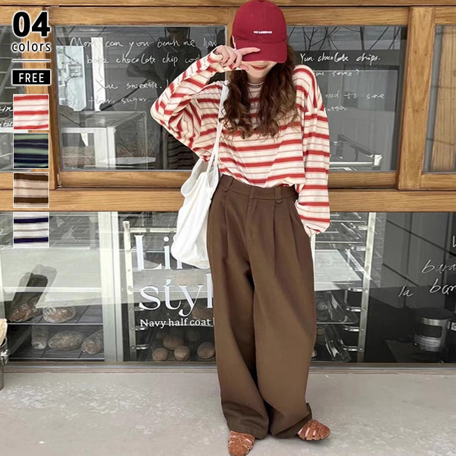 ボーダー カットソー ロンt 長袖 レディース tシャツ 長袖tシャツ トップス ボーダー柄 マルチボーダー マルチボーダーtシャツ ボーダーtシャツ ロンティー ろんt ロングtシャツ ロング ロング丈 ロングスリーブ ゆったり 大きめ 大きいサイズ 体型カバー オーバーサイズ クルーネック ラウンドネック 丸首 丸襟 ドロップショルダー ドルマンスリーブ ビッグシルエット プルオーバー 配色 tops ラフ ゆる カジュアル 大人 かわいい 可愛い 大人可愛い おしゃれ オシャレ プチプラ トレンド ヒット 商品 おすすめ 服 ファッション レッド 赤 グリーン 緑 ネイビー 紺 ブラウン 茶色 フリーサイズ 新作 2023AW 2023 2023新作 春物 秋物 冬物 秋冬 春 秋 冬 春服 秋服 冬服 韓国 韓国ファッション 10代 20代 30代 40代 50代 cocomomo ココモモ