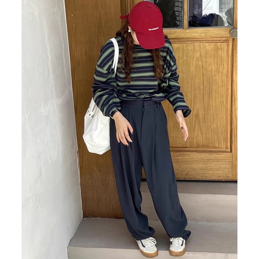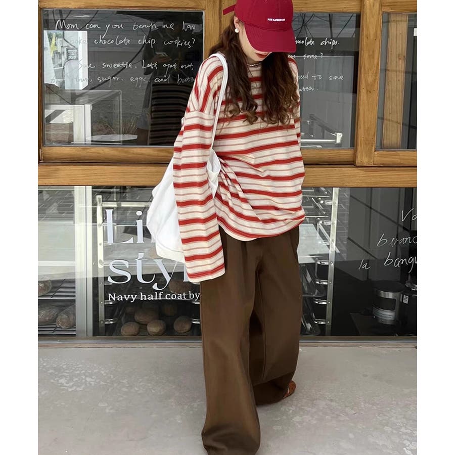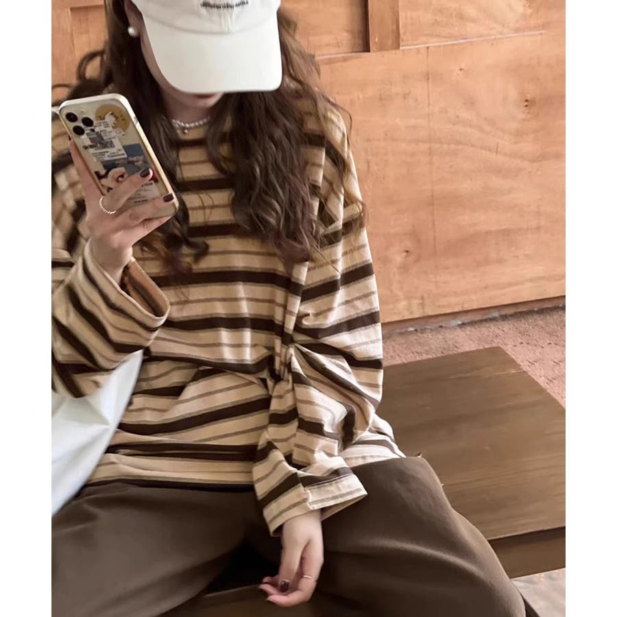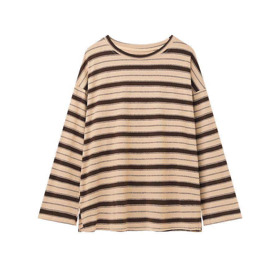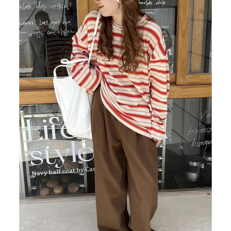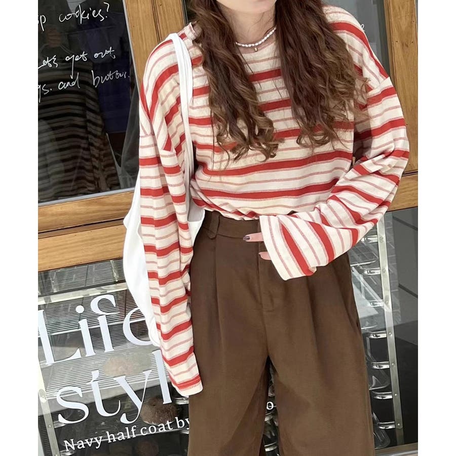 ボーダー カットソー ロンt 長袖 レディース tシャツ 長袖tシャツ トップス ボーダー柄 マルチボーダー マルチボーダーtシャツ ボーダーtシャツ ロンティー ろんt ロングtシャツ ロング ロング丈 ロングスリーブ ゆったり 大きめ 大きいサイズ 体型カバー オーバーサイズ クルーネック ラウンドネック 丸首 丸襟 ドロップショルダー ドルマンスリーブ ビッグシルエット プルオーバー 配色 tops ラフ ゆる カジュアル 大人 かわいい 可愛い 大人可愛い おしゃれ オシャレ プチプラ トレンド ヒット 商品 おすすめ 服 ファッション レッド 赤 グリーン 緑 ネイビー 紺 ブラウン 茶色 フリーサイズ 新作 2023AW 2023 2023新作 春物 秋物 冬物 秋冬 春 秋 冬 春服 秋服 冬服 韓国 韓国ファッション 10代 20代 30代 40代 50代 cocomomo ココモモ