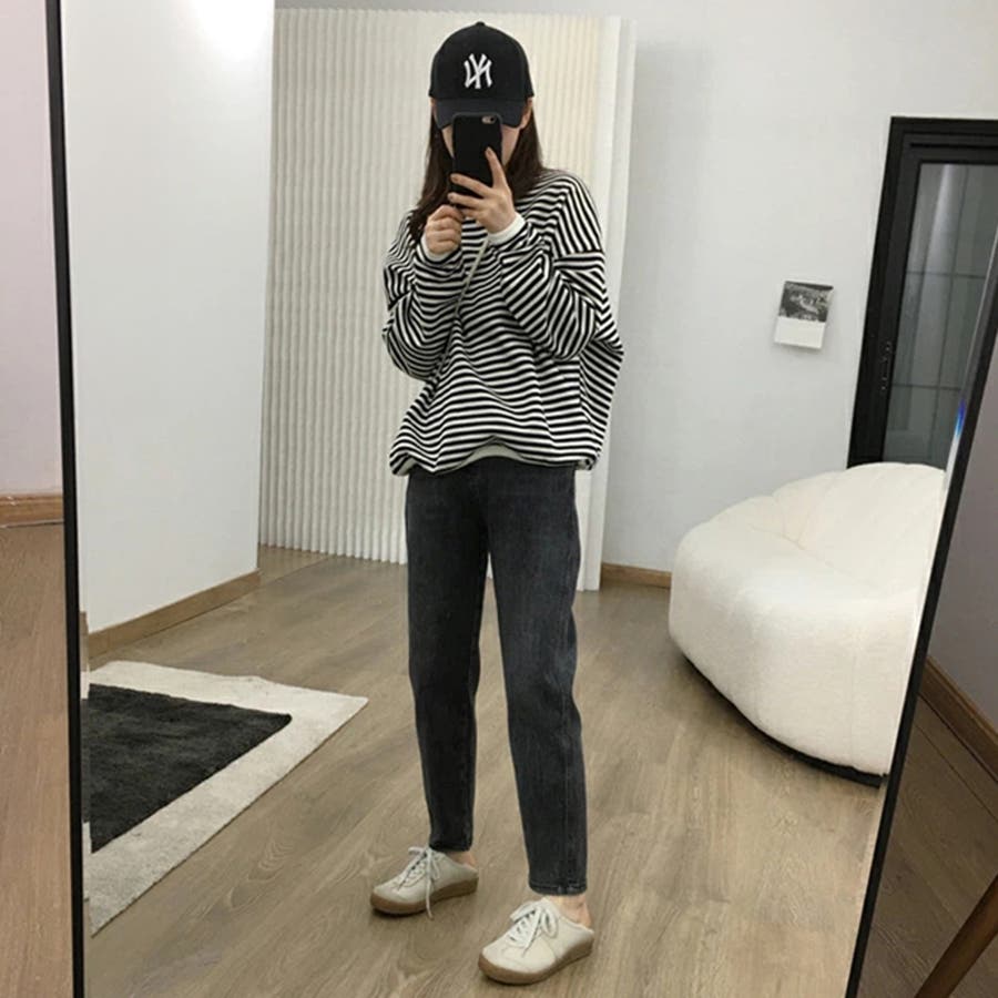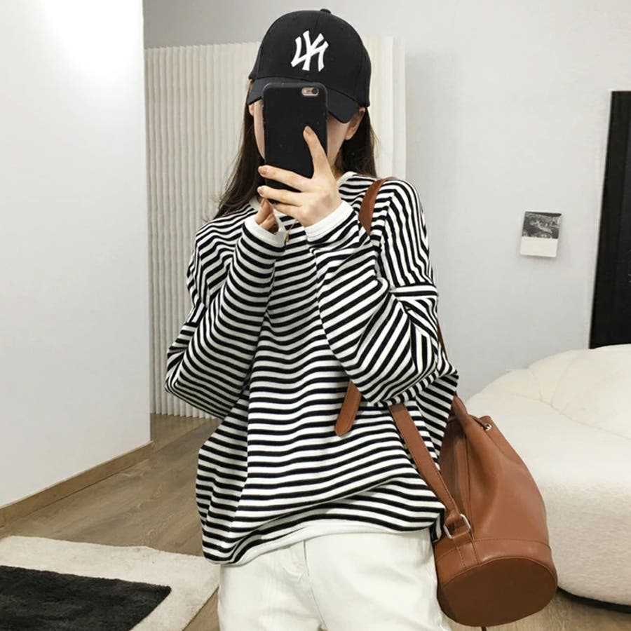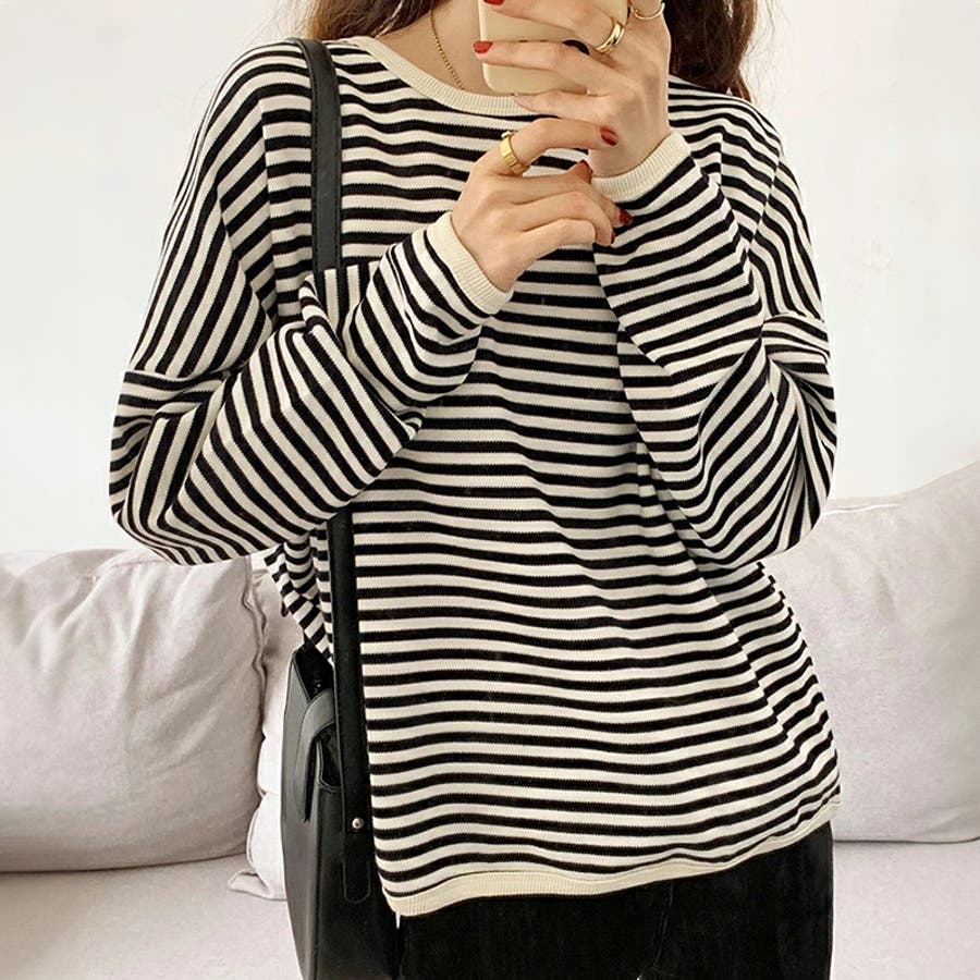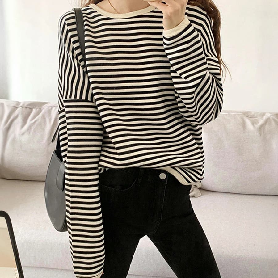 Tシャツよりは厚手で薄手のトレーナーのような感じです。襟ぐりと袖口は伸びませんが、ゆったり目で、着心地が良いし、ボーダーのピッチが最高です。さん (40代 / 女性 / 身長155~160cm / 体重60~64kg)購入アイテム:カラー ブラックサイズ Lいつものトップスサイズ:Lサイズ感:ぴったり - いまの時期ボーダー最高