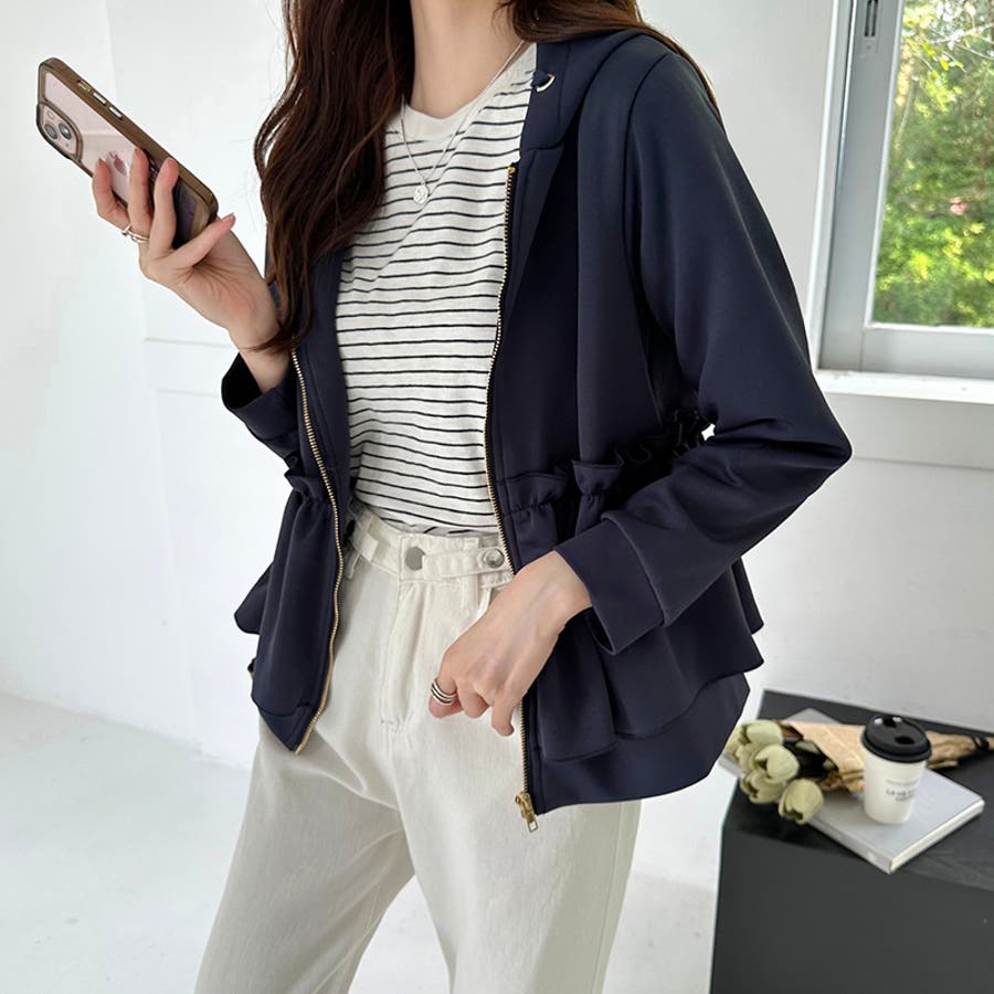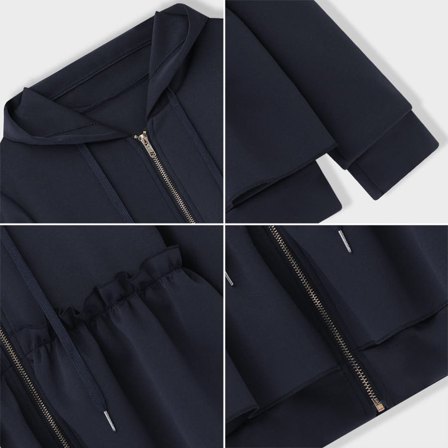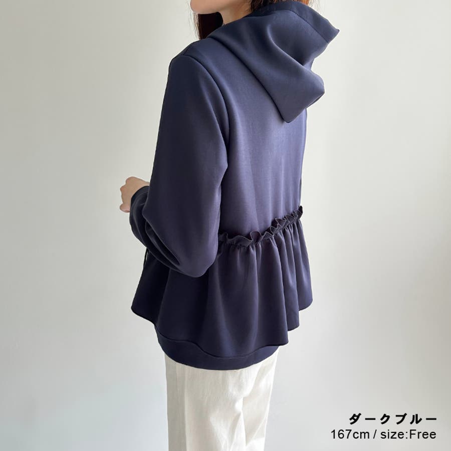 フリルパーカー レディース パーカー フリル ティアード 長袖 アウター ペプラム トップス 切り替え ウエストフリル バックフリル フーディー フード フード付き フード付きパーカー ジップ ジップアップ ファスナー ノーカラー ギャザー プリーツ スプリング ライトアウター aライン ふんわり 前あき 前開き ミドル丈 ブルゾン ブルゾンレディース 羽織り 羽織 羽織もの 上着 暖かい あたたかい ゆったり 伸縮性 ストレッチ 無地 綿 コットン ポリエステル スウェット 生地 紐 柔らかい やわらかい やわらか 着回し お出かけ おでかけ 旅行 オフィス オフィスカジュアル カジュアル フェミニン ガーリー 華やか 大人 かわいい 可愛い 大人可愛い きれいめ キレイめ きれい め おしゃれ オシャレ プチプラ 高見え おすすめ トレンド ヒット 商品 おすすめ 服 女性 ファッション ママ ママコーデ 母 フリーサイズ ダークブルー 紺 ブラック 黒 新作 2023aw 2023 2023新作 春物 秋物 春秋 秋冬 春 秋 冬 春服 秋服 冬服 韓国 韓国ファッション 10代 20代 30代 40代 50代 cocomomo ココモモ