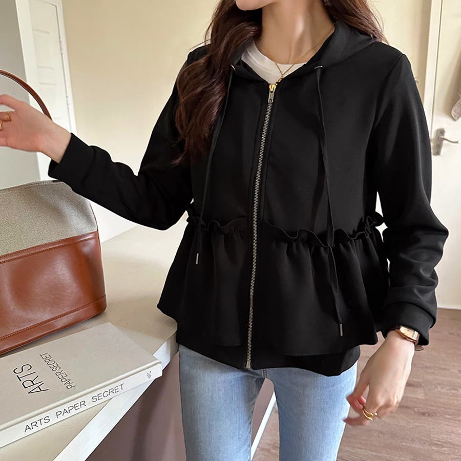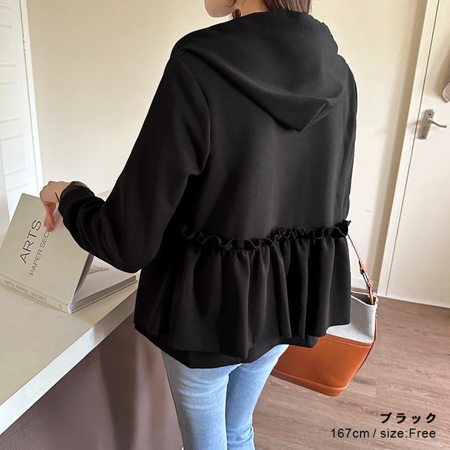 フリルパーカー ペプラムフリル フード付きパーカー