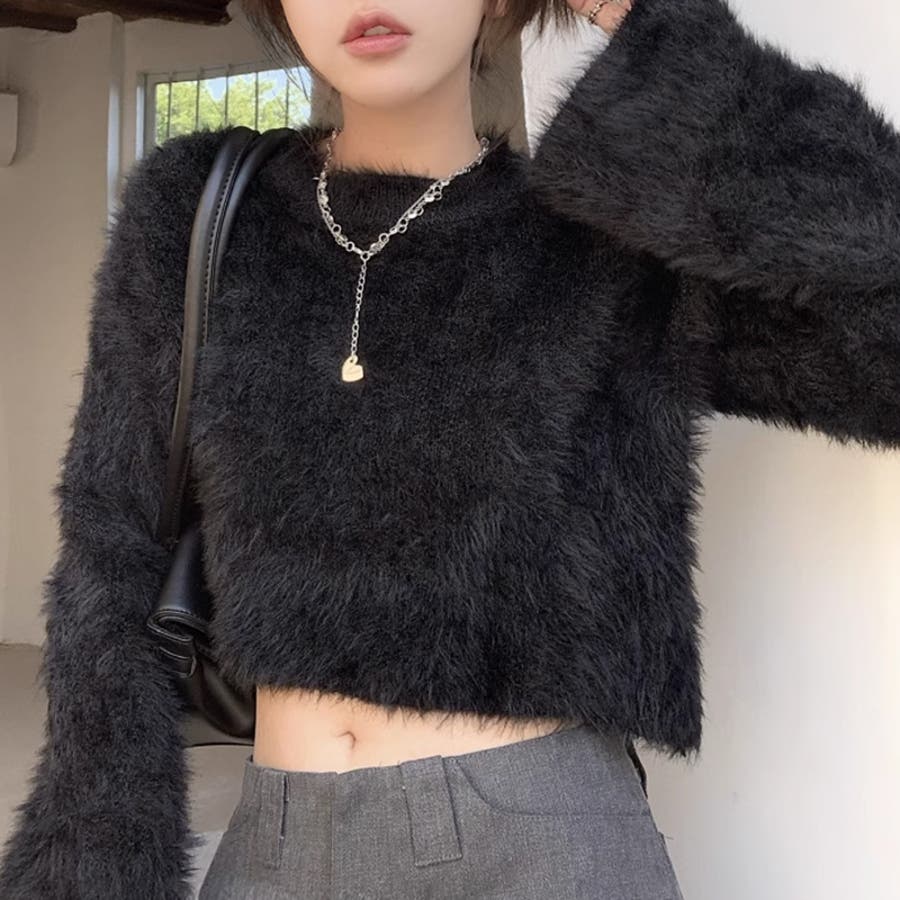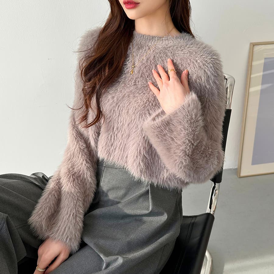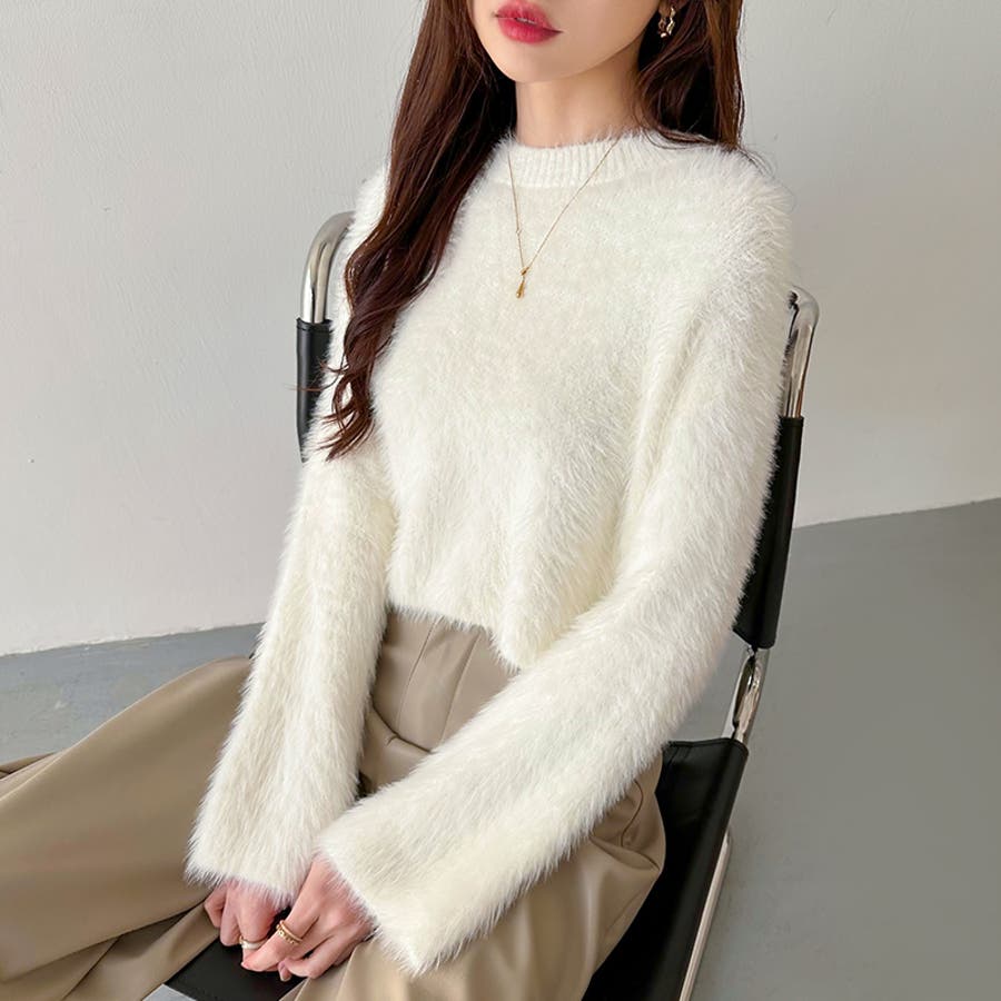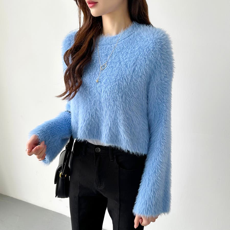 シャギーニット ショート丈トップス ふわふわニット