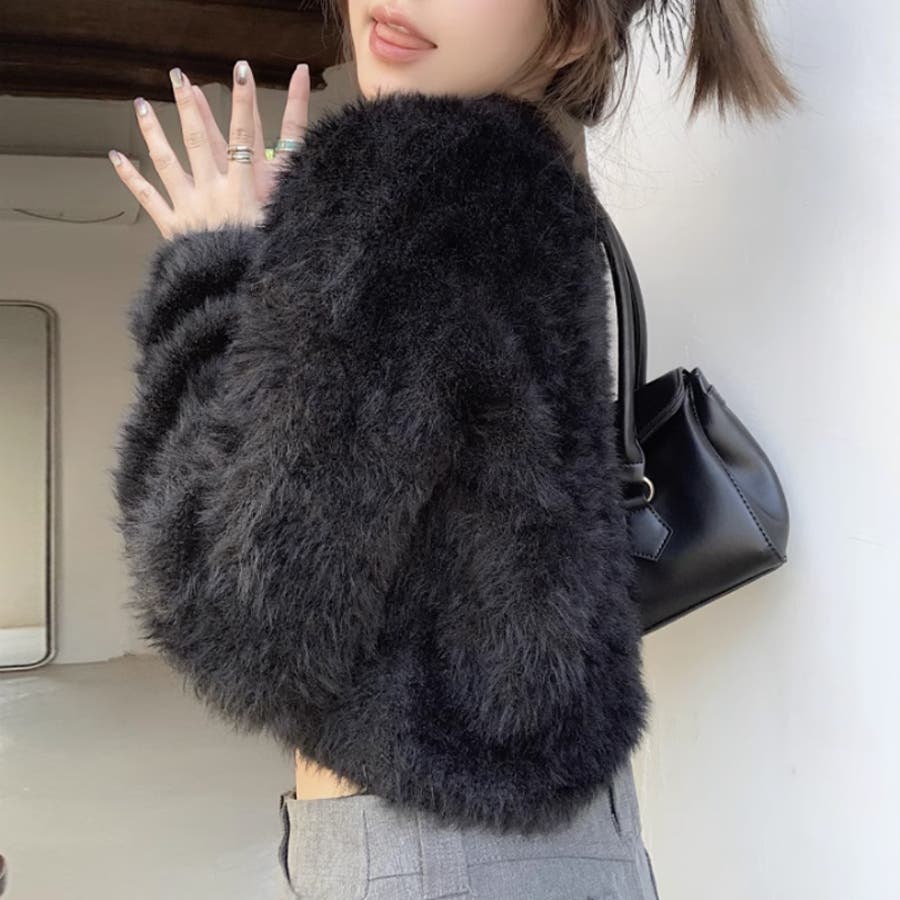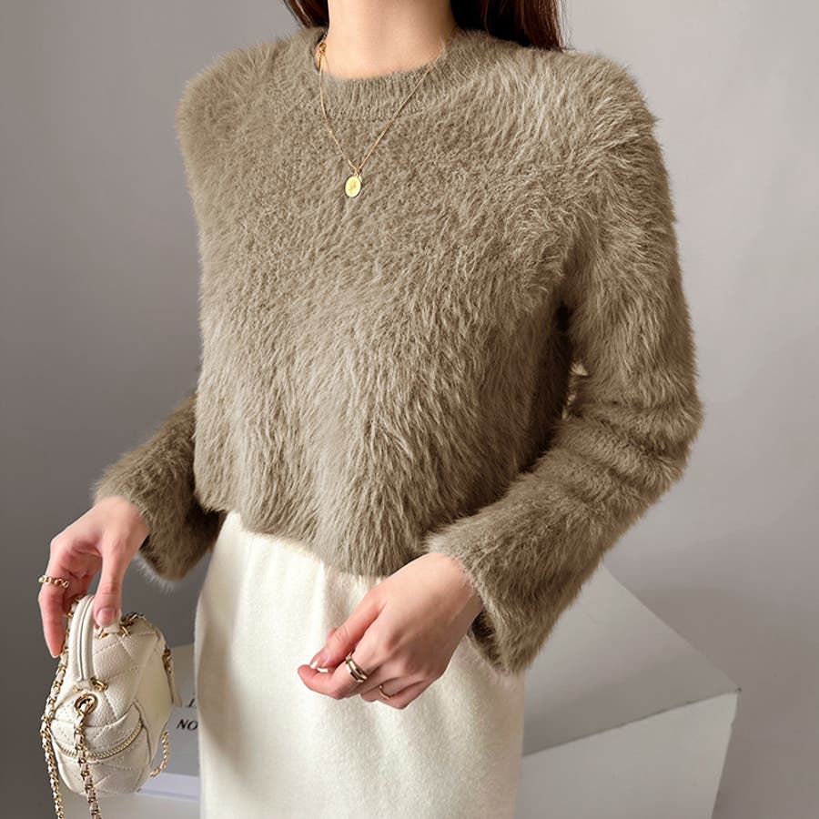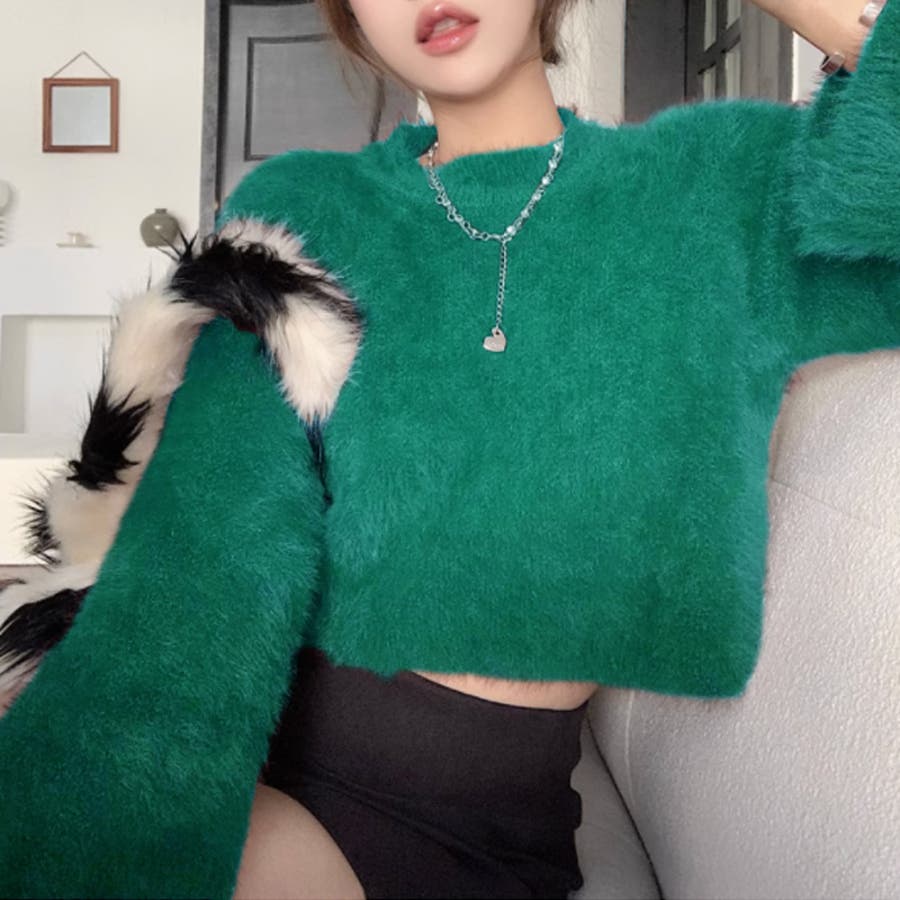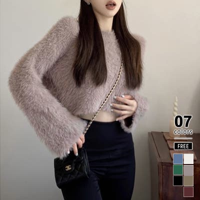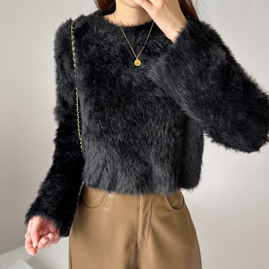 シャギーニット ショート丈トップス ふわふわニット