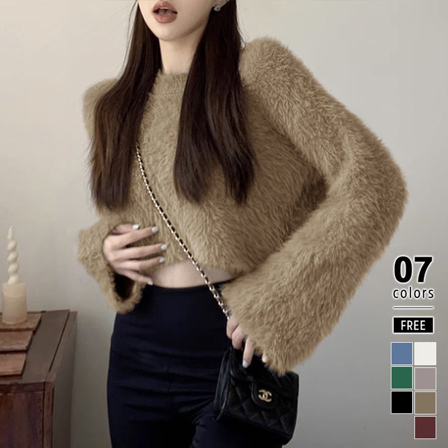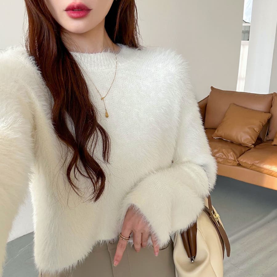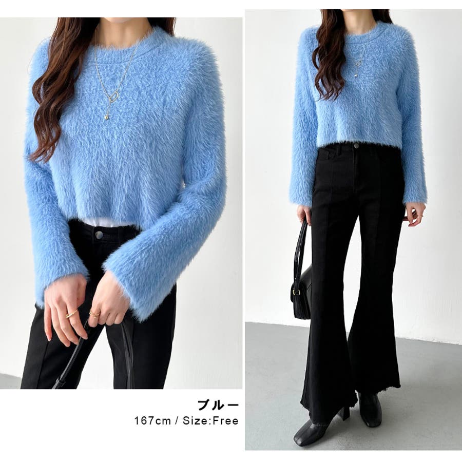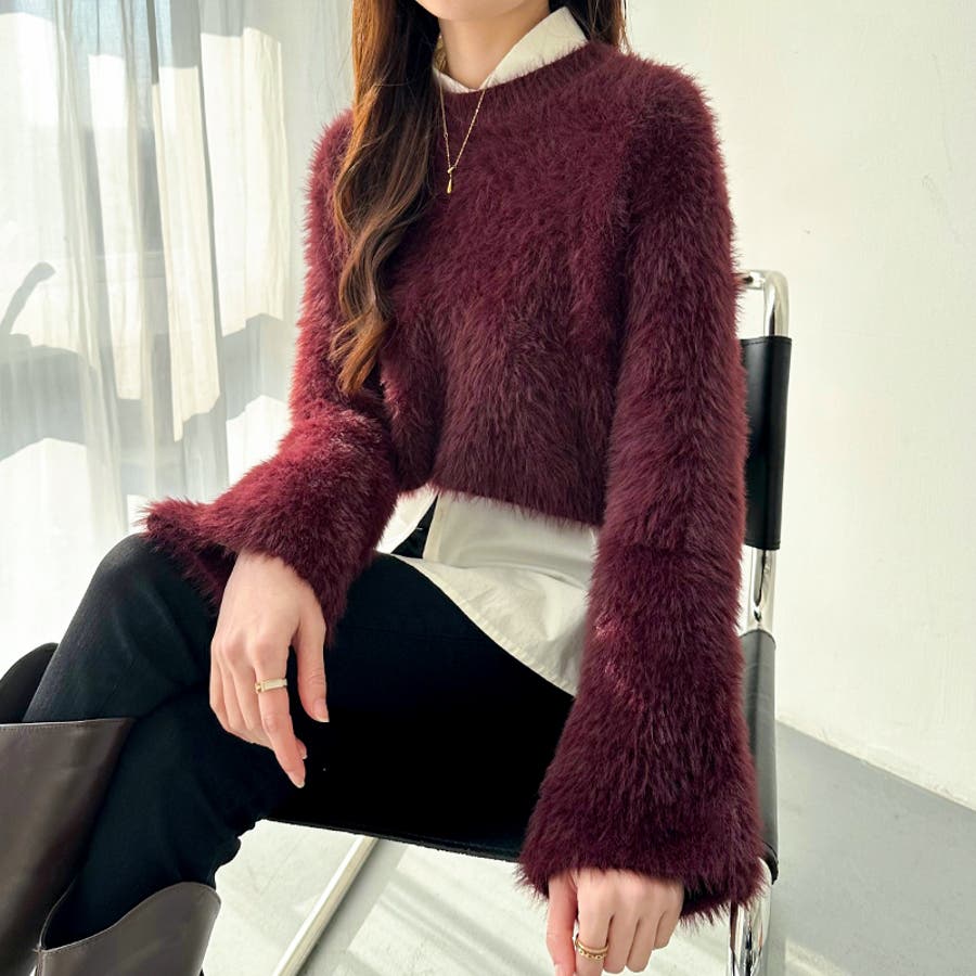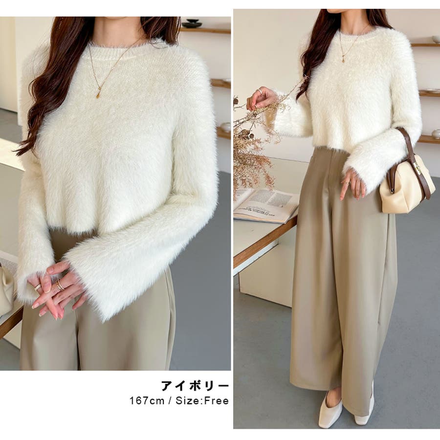 ニット シャギーニット レディース ショート丈 トップス 長袖 セーター シャギー ファー ニットトップス ニットセーター ショート クロップド クロップド丈 ニットレディース クルーネック プルオーバー シンプル 無地 モヘア モヘア調 モヘアタッチ tops 袖 細見え 華奢見え 着回し 伸縮性 ストレッチ 袖 長め フレア フレアスリーブ ロングスリーブ ヘソ見え 起毛 アクリル ふわふわ ふわもこ もこもこ 柔らかい やわらかい やわらか なめらか ふんわり もちもち チクチクしない チクチクしにくい ヤク風 ヤク風ニット 暖かい あたたかい あったか 韓国風 フェミニン ガーリー カジュアル 大人 オトナ かわいい 可愛い おしゃれ オシャレ プチプラ 高見え フリーサイズ トレンド ヒット 商品 おすすめ 服 ファッション アイボリー 白 グレー 灰色 ワインレッド 赤 ブラック 黒 くすみ カラー くすみカラー 秋色 新作 2023aw 2023AW 23年 2023 秋冬新作 秋冬 春 秋 冬 春服 秋服 冬服 韓国 韓国ファッション 10代 20代 30代 40代 50代 60代 cocomomo ココモモ