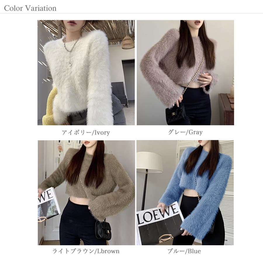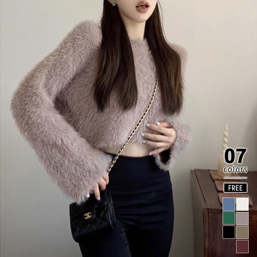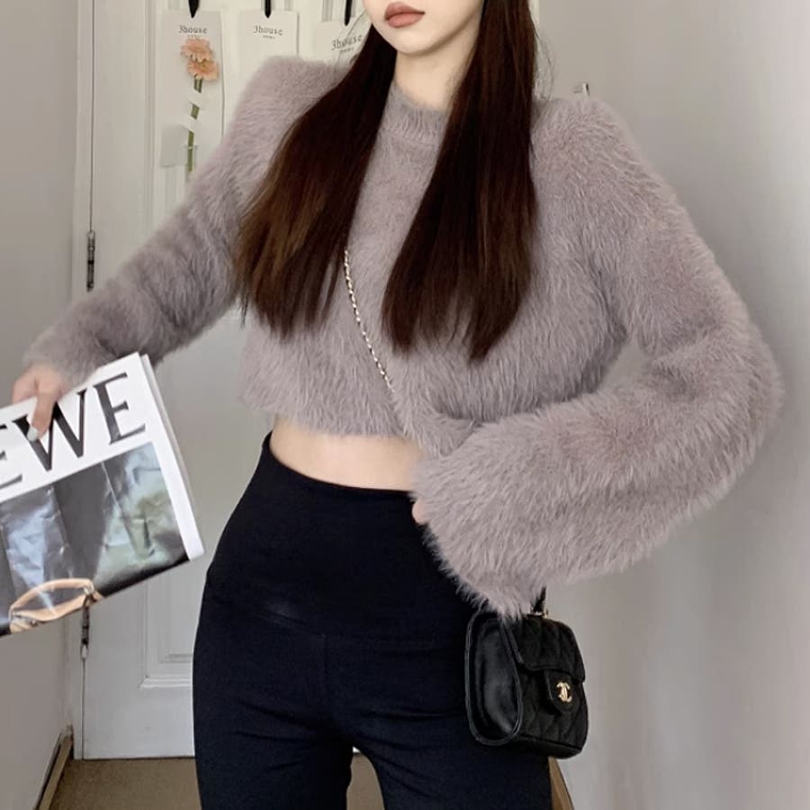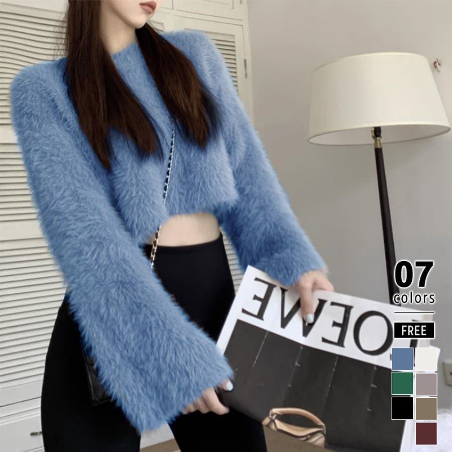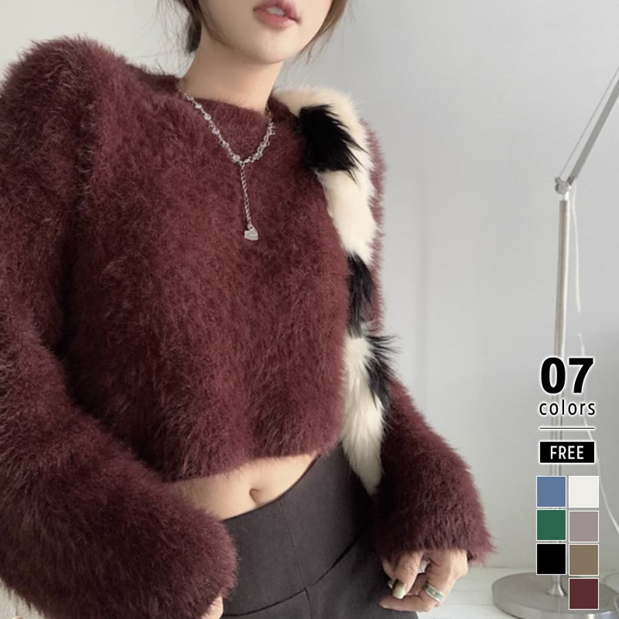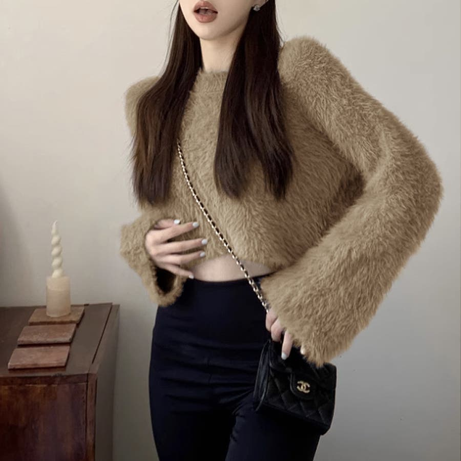 ニット シャギーニット レディース ショート丈 トップス 長袖 セーター シャギー ファー ニットトップス ニットセーター ショート クロップド クロップド丈 ニットレディース クルーネック プルオーバー シンプル 無地 モヘア モヘア調 モヘアタッチ tops 袖 細見え 華奢見え 着回し 伸縮性 ストレッチ 袖 長め フレア フレアスリーブ ロングスリーブ ヘソ見え 起毛 アクリル ふわふわ ふわもこ もこもこ 柔らかい やわらかい やわらか なめらか ふんわり もちもち チクチクしない チクチクしにくい ヤク風 ヤク風ニット 暖かい あたたかい あったか 韓国風 フェミニン ガーリー カジュアル 大人 オトナ かわいい 可愛い おしゃれ オシャレ プチプラ 高見え フリーサイズ トレンド ヒット 商品 おすすめ 服 ファッション アイボリー 白 グレー 灰色 ワインレッド 赤 ブラック 黒 くすみ カラー くすみカラー 秋色 新作 2023aw 2023AW 23年 2023 秋冬新作 秋冬 春 秋 冬 春服 秋服 冬服 韓国 韓国ファッション 10代 20代 30代 40代 50代 60代 cocomomo ココモモ