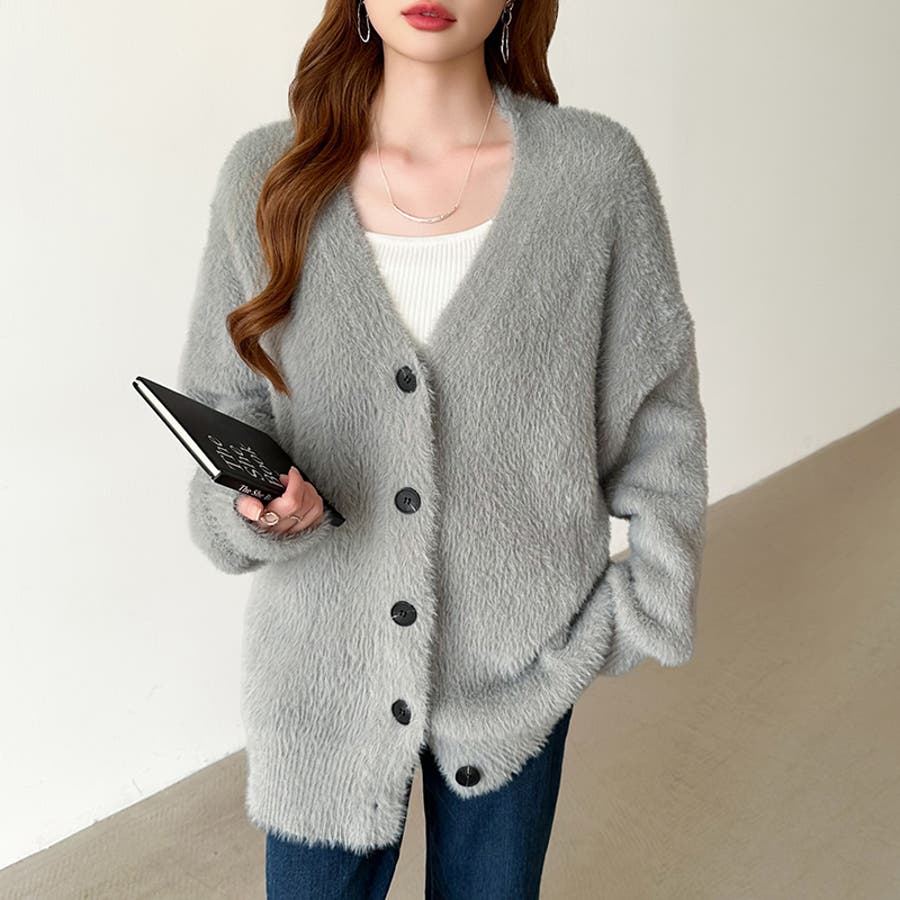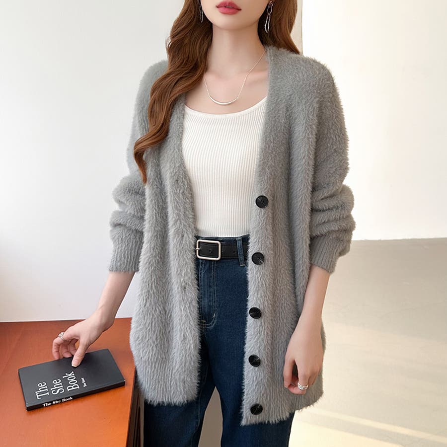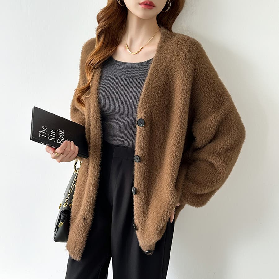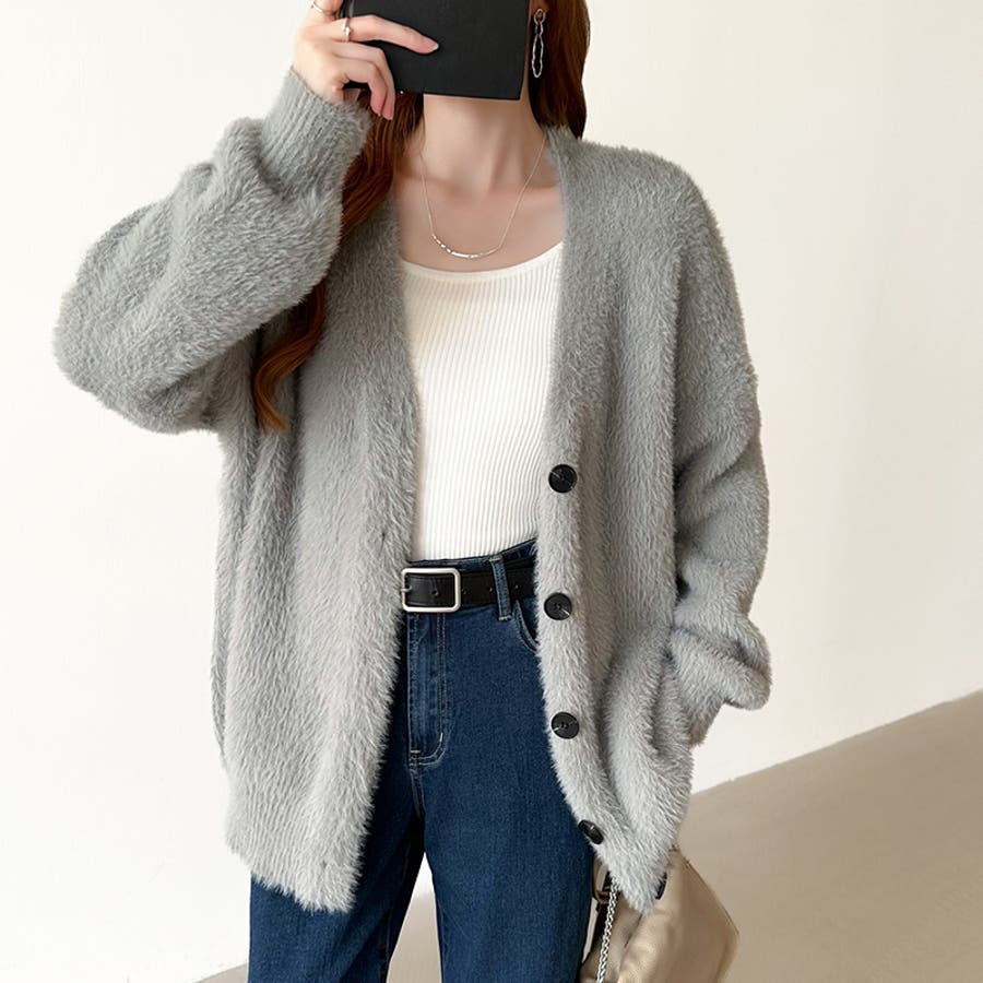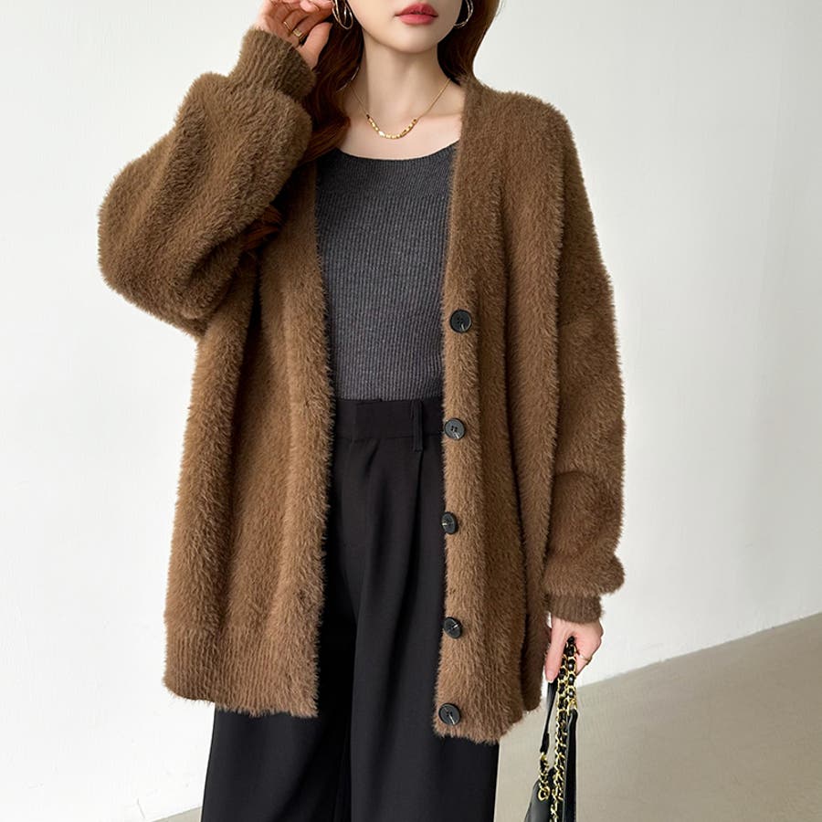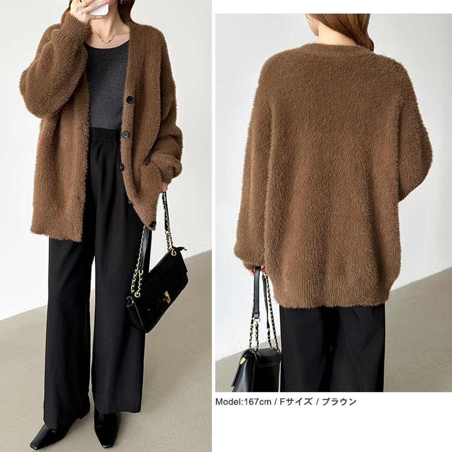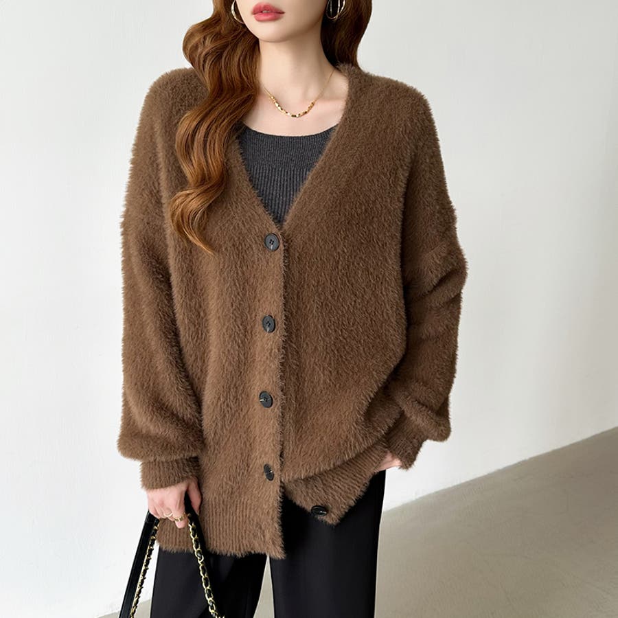 ふわふわシャギーカーディガン カーディガン シャギーニット