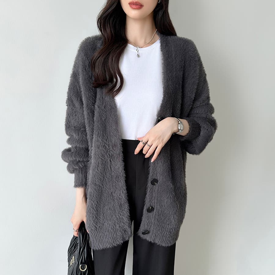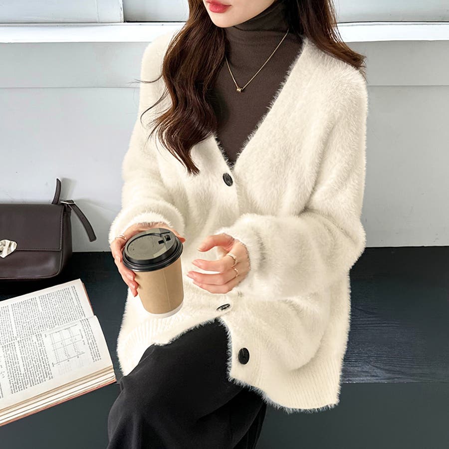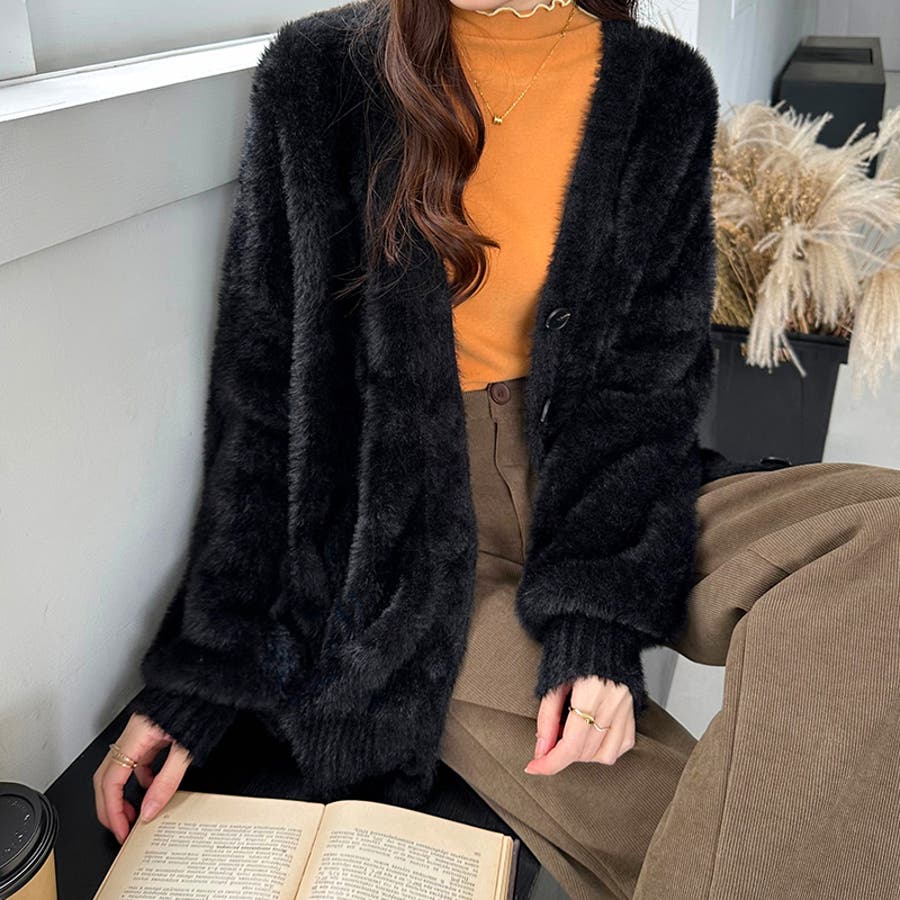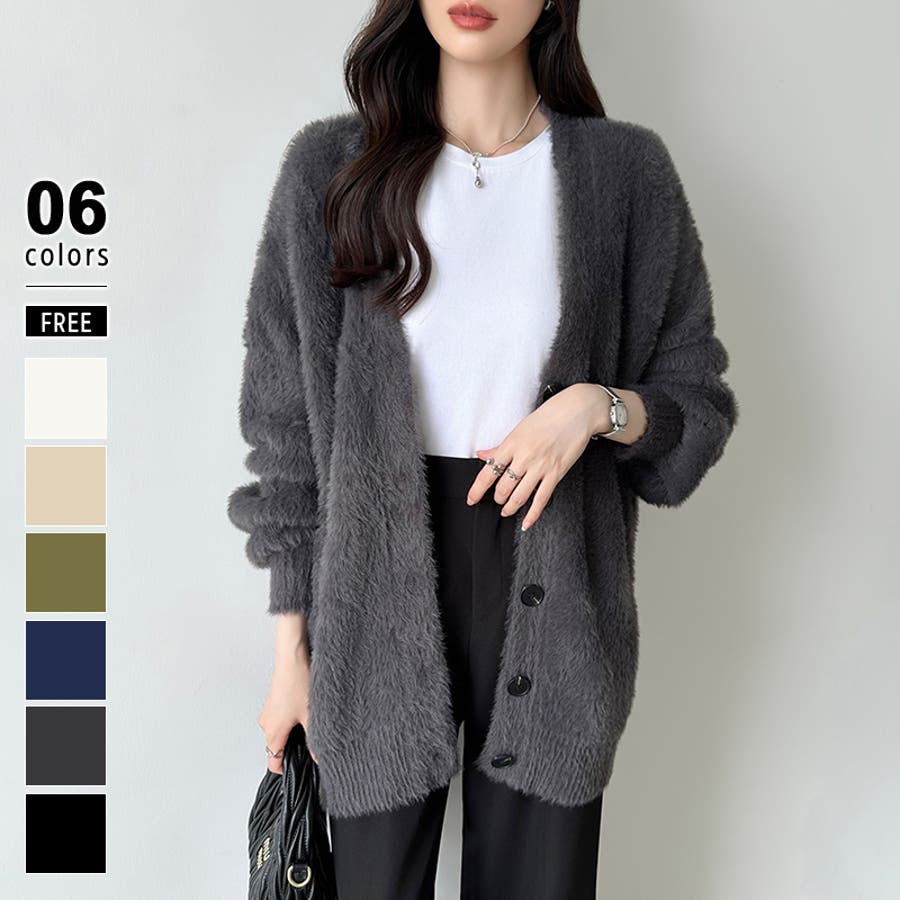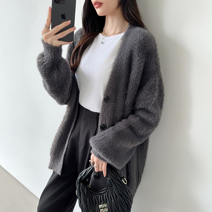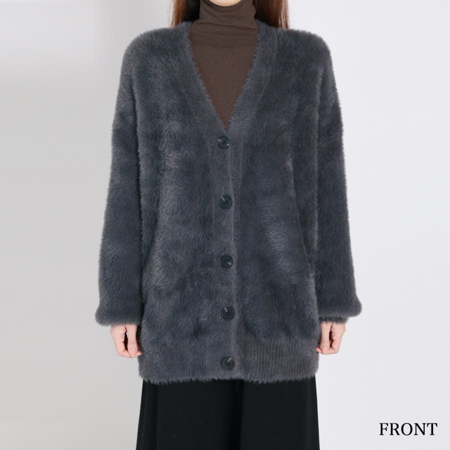 【ダークグレー】シャギーニットカーディガン カーディガン ふんわりニット