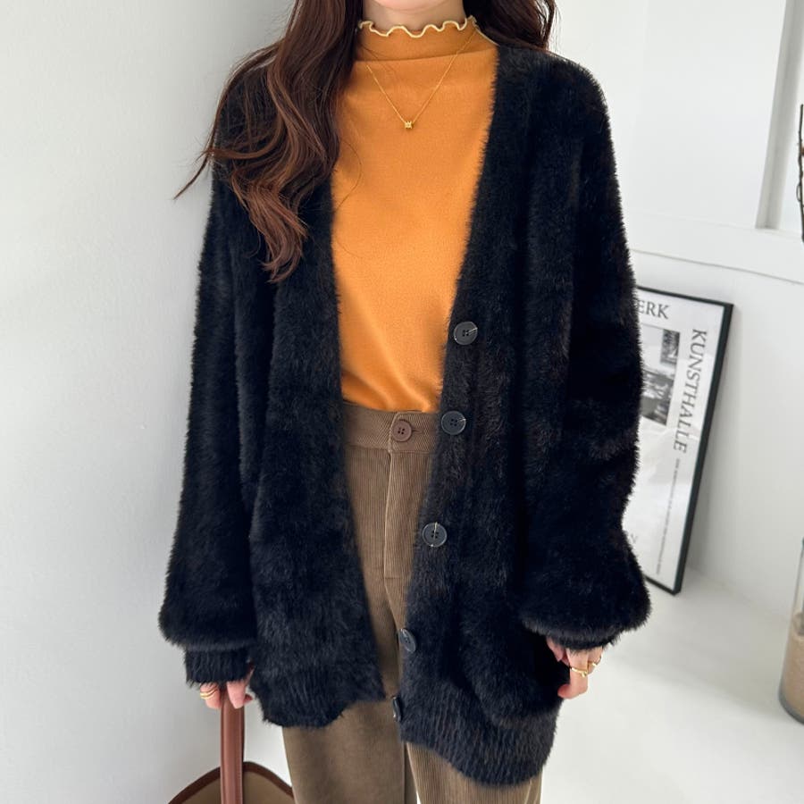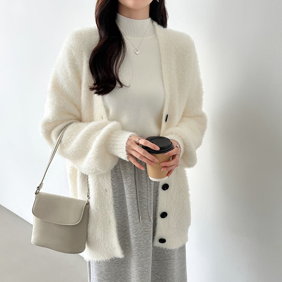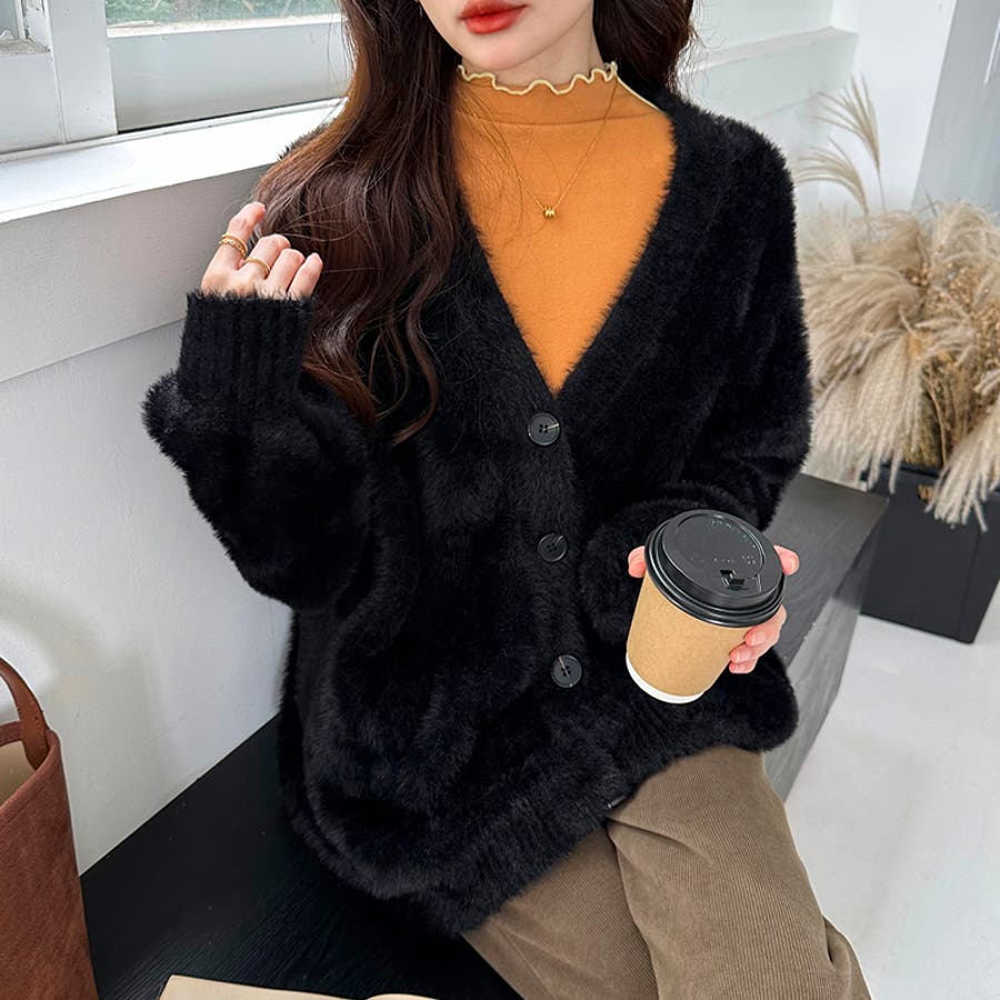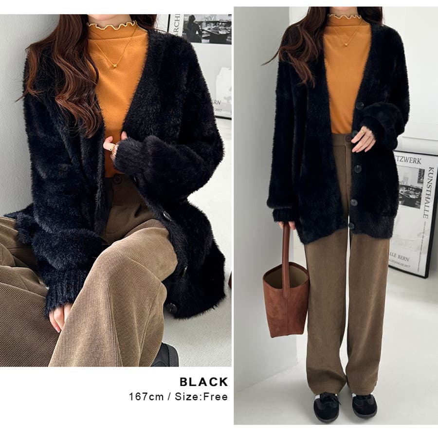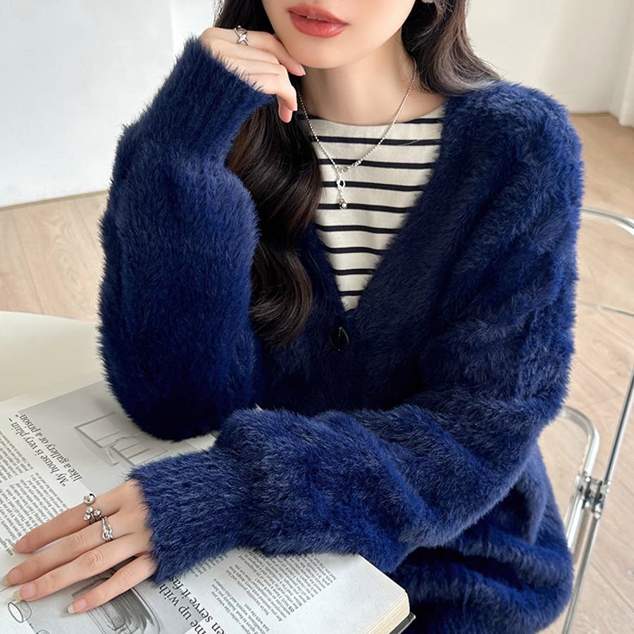 【ダークグレー】シャギーニットカーディガン カーディガン ふんわりニット