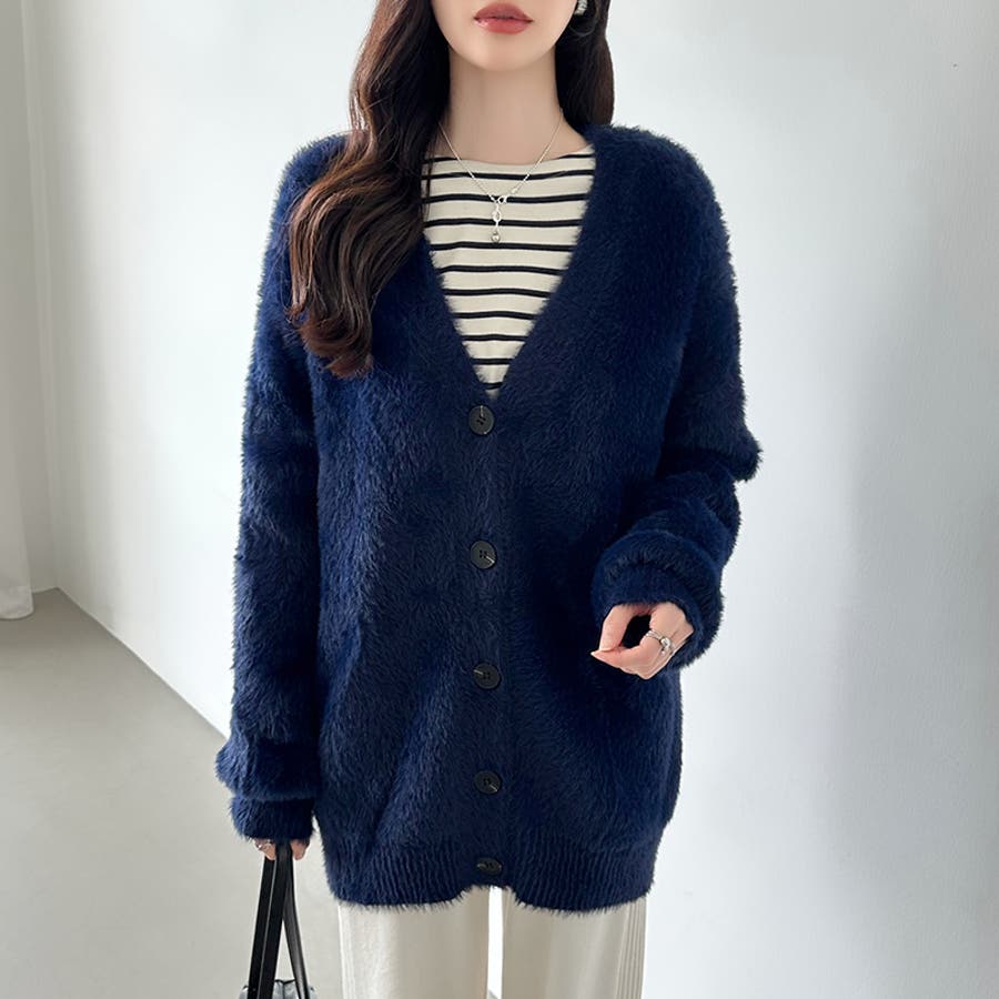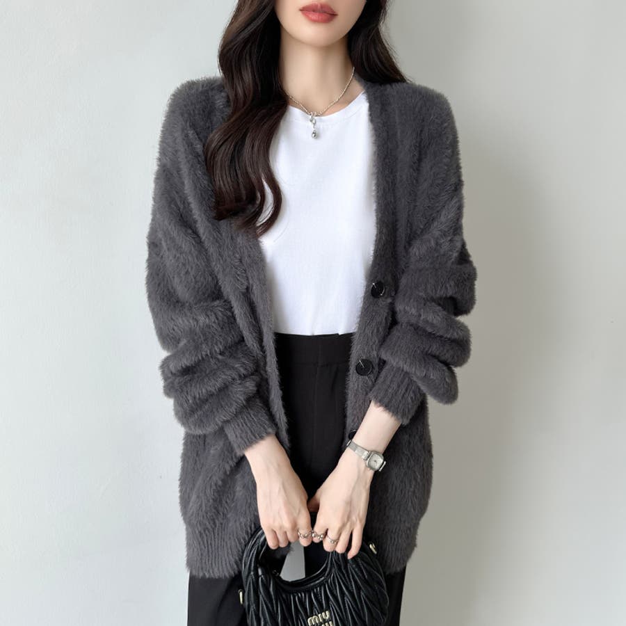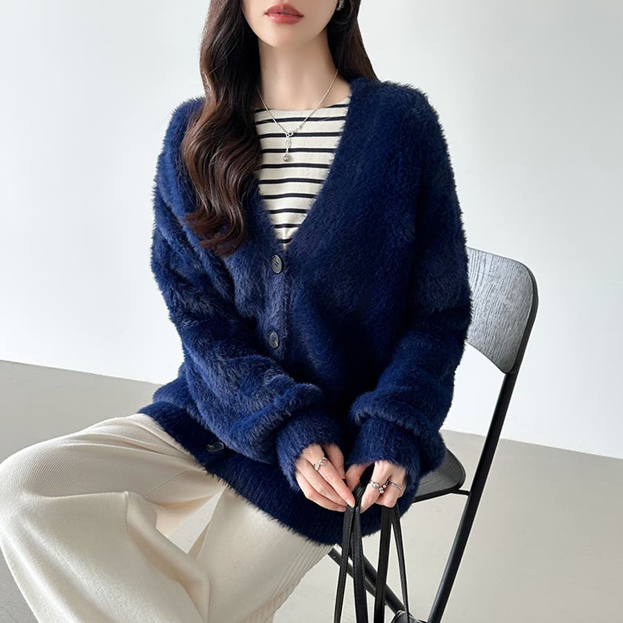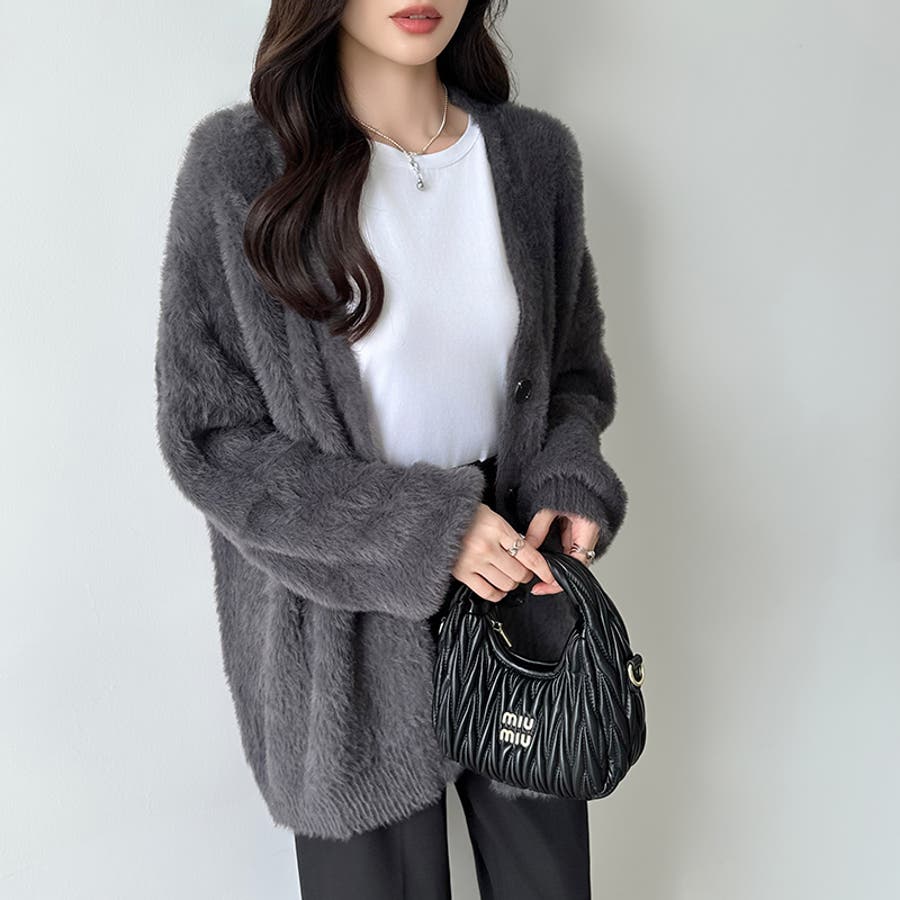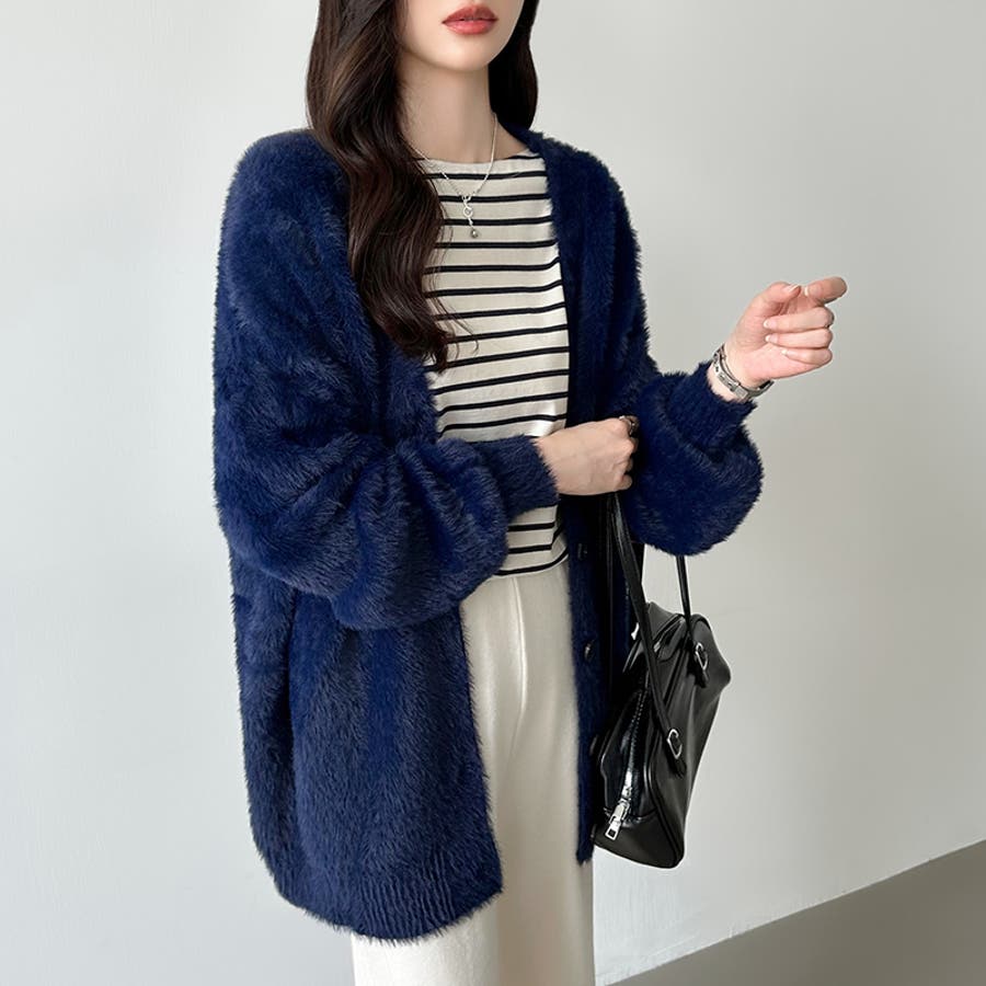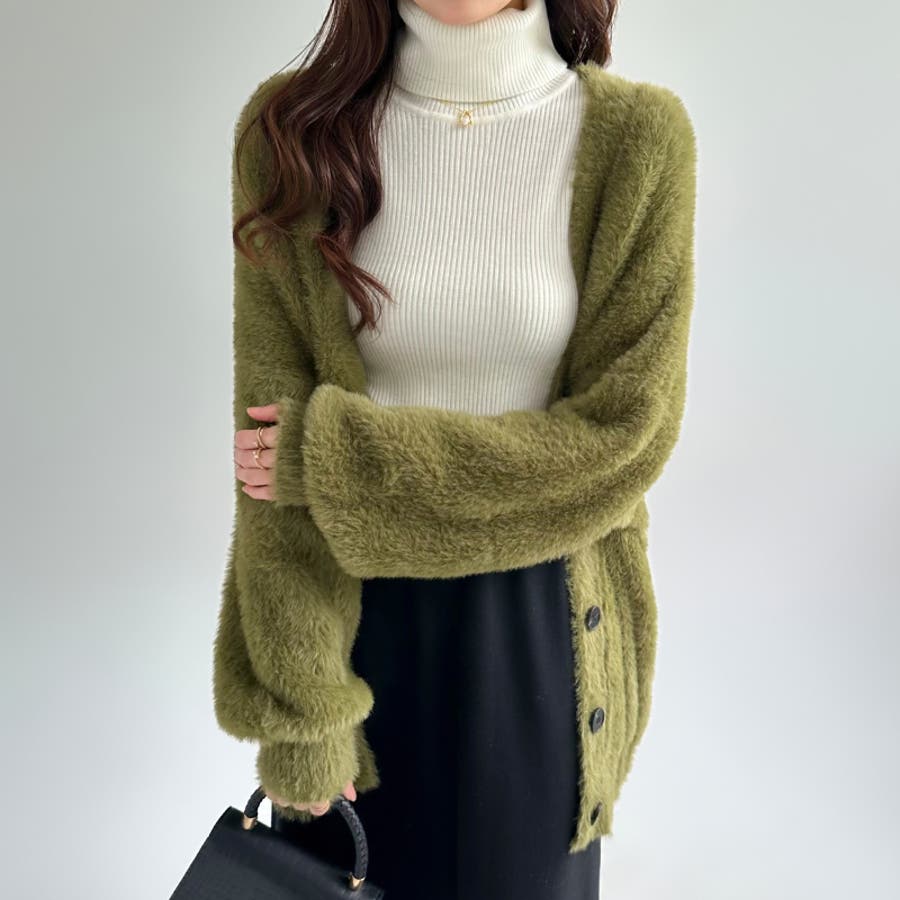 【ダークグレー】シャギーニットカーディガン カーディガン ふんわりニット