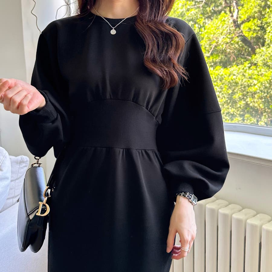 ハイウエストワンピース バルーンスリーブ ウエストマークワンピース