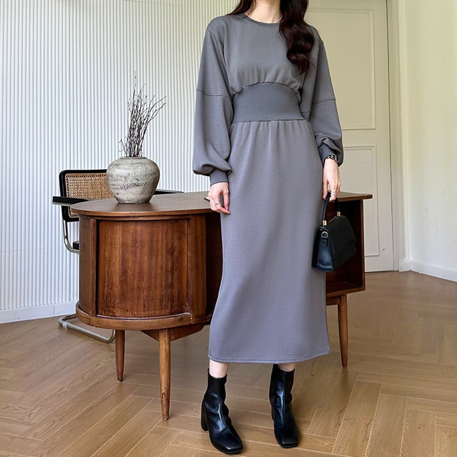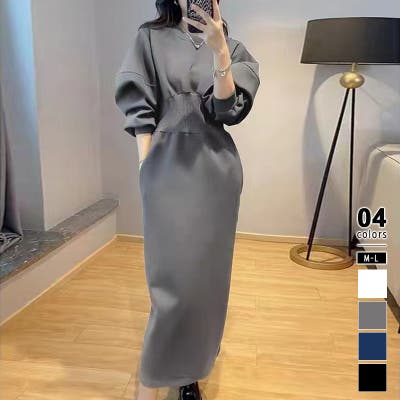 ワンピース レディース ロングワンピース ハイウエストワンピース スリット バッグスリット ボンディング ドルマン ドルマンスリーブ 長袖 ロング ロング丈 マキシ マキシ丈 ゆったり 大きめ 体型カバー お腹カバー 隠し 変形 袖 袖あり ぽわん ぽわん袖 バルーン袖 バルーンスリーブ ボリューム ボリューム袖 ボリュームスリーブ ハイウエスト シンプル 無地 ウエスト ウエスト絞り ウエストマーク らくちん 楽ちん 切り替え ワンピ ラウンドネック クルーネック かぶるだけ 細見え 着痩せ ポリエステル100% ポリエステル 1枚で決まる お出かけ おでかけ 旅行 プチプラ オフィス オフィスカジュアル オフィスカジュアル秋冬 フェミニン カジュアル モード モード系 クラシカル エレガント きれいめ キレイめ 上品 大人 かわいい 可愛い 大人可愛い オトナ女子 おしゃれ オシャレ 女性 女子 ママ ママコーデ 母 フリーサイズ 服 ファッション トレンド ヒット おすすめ 人気 ワンピース秋冬 ホワイト 白 グレー 灰色 ダークブルー 青 ブラック黒 新作 2023 2023aw 秋冬 秋 冬 秋服 冬服 韓国 韓国ファッション 10代 20代 30代 40代 50代 cocomomo ココモモ