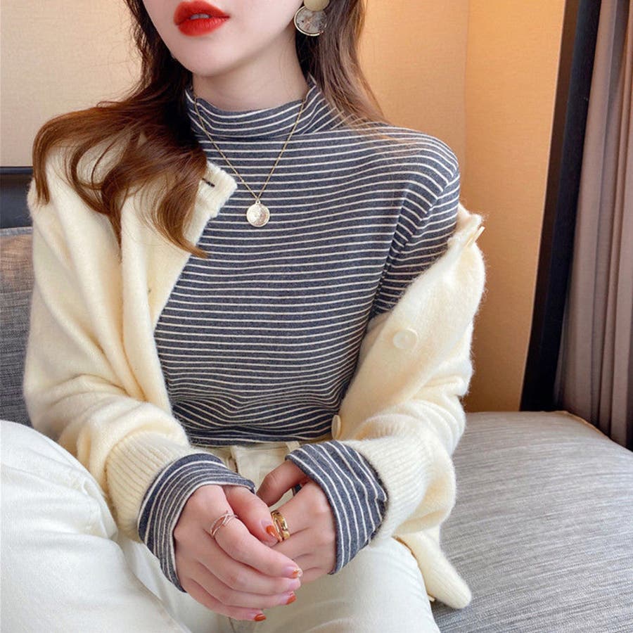 ボーダー ロンt 長袖 カットソー レディース ハイネック トップス プチハイネック 長袖tシャツ タートル インナー インナーカットソー ボーダーカットソー 長袖カットソー ボーダー柄 柄 tops 袖 長め 長い 袖長め ロングスリーブ プルオーバー ロングtシャツ ロンt ろんt ロンティ ロンティー ロング tシャツ フィット 立ち襟 襟 とっくり シンプル 配色バイカラー 綿 コットン ポリエステル 着回し 重ね着 レイヤード ストレッチ 伸縮性 やわらか 柔らかい やわらかい 洗える ウォッシャブル 首 首元 シワ隠し 楽ちん らくちん オフィス オフィスカジュアル オフィスカジュアル秋冬 通勤 通学 韓国風 レディース韓国 定番 ベーシック フェミニン カジュアル ガーリー 上品 きれい め きれいめ キレイめ 大人 オトナ かわいい 可愛い 大人可愛い オトナ女子 おしゃれ オシャレ 女性 母 ママ ママコーデ プチプラ 高見え トレンド ヒット 商品 おすすめ 服 ファッション 1枚で決まる フリーサイズ ホワイト 白 ベージュ ライトブラウン グレー 灰色 レンガ赤 赤 ブラック 黒 カラー 秋色 新作 2023aw 2023AW 23年 2023 秋冬新作 秋冬 春 秋 冬 春服 秋服 冬服 韓国 韓国ファッション 10代 20代 30代 40代 50代 cocomomo ココモモ