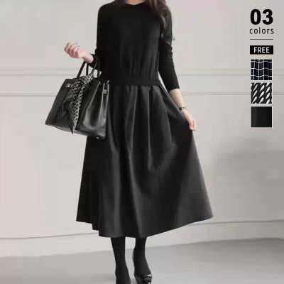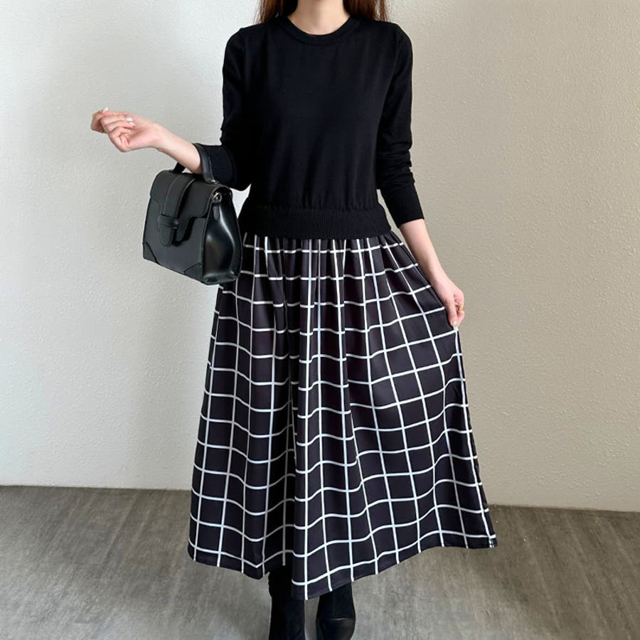 ワンピース 切り替えワンピース ニット ドッキング ニットワンピース レディース 異素材 ドッキングワンピース 異素材切り替えワンピース 異素材切り替えデザイン 異素材切り替えプルオーバー 切り替え 切り替えワンピース プルオーバー ワンピ ロングワンピース ロング ミモレ 長袖 aライン フレア フレアワンピース シンプル 無地 クルーネック 丸首 丸襟 ハイウエスト らくちん 楽ちん ゆったり 体型カバー お腹カバー ウエストマーク ふんわり スカート ボリューム 袖口 リブ 袖 リブ袖 袖あり かぶるだけ 細見え バイカラー アクリル ポリエステル チクチクしない やわらか 柔らか 柔らかい やわらかい 洗える 1枚で決まる シンプル 無地 配色 お出かけ おでかけ 旅行 プチプラ 高見え オフィス オフィスカジュアル オフィスカジュアル秋冬 エレガント 上品 クラシック フォーマル カジュアル きれい きれいめ キレイめ 大人 かわいい 可愛い 大人可愛い 大人可愛いワンピース オトナ女子 おしゃれ オシャレ 女性 女子 ママ ママコーデ 母 フリーサイズ ブラック 黒 黒ワンピース チェック柄 チェック チェック柄スカート チェックワンピース ワンピース秋冬新作 2023 2023aw 春秋 秋冬 春 秋 冬 春服 秋服 冬服 韓国 韓国ファッション 10代 20代 30代 40代 50代 cocomomo ココモモ
