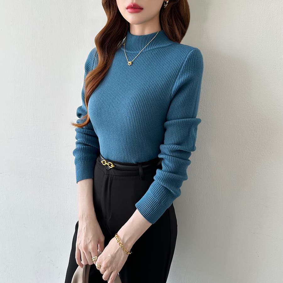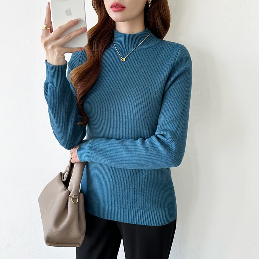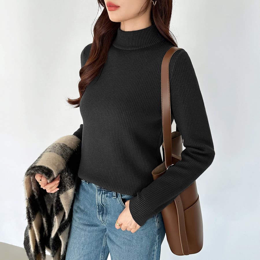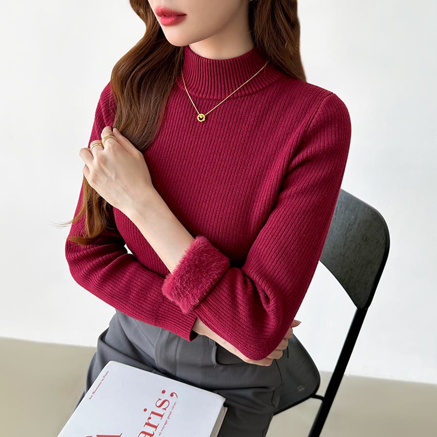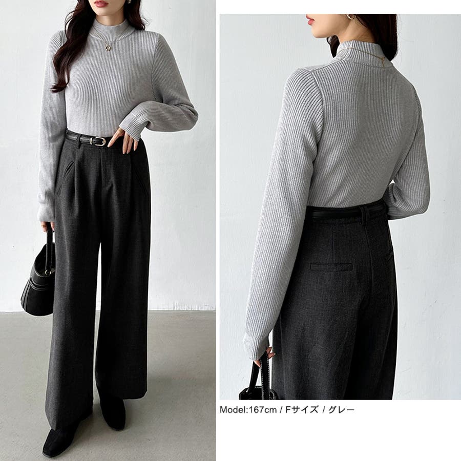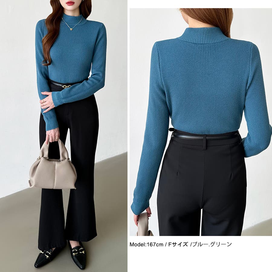 裏起毛ふわもちニット ハイネックリブニット 裏起毛ニット